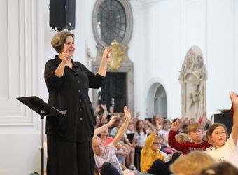 Mit rund 1300 Kommunionkindern und ihren Begleitern hat Weihbischof Paul Reder am Montag, 8. Juli, einen Gottesdienst im Kiliansdom gefeiert. Diözesan-Hörgeschädigtenseelsorgerin Pastoralreferentin Claudia Walter übersetzte die Feier in Gebärdensprache.