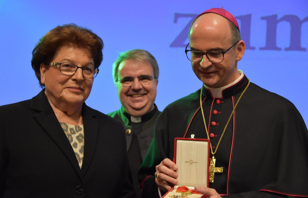Würzburg (POW) Mit dem päpstlichen Gregoriusorden ist Landtagspräsidentin a. D. Barbara Stamm am Sonntag, 3. November, in Würzburg ausgezeichnet worden. Bischof Dr. Franz Jung überreichte ihr die Auszeichnung gemeinsam mit Domkapitular Clemens Bieber, Vorsitzender des Diözesancaritasverbands Würzburg. Die Verleihung des Ordens fand im Rahmen eines Empfangs aus Anlass von Stamms 75. Geburtstag im Würzburger Vogel-Convention-Center statt.