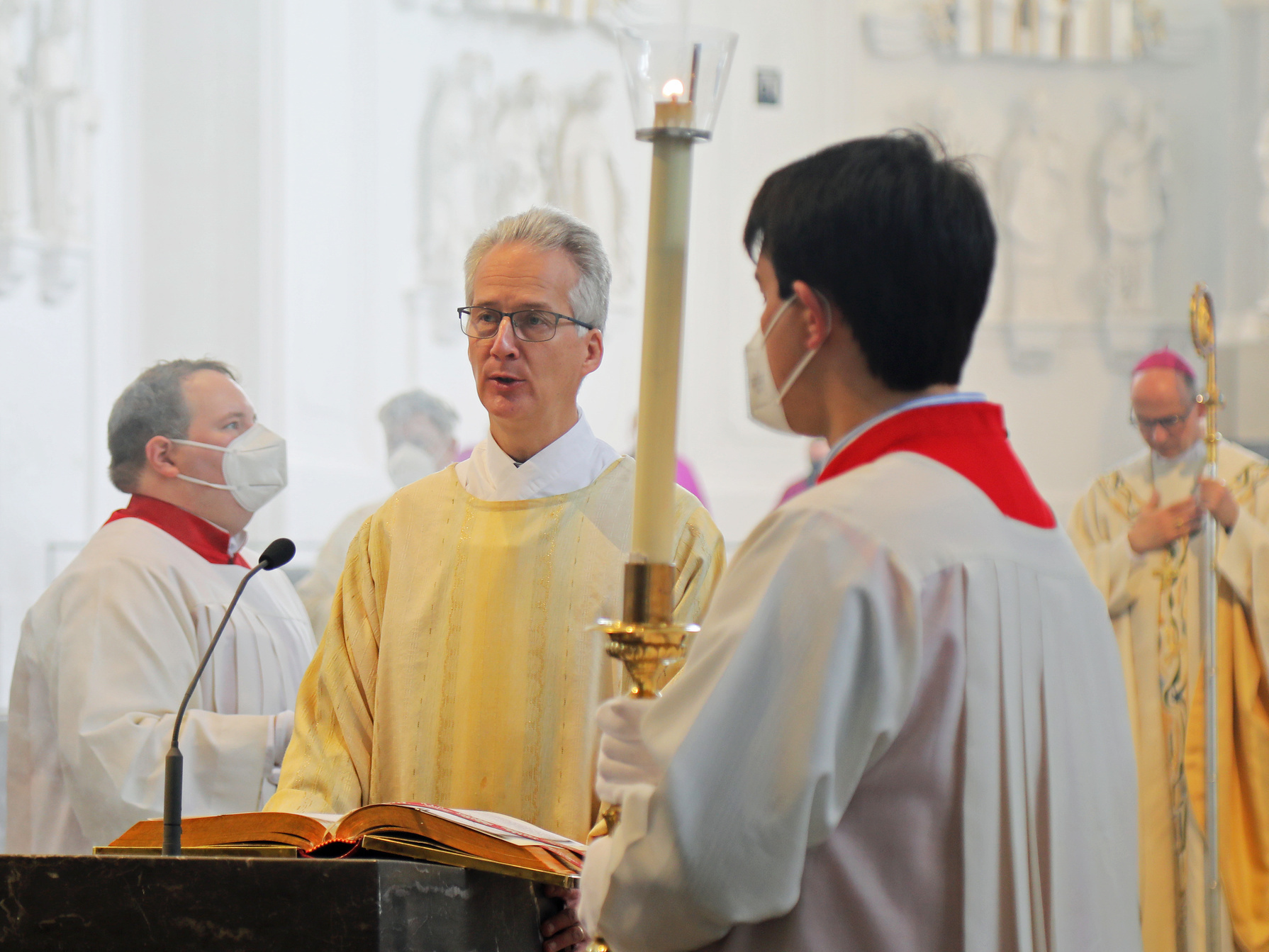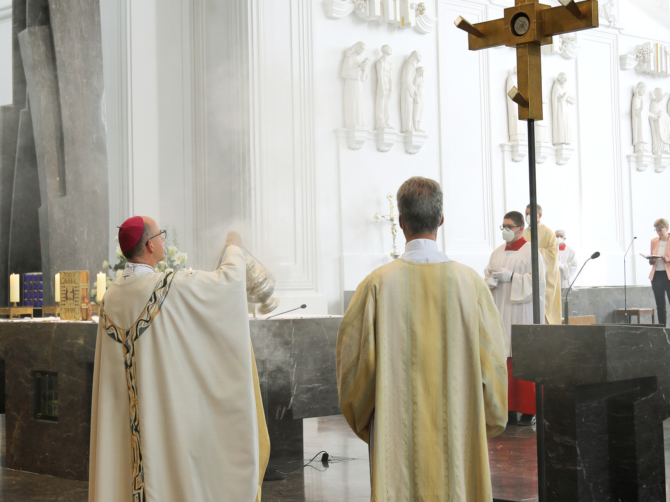 Im Evangelium verheiße Jesus den Jüngern den Geist der Wahrheit, der sie zu Zeugen macht, fuhr Bischof Jung fort. „Auch dann, wenn man sie verfolgt um ihres Glaubens willen, wenn man sie ausschließt aus der Gemeinde, wenn man sie um Jesu Christi willen ausgrenzt.“ Es bedeute, trotzdem an die Kraft der Auferstehung zu glauben. Es bedeute, Andere nicht zu bekämpfen, sondern zu versuchen, sie im Guten zu gewinnen und zu überzeugen, und für dieses Gute auch mit dem eigenen Leben einzustehen, so wie Jesus es getan habe.