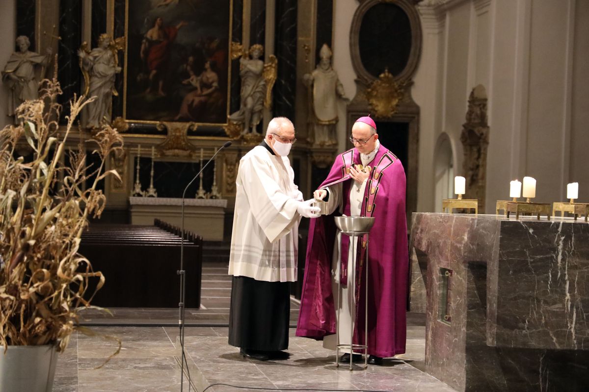 Bischof Dr. Franz Jung leitete den Aussendungsgottesdienst im Würzburger Kiliansdom am Vorabend der bundesweiten Eröffnung der Adveniat-Weihnachtsaktion 2020.