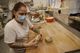 Münsterschwarzach (POW) Mit beiden Händen greift Sabrina Büchs in den Teigkneter und hebt einen großen Batzen schweren, glänzenden Stollenteig heraus. Routiniert unterteilt sie ihn in gleich große Stücke – jedes rund 530 Gramm schwer. Der goldgelbe Teig ist gespickt mit Rosinen und Nüssen, Zitronat und Orangeat. Der feine Duft dringt auch durch die Schutzmasken, die in der kleinen Backstube Pflicht sind. „Seid Ihr Naschkatzen?“, fragt Bäckermeister Leo Stöckinger. Mit einem Küchenspatel trennt er drei Versucherle ab – zwei für die Gäste, eines für ihn selbst. Weicher Teig, Früchte, Nüsse und ein Hauch von Rum. Rund 70 Kloster-Christstollen werden an diesem Morgen nach traditionellem Rezept in der Klosterbäckerei der Abtei Münsterschwarzach gebacken.