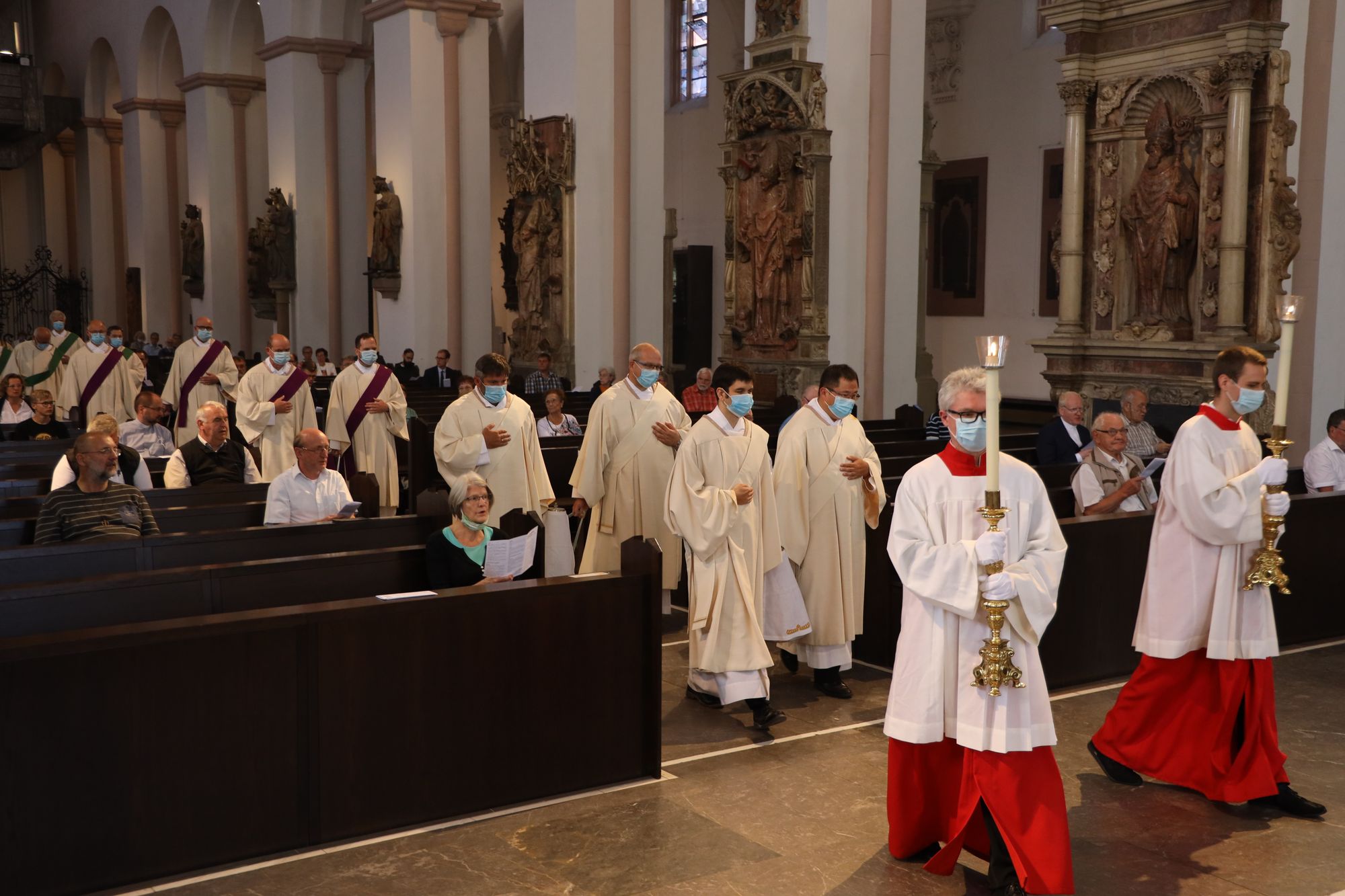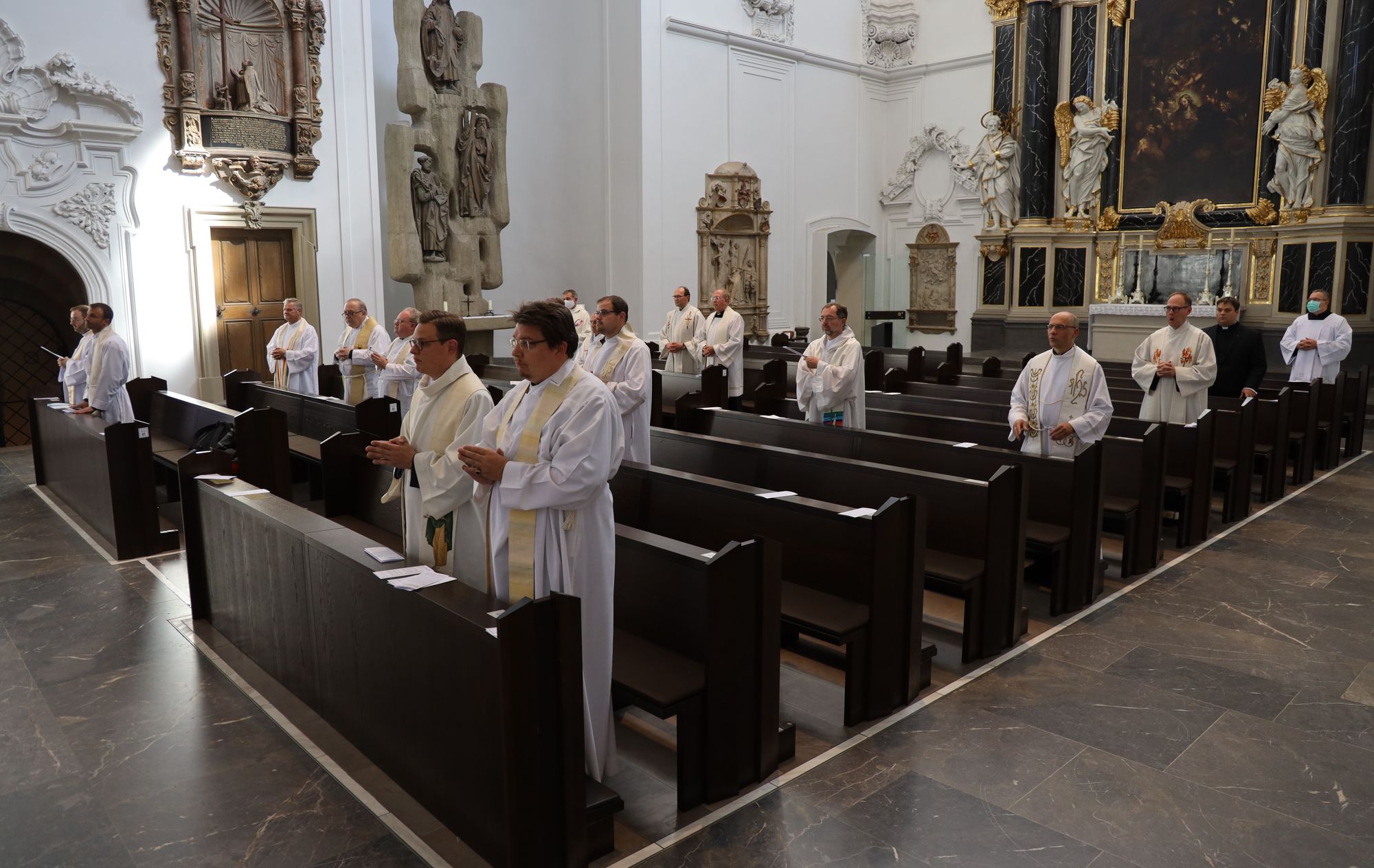 In seiner Predigt dankte Bischof Jung den Mitbrüdern für den „treuen Einsatz in diesen so fordernden Tagen“ der Corona-Pandemie. „Ich bin überrascht und froh über so viele innovative Aktionen und Initiativen, um den Kontakt zu den Gläubigen nicht abreißen zu lassen und unkonventionell Hilfe zu leisten.“ Er sei dankbar auch für neue Formate wie Streaming-Gottesdienste, Videoclips, Impulse und Hausgottesdienste. Zugleich appellierte er an die Priester und Diakone, einander darauf zu achten, wenn die innere Spannkraft erlahme. „Ermutigen wir uns gegenseitig zum Dienst.“