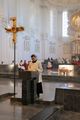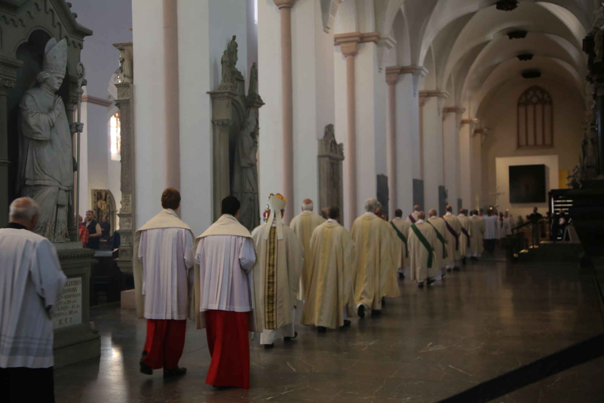 Dort, wo Christus als geistliche Mitte verlorengehe, träten die „eitlen Freuden“ an seine Stelle. „Man schlägt die Zeit tot, vergisst seine Berufung, vernachlässigt seine Pflichten und gibt sich mit anderen Dingen ab.“ Der Verlust der Mitte werde zum Einfallstor der Traurigkeit, aus der wiederum sich der Überdruss entwickle. „Alles wird beschwerlich. Am Ende macht der Diener des Herrn nur noch Dienst nach Vorschrift. Wie die Väter weiß Franziskus nur ein probates Mittel, um dem Überdruss wirksam zu begegnen: Er nimmt seine Zuflucht beim Gebet. Er hält aus vor dem Herrn, ohne wegzulaufen.“ Tomas von Celano, der eine Lebensbeschreibung über den heiligen Franziskus verfasst hat, schreibt darin: „Daher trachtete der Heilige danach, stets im Jubel des Herzens zu verharren, die Salbung des Geistes und das Öl der Freude zu bewahren.“ Genau darum gehe es in der Chrisammesse: „Wir erneuern unsere Salbung, die wir am Tag unserer Weihe empfangen haben. Und wir tragen hoffentlich den Jubel im Herzen wieder mit hinaus in unsere Pfarreien und an die Orte und zu den Menschen, zu denen wir uns gesandt wissen“, sagte Bischof Jung.