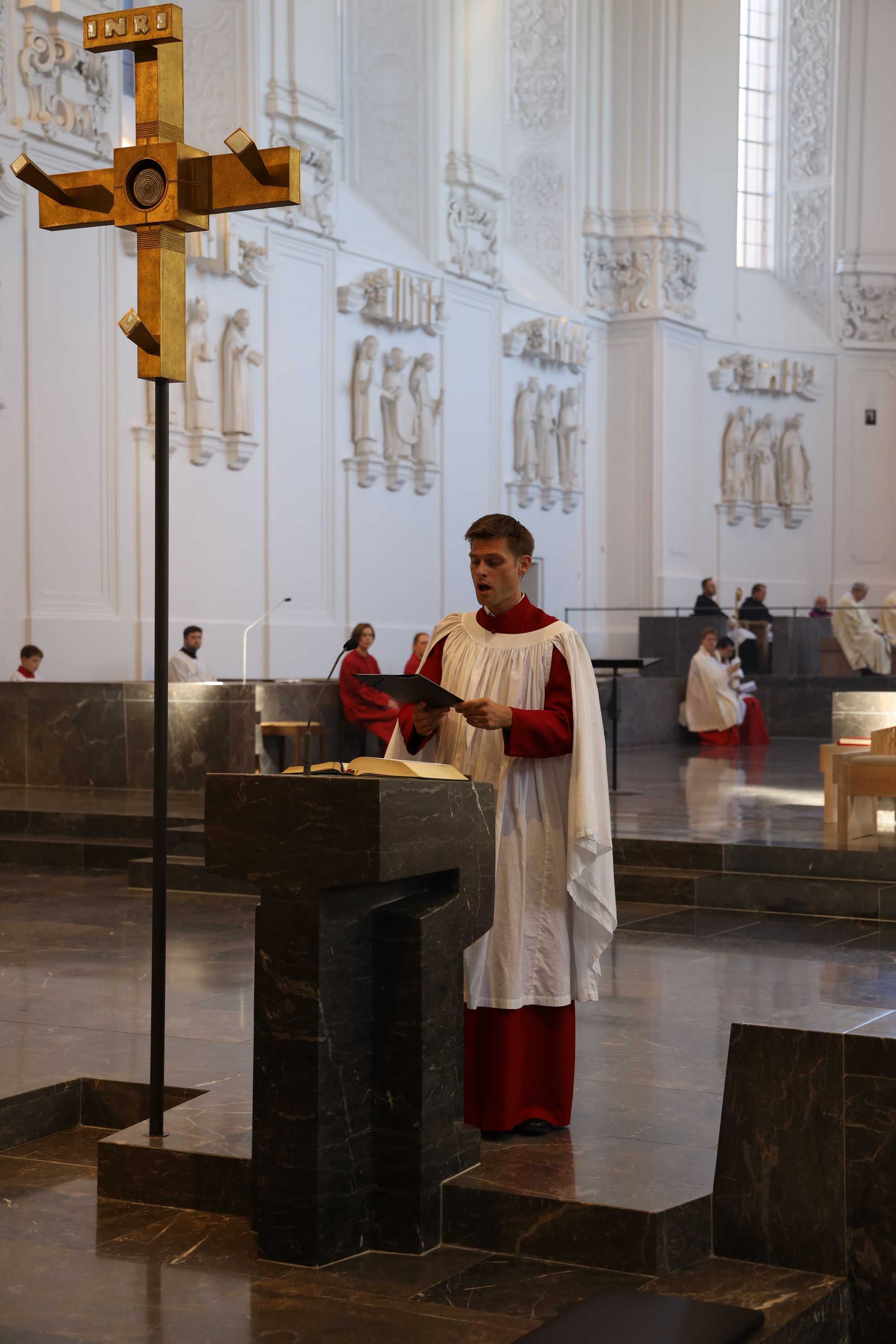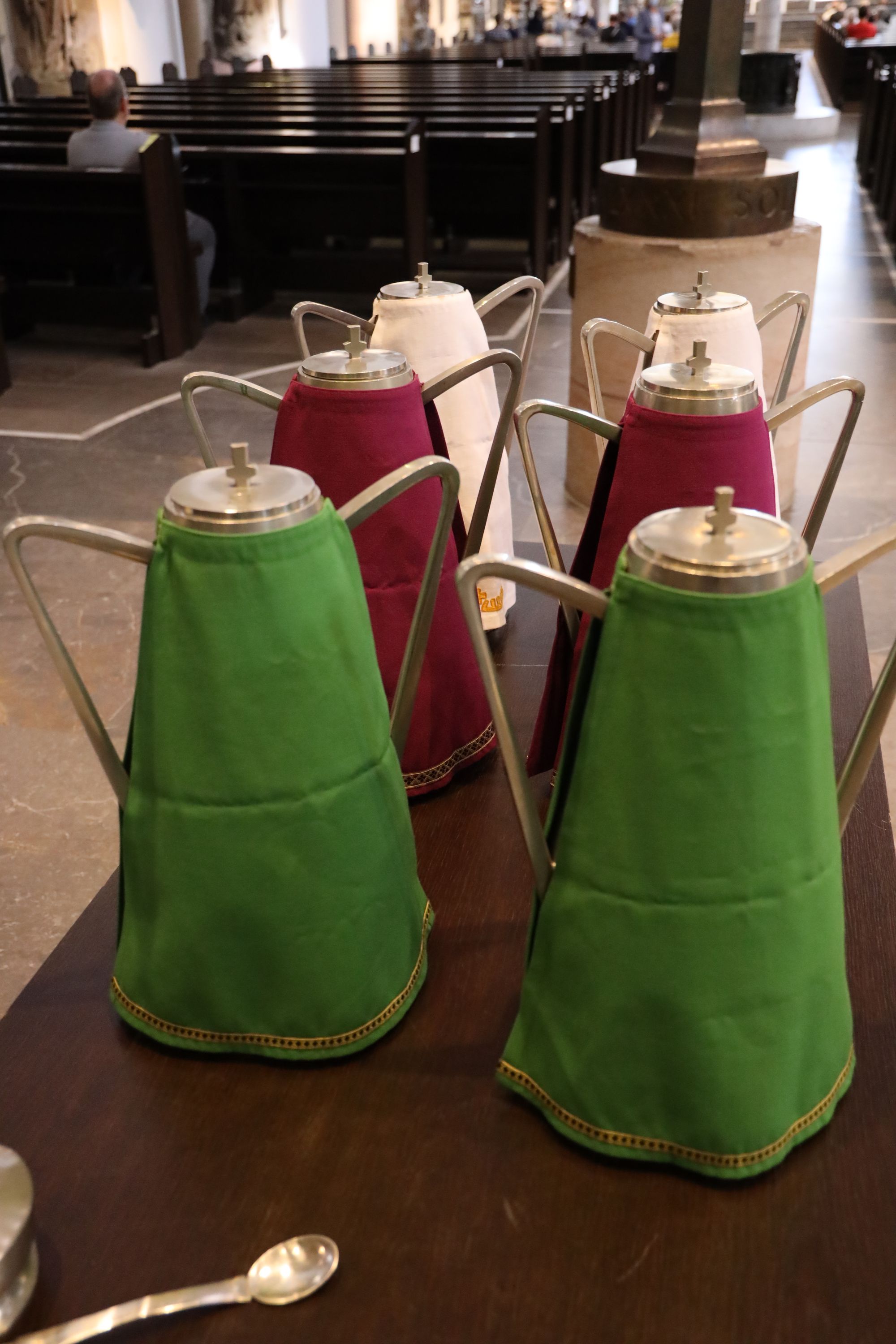 Die Frauenchoralschola „Vox anima“ sang unter der Leitung von Domkantor Alexander Rüth, Domorganist Professor Stefan Schmidt spielte die Orgel. Nach dem Gottesdienst erhielten Vertreter der 19 Dekanate und der Stadtpfarrei Schweinfurt die Öle, die in den folgenden Tagen in die Gemeinden der Diözese gebracht werden.