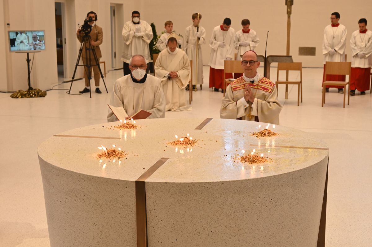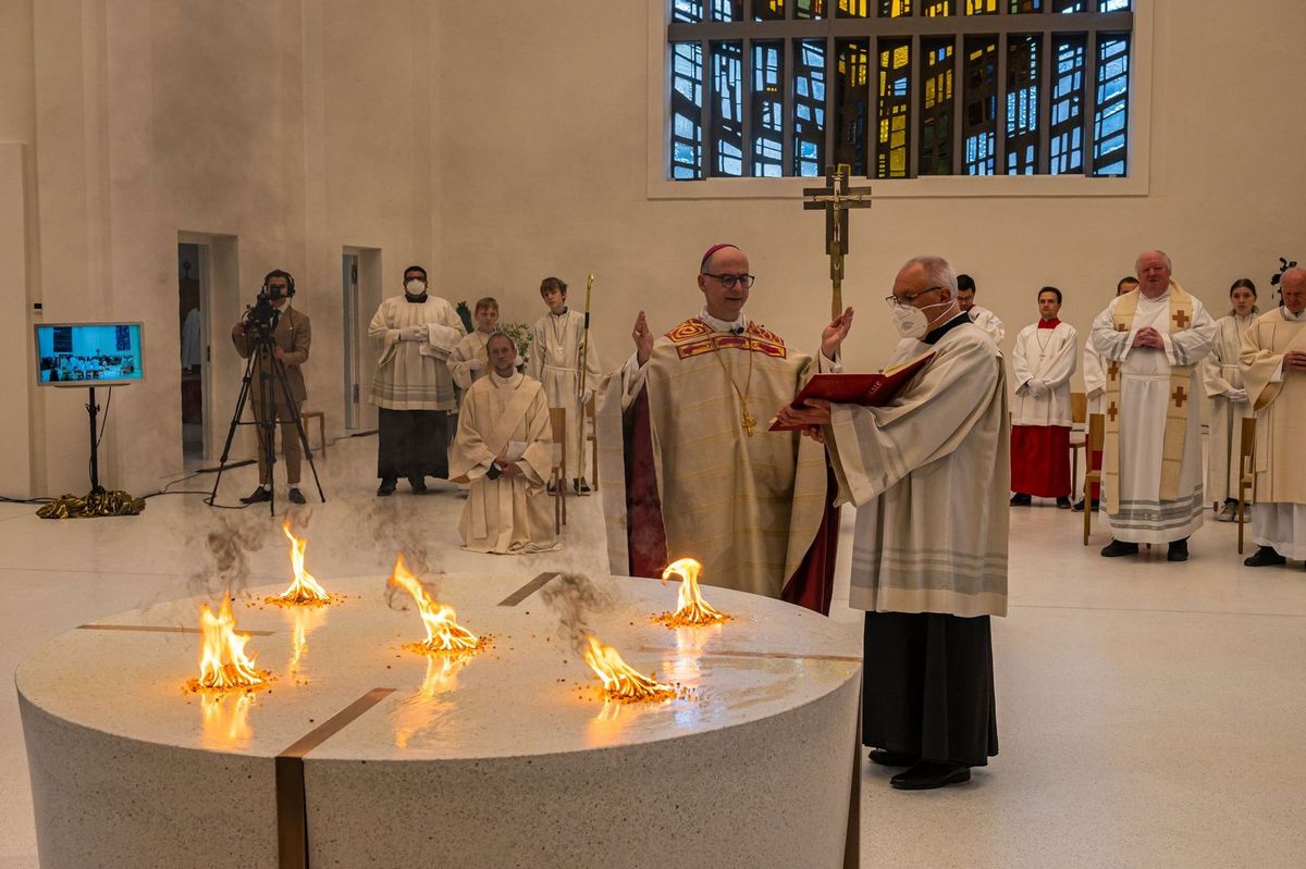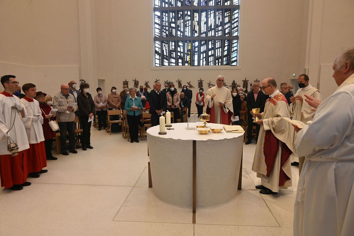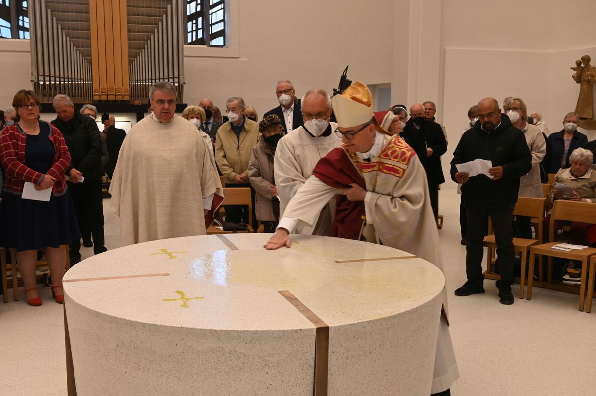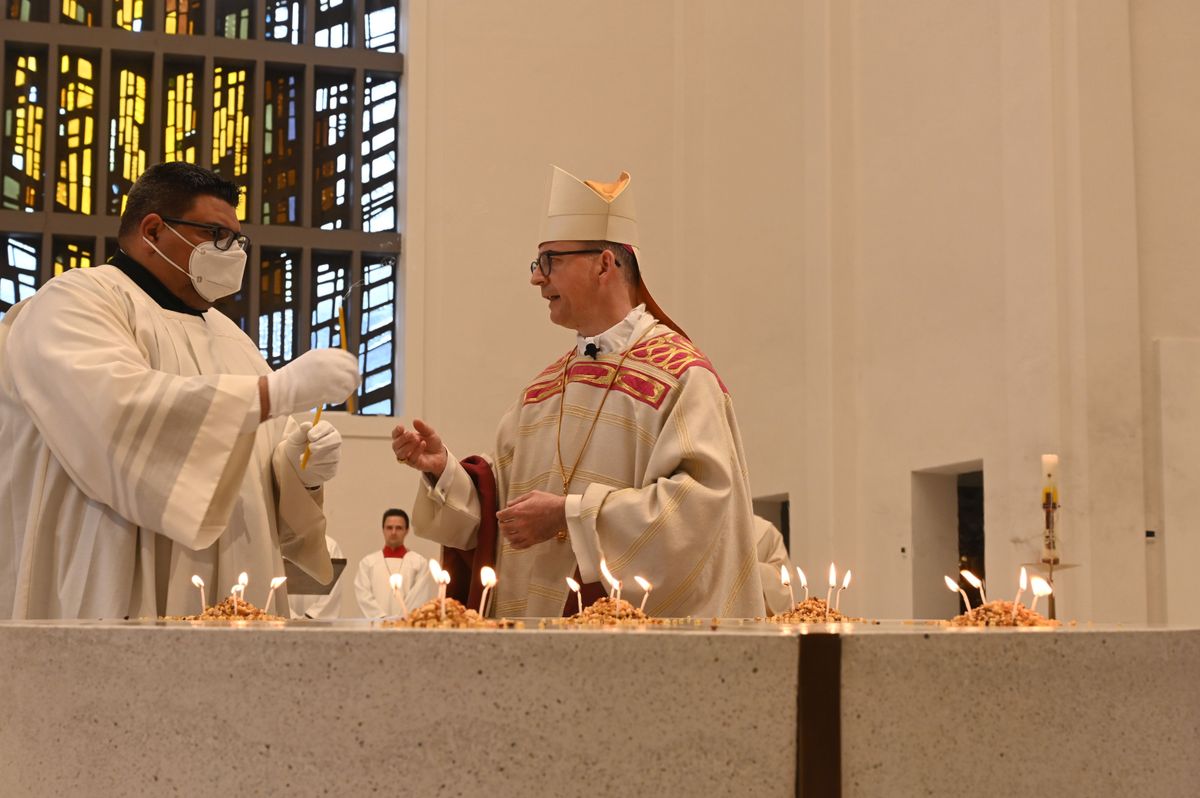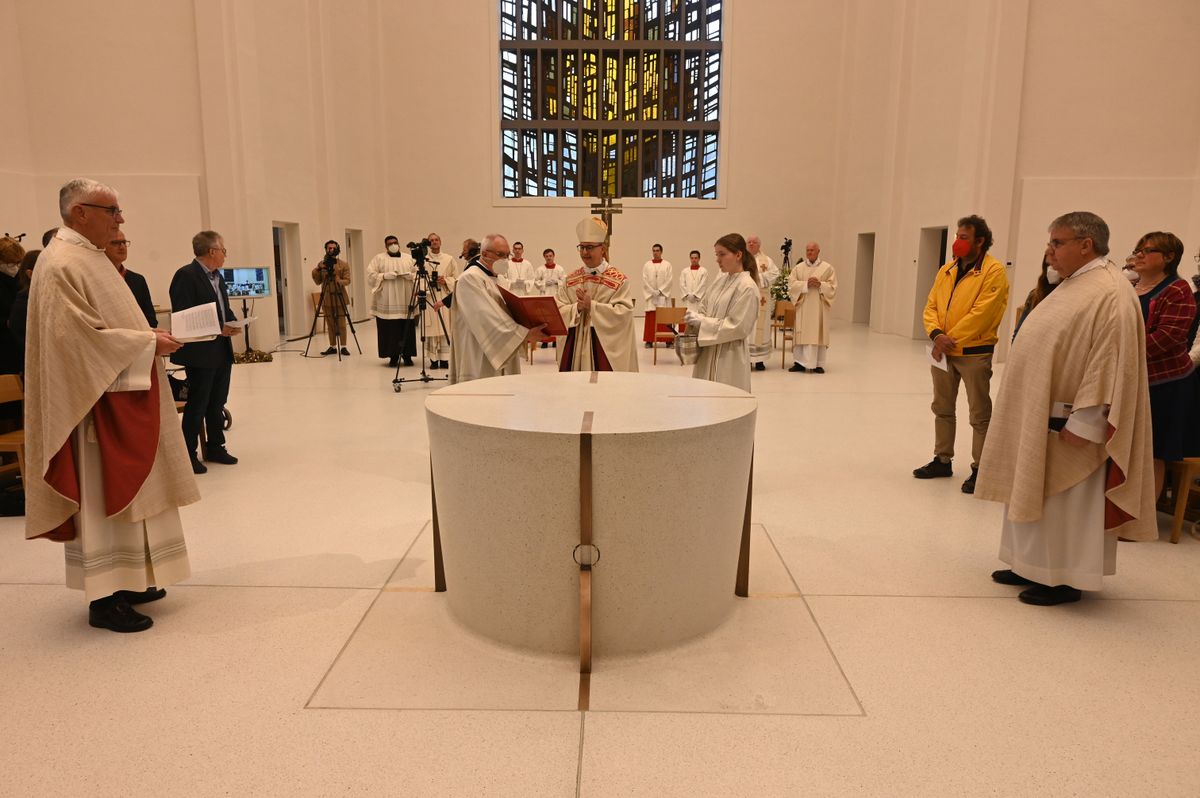 Am Weißen Sonntag, 24. April, weihte Bischof Dr. Franz Jung den Altar in der zum "casa Vielfalt" umgebauten Kirche von Sankt Anton in Schweinfurt.