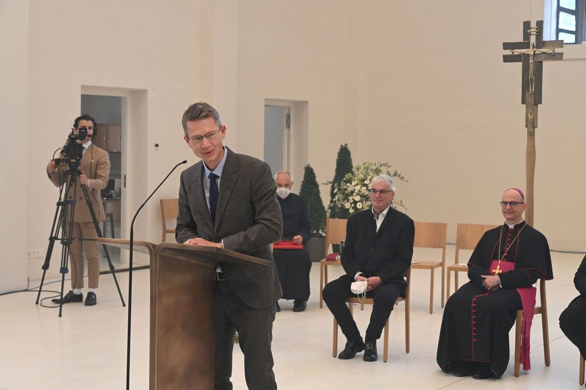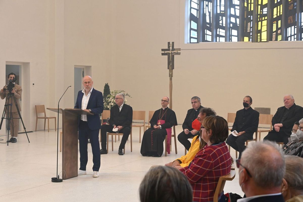 Architekt Christian Brückner verwies in seinem Grußwort auf die Sehnsucht des Menschen nach ansprechenden, nach sakralen Räumen, um zu sich selbst und zu Gott kommen zu können. Brückner dankte allen, die zum Gelingen des neuen Kirchenraumes und des gesamten Zentrums „casa Vielfalt“ ihren Beitrag geleistet haben. Namentlich erwähnte der leitende Architekt Kirchenpfleger Ottmar Prell. „Ohne dieses ehrenamtliche Engagement wäre es nicht gegangen.“