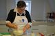 Während die Äpfel zusammen mit dem Apfelsaft und den Rosinen in einem Topf bei mittlerer Hitze zu einer goldenen Masse werden, mengt Graus Quark, Mascarpone, Zimt und Zucker kraftvoll in einer Rührschüssel zusammen. Dafür benutzt sie einen Schneebesen. Damit könne weniger passieren als mit einem Handrührgerät, was besonders bei kleinen Kindern wichtig sei. Zwischendrin wird immer wieder abgeschmeckt. „Das macht Spaß und garantiert ein leckeres Ergebnis“, sagt Graus.