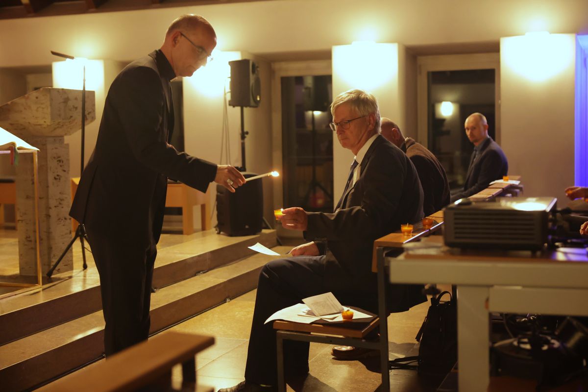 Zum Abschluss des Tages referierte Professor Dr. Martin Stuflesser, Inhaber des Würzburger Lehrstuhls für Liturgiewissenschaft, aus Anlass von 50 Jahren Würzburger Synode und 60 Jahren Zweites Vatikanisches Konzil über „Treue in lebendigem Wandel ‒ ein Blick zurück nach vorn“ (eigener Bericht folgt). Bischof Jung gestaltete im Anschluss die Abendandacht in der Kilianskapelle des Exerzitienhauses.