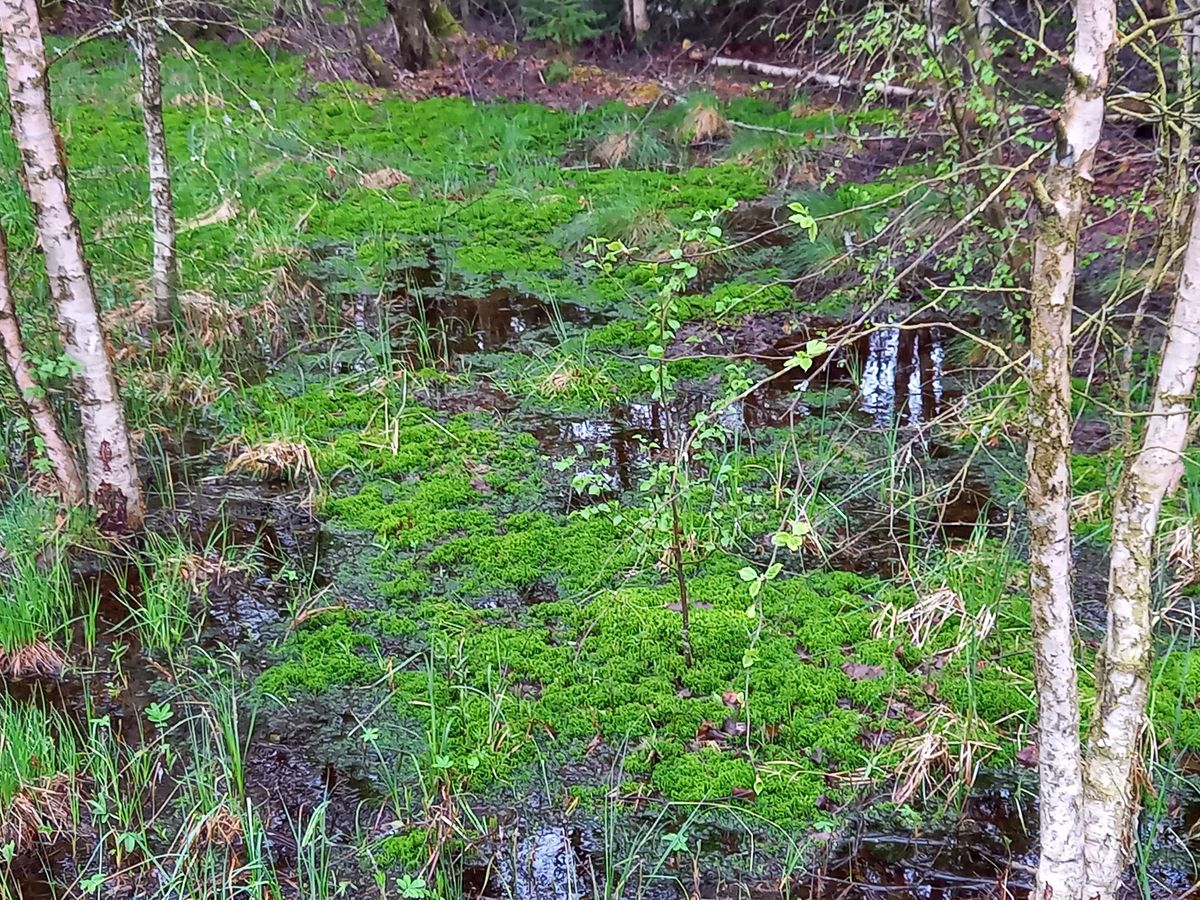 Immer wieder waren bei dem Rundweg die beiden Laubsänger Zilpzalp und Fitis zu hören. Zwar leben in dem Moor auch Birkhühner, berichtete Faber. Aber die scheuen Tiere waren an diesem Tag nicht zu sehen. Am Wegrand gab es Pflanzen wie Sumpfdotterblume oder Siebenstern zu bewundern. Andere Blumen, wie der insektenfressende Sonnentau, blühen erst später im Jahr. Ein typischer Baum ist die Moorbirke, während die Fichte dort eigentlich nicht hingehört. Derzeit gebe es eine Debatte, ob die Fichten aus dem Moor entfernt werden sollen, erklärte die Rangerin. Ziel des Naturschutzes sei es, das Gebiet in seinem ursprünglichen Zustand vor dem Eingreifen des Menschen zu erhalten.