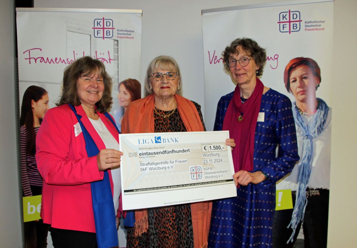 Würzburg (POW) Knapp 100 Frauen haben an der Delegiertenversammlung des Deutschen Katholischen Frauenbunds (KDFB) Diözesanverband Würzburg am Samstag, 23. November, im Exerzitienhaus Himmelspforten in Würzburg teilgenommen. Sie beschlossen Anträge zum Institutionellen Schutzkonzept, zur Optimierung von innerverbandlichen Strukturen sowie der Beauftragung von Frauen zur Taufspendung. Zudem wurde ein Spendenscheck in Höhe von 1500 Euro an die „Straffälligenhilfe für Frauen" des Sozialdiensts katholischer Frauen (SkF) in Würzburg überreicht. Das schreibt der KDFB in einer Pressemitteilung.
