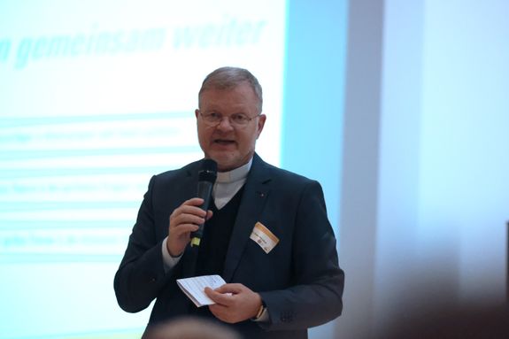 „Einen Prozess über zehn Jahre zielgerichtet zu führen und auch abzuschließen, ist schon eine besondere Sache. Das war schon ein Diözesanforum wert“, konstatierte Diözesanratsvorsitzender Dr. Michael Wolf. Persönlich hätte er sich zum einen eine stärkere Beteiligung und zum anderen einen intensiveren Rückblick erhofft, bei dem die Entstehungsgeschichte noch einmal in den Blick genommen hätte werden können. „Mit wenigen Ausnahmen sind die Menschen, die den Prozess im Jahr 2015 begonnen und ihn seit dieser Zeit begleitet haben, ja nicht mehr die, die ihn nun abgeschlossen haben.“ In Summe habe die Diözese erst einmal ein wichtiges Zwischenziel erreicht. Strukturelle Änderungen seien mit der Errichtung der Pastoralen Räume implementiert, aber auch Vision, Mission und Leitlinien sind erstellt und für alle nachlesbar. Jetzt gelte es, den bisher erarbeiteten Rahmen mit Leben zu füllen und vielleicht auch Anpassungen zu bedenken. „Waren wir bislang auf der strategischen Ebene unterwegs, stehen nun die operativen Maßnahmen an, und hier werden meiner Meinung nach die Diskussionen intensiv geführt werden müssen.“ Auch in der Kirche gelte: Nichts ist so beständig wie der Wandel.