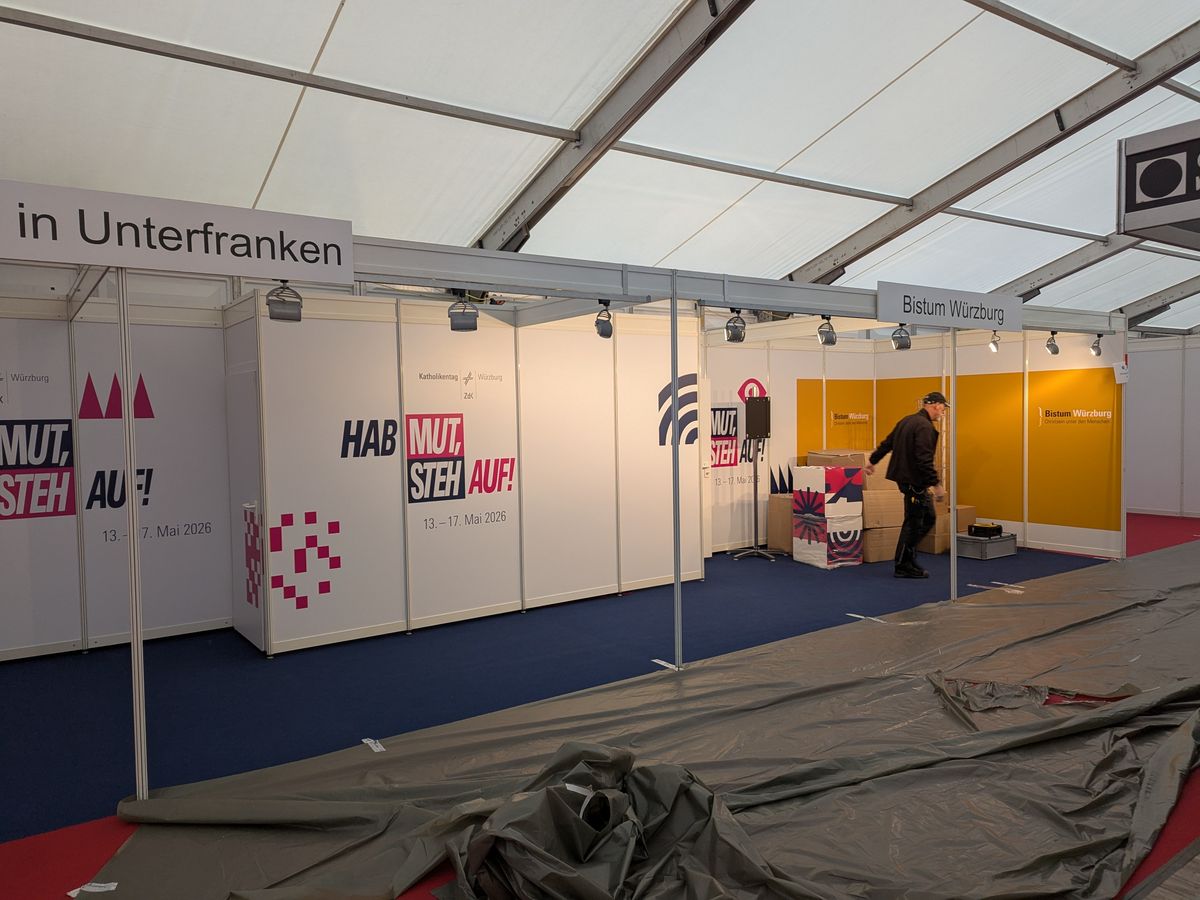 Das Motto des Katholikentags „Hab Mut, steh auf!“ dient als Leitwort für die Öffentlichkeitsarbeit von Diözese und Caritas bei der Messe. Diese findet vom 27. September bis 5. Oktober auf dem Würzburger Talavera-Gelände statt.