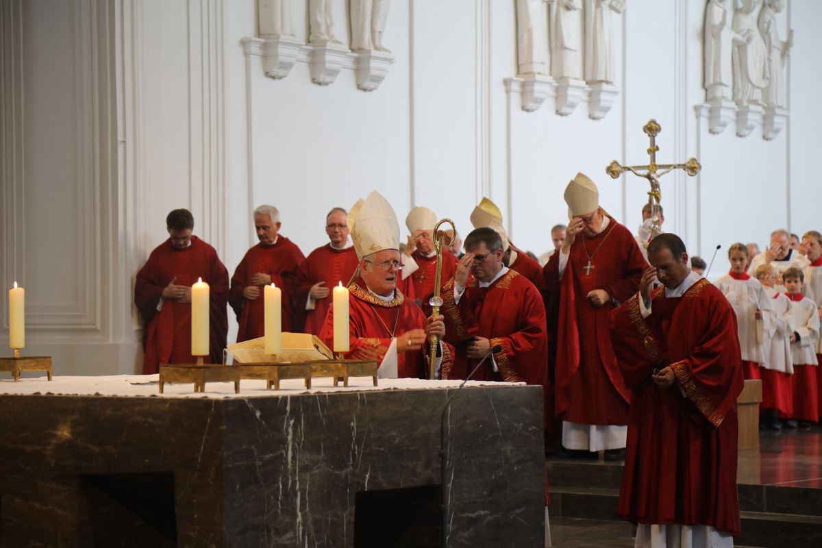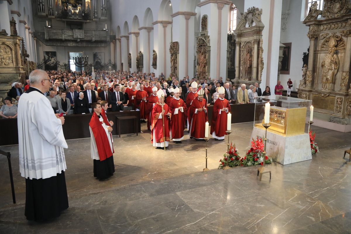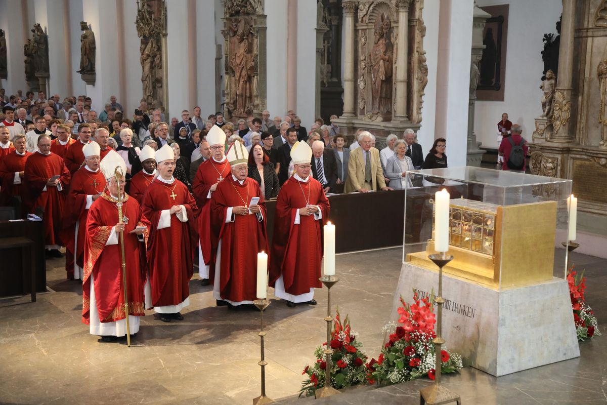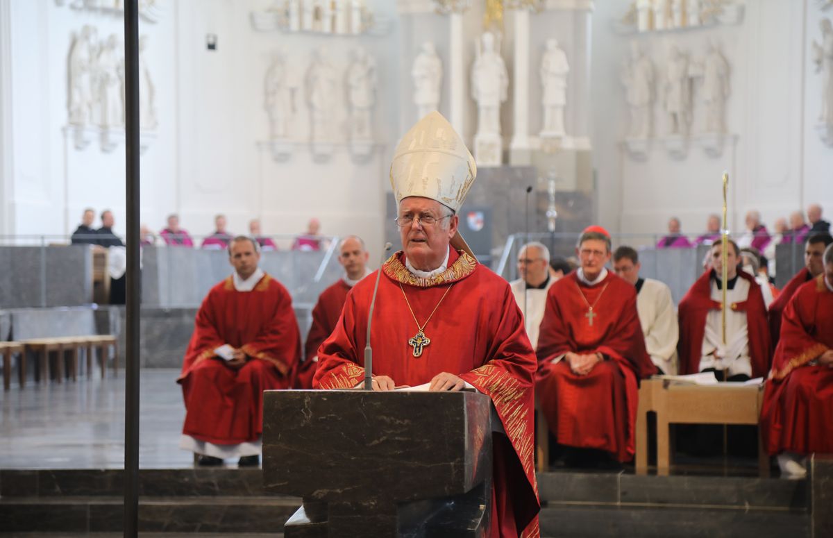 Er selbst habe in den vergangenen 50 Jahren erfahren, dass Christus der Herr ist, der jeden persönlich im Blick habe. „Hier in Würzburg habe ich durch die irischen Wandermönche Kilian, Kolonat und Totnan gelernt, dass ihr Aufbruch zur Missionierung des Festlands nicht geprägt war durch hellenistisch-römische Wissenschaft, sondern durch die Erfahrungen der frühen Wüstenmönche, die Gott in allem fanden.“ Ausdrücklich dankte Bischof Hofmann allen, die seinen Lebensweg als Priester und Bischof begleitet und gestützt haben – in Köln, Düsseldorf und Würzburg.