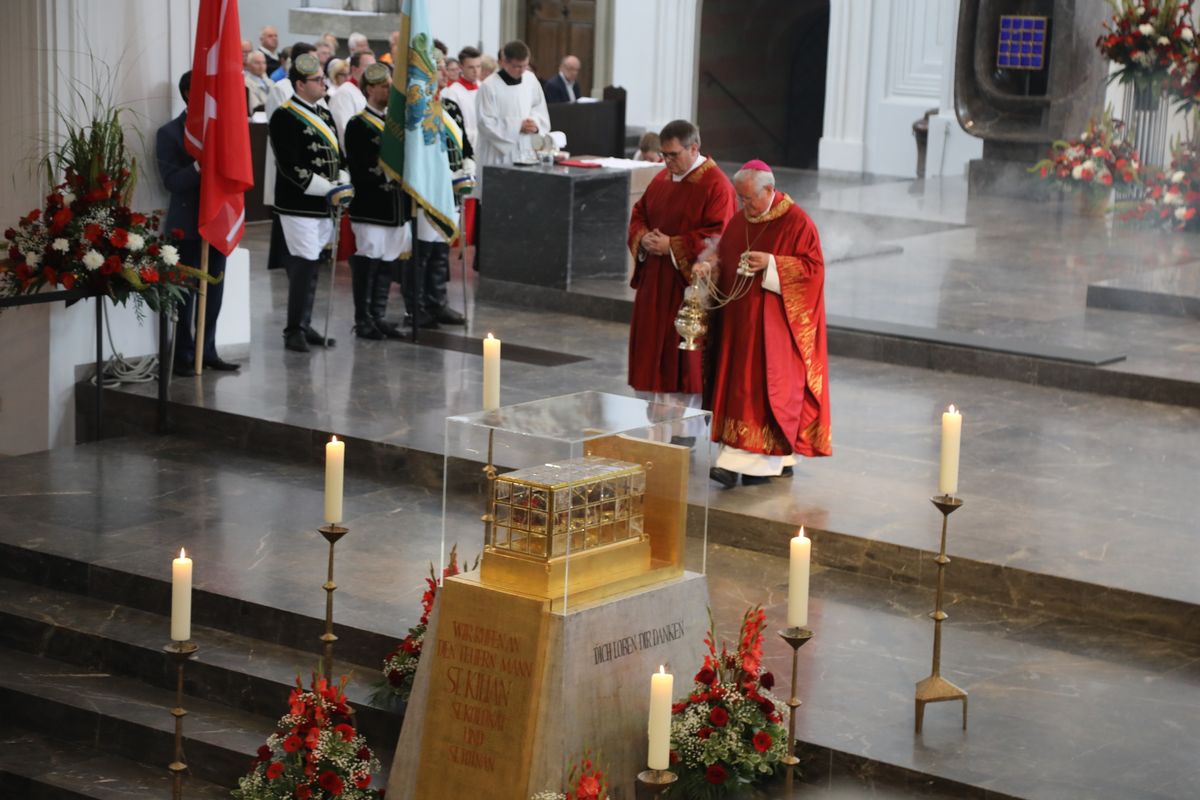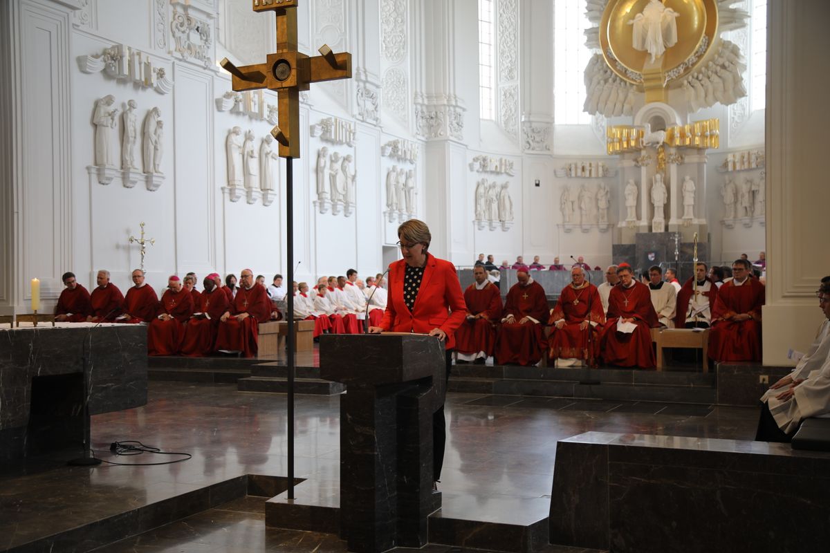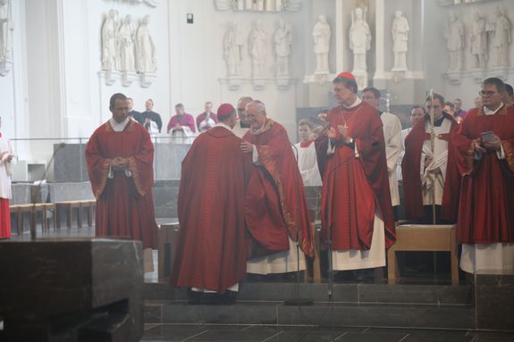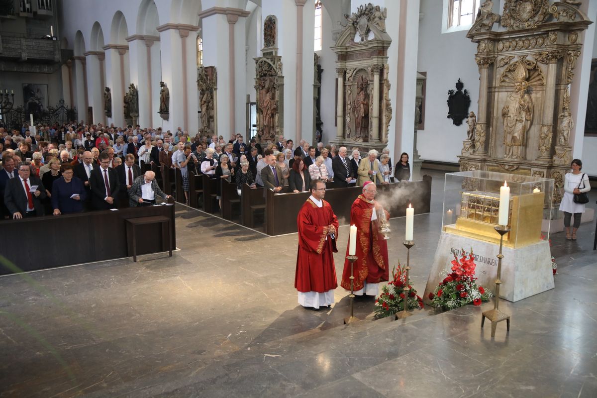 Er selbst habe in den vergangenen 50 Jahren erfahren, dass Christus der Herr ist, der jeden persönlich im Blick habe. „Hier in Würzburg habe ich durch die irischen Wandermönche Kilian, Kolonat und Totnan gelernt, dass ihr Aufbruch zur Missionierung des Festlands nicht geprägt war durch hellenistisch-römische Wissenschaft, sondern durch die Erfahrungen der frühen Wüstenmönche, die Gott in allem fanden.“ Ausdrücklich dankte Bischof Hofmann allen, die seinen Lebensweg als Priester und Bischof begleitet und gestützt haben – in Köln, Düsseldorf und Würzburg.