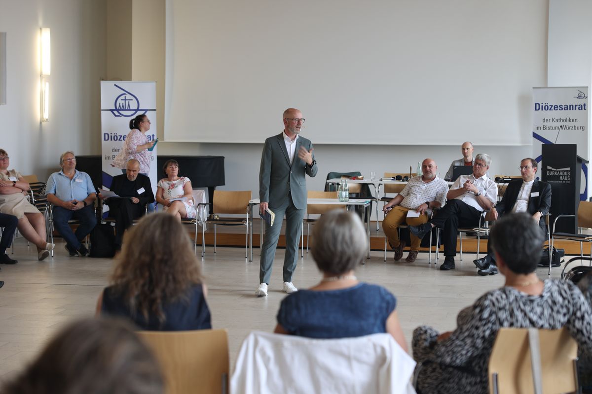 Am frühen Nachmittag beschäftigten sich die Diözesanratsdelegierten mit der Frage nach einer zunehmenden Spaltung der Gesellschaft. Diese ziehe sich durch viele Bereiche des Lebens, teilweise auch durch die eigene Familie, den Freundeskreis oder die Arbeit, stellte der stellvertretende Diözesanratsvorsitzende Ralf Sauer fest. Viele Menschen fühlten sich von den aktuellen Krisen und politischen Diskussionen überfordert und reagierten mit Wahlmüdigkeit, Protest oder der Wahl einer extremistischen Partei, sagte Sauer.