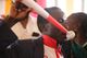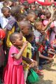 Bischof Jung lief darüber zum neu gebauten Gemeindehaus in Nkile. Rechts und links standen die Gemeindemitglieder, und sobald der Bischof über die Tücher geschritten war, warfen sie die Tücher weit nach vorne, damit der Tücherteppich weitergeführt werden konnte. Alles begleitet von Trommeln, Trillerpfeifen und Gesängen.