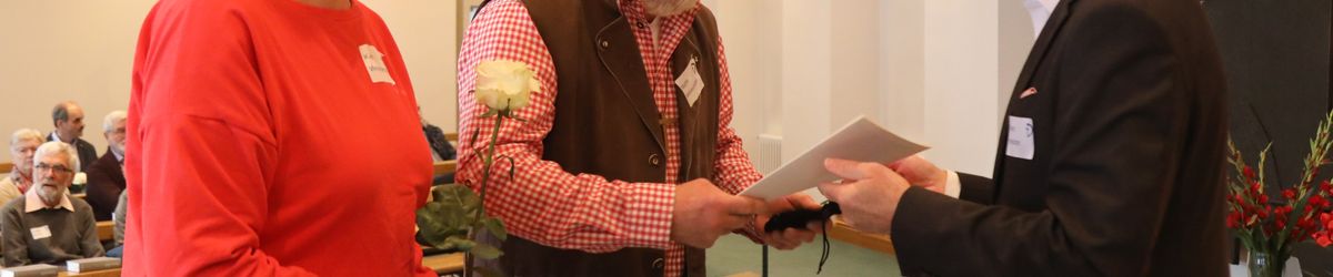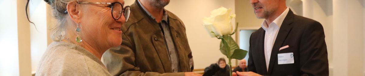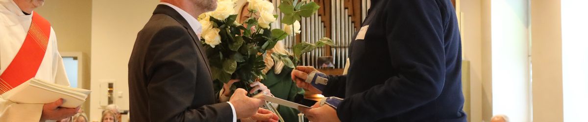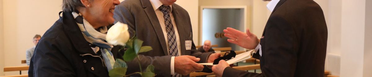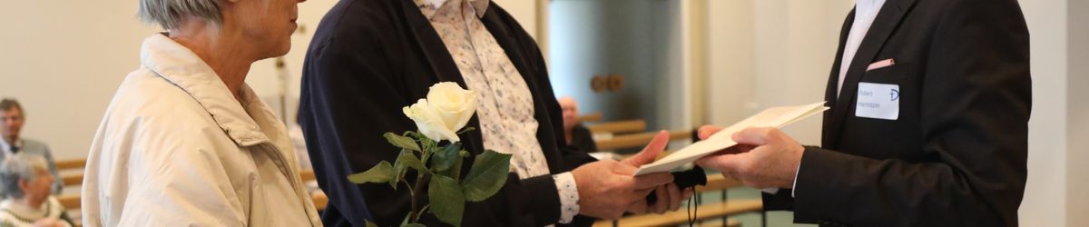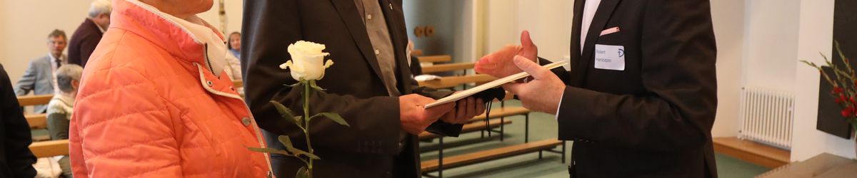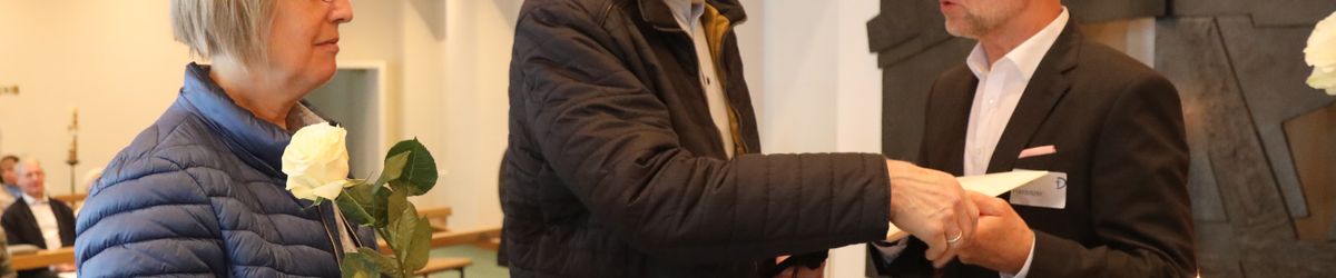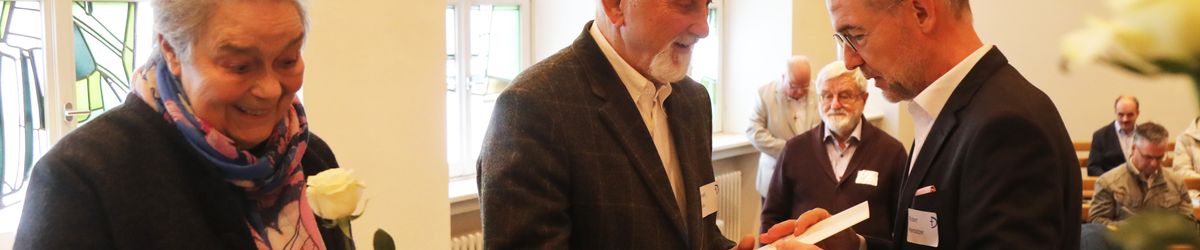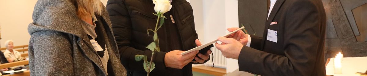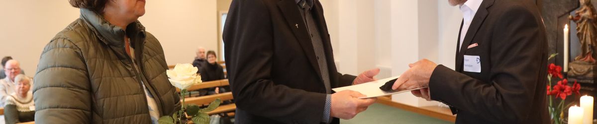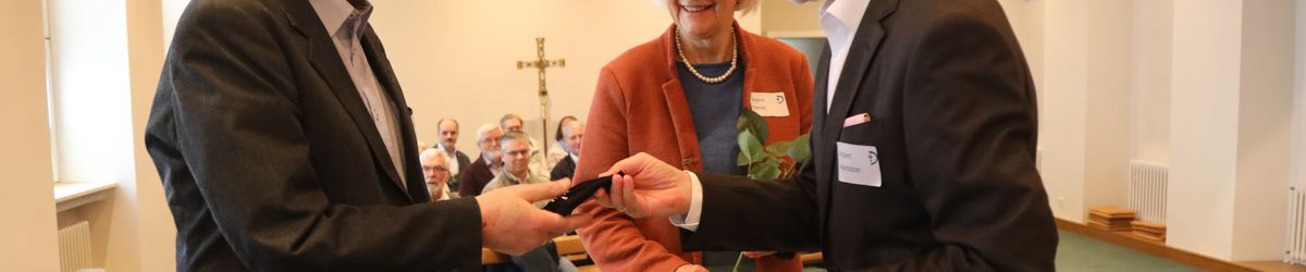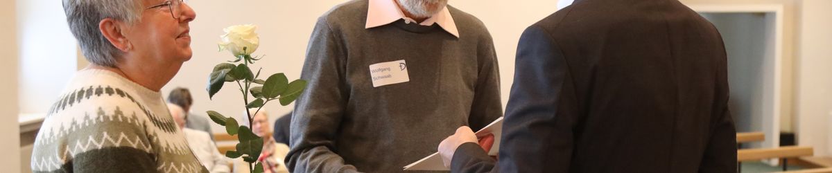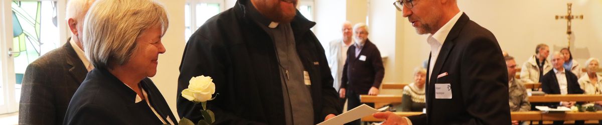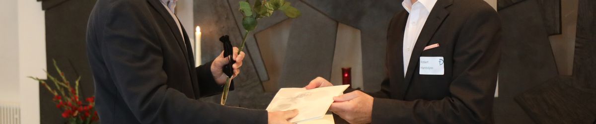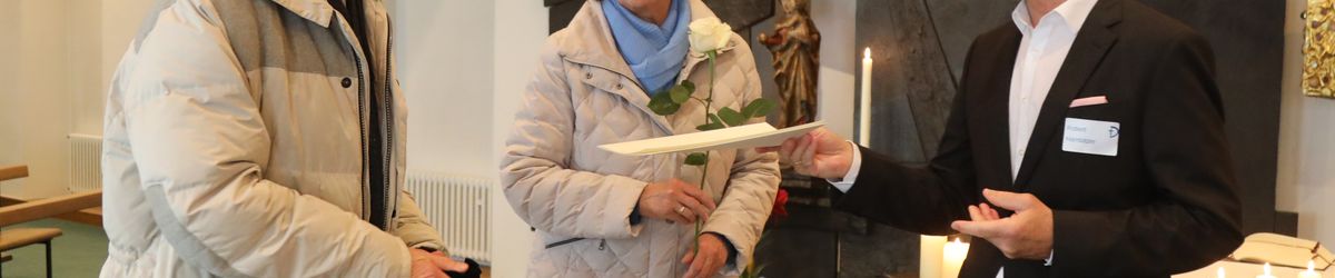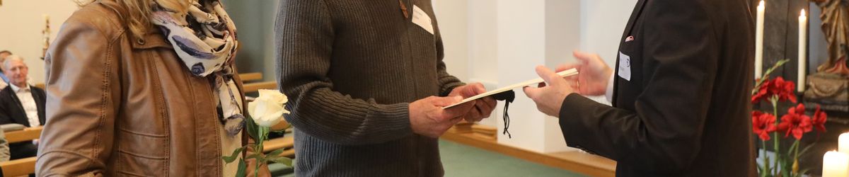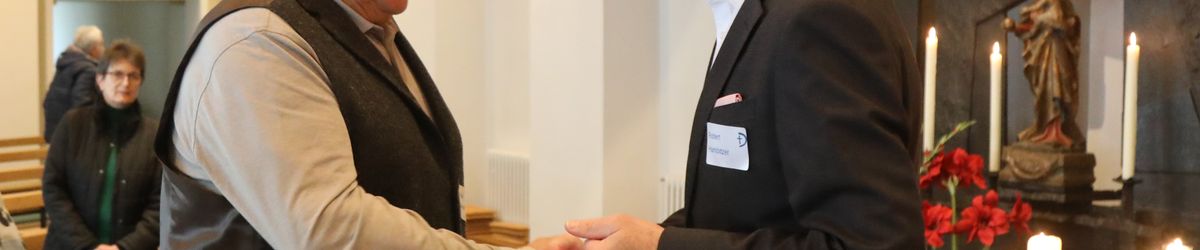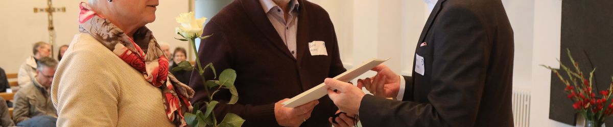 Im Namen von Bischof Dr. Franz Jung, Generalvikar Dr. Jürgen Vorndran und der Bistumsleitung dankte Ordinariatsrat Robert Hambitzer, Leiter der Hauptabteilung Personal, den Ständigen Diakonen für ihren langjährigen Dienst. Gemeinsam mit Subregens Lutz überreichte er jedem ein Dankesschreiben des Bischofs. Zudem bekam jeder einen „Ärgere-Dich-nicht“-Engel aus Bronze, gefertigt in der Abtei Münsterschwarzach. Die Ehefrauen erhielten als kleine Aufmerksamkeit jeweils eine weiße Rose. „Besonders in diesen aktuellen Zeiten ist die Unterstützung und Begleitung Ihrer Männer keine Selbstverständlichkeit“, betonte Hambitzer.
