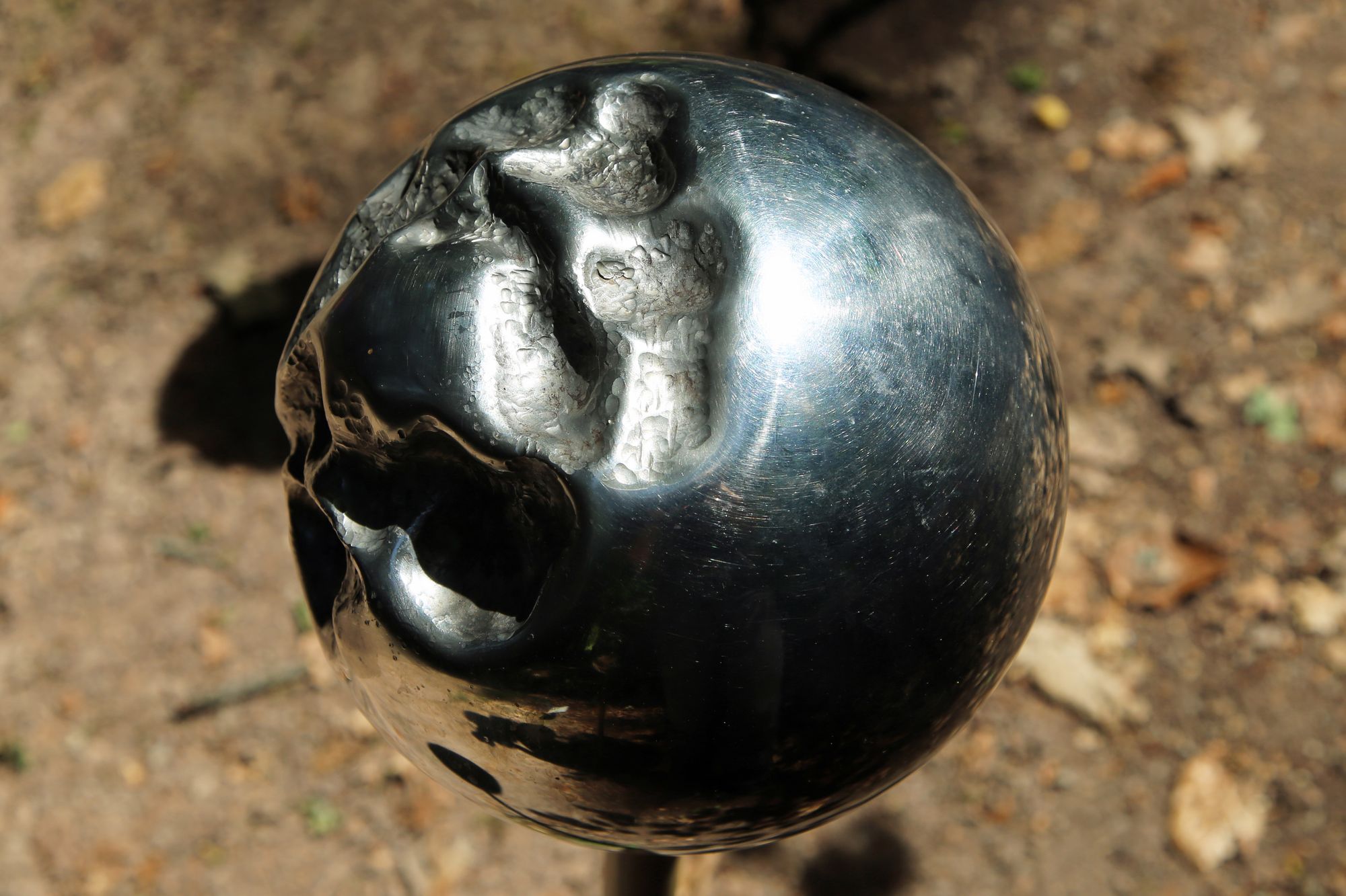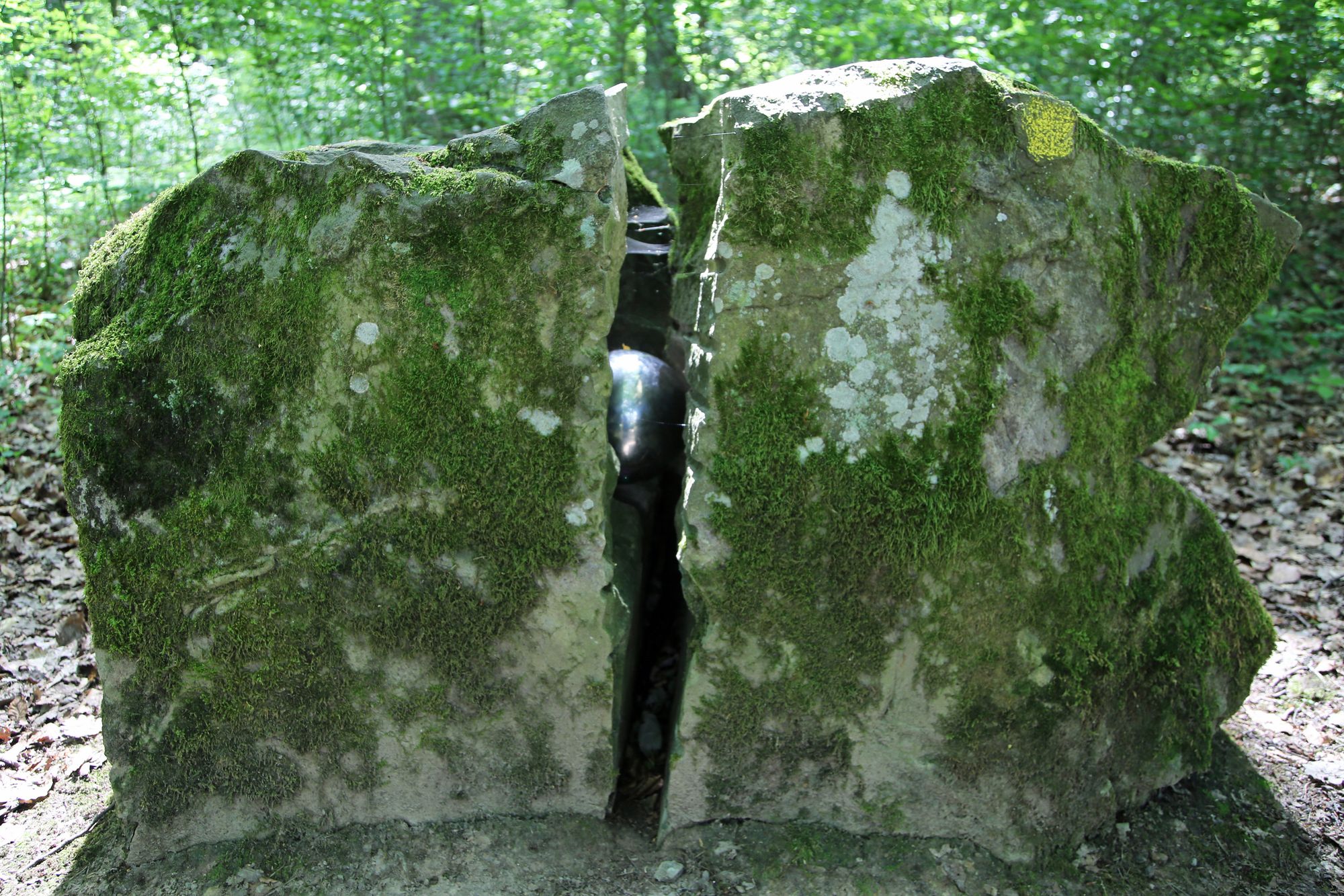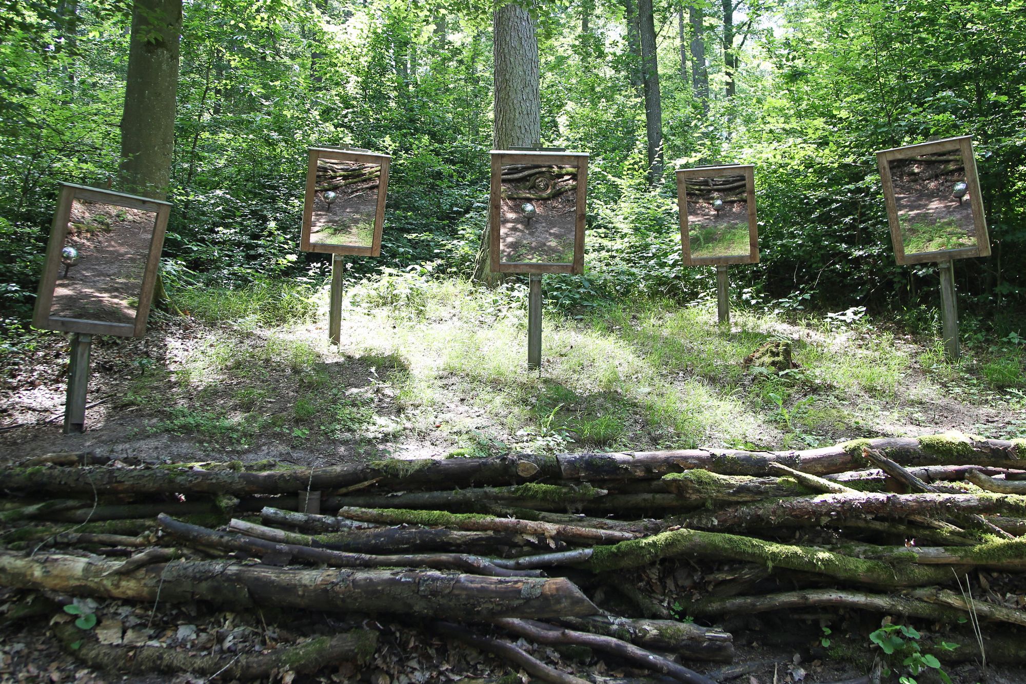 Wenn Summa mit einer Gruppe den „Weg der Besinnung“ geht, ermuntert sie die Teilnehmer gerne zur Interaktion mit den Kunstwerken. Die Skulptur „Geborgen“ etwa – ein riesiger Eichenstamm, der verkehrt herum im Boden steckt – ist groß genug, dass sich ein Mensch zwischen die Äste stellen kann, neben die kleine Kugel, die im Boden steckt. „Die Reaktionen sind sehr unterschiedlich. Manche fühlen sich darin geborgen, manche aber auch eingeengt.“ Zwischen den unterschiedlich hohen, dicken und dünnen Stäben, die bei „Wie weit noch“ in einer langen Reihe in den Wald hineinführen, würden Kinder gerne Slalom laufen. An der Station „Narben“ bleibt Summa ein wenig länger stehen. Vier scheinbar gleiche, glänzende Metallkugeln in einer Reihe – doch die eine hat einen Riss, die andere mehrere Dellen. „Das ist eine ganz tolle Station. Hier kommen die Lebensgeschichten mit ihren Verwundungen und Verletzungen.“