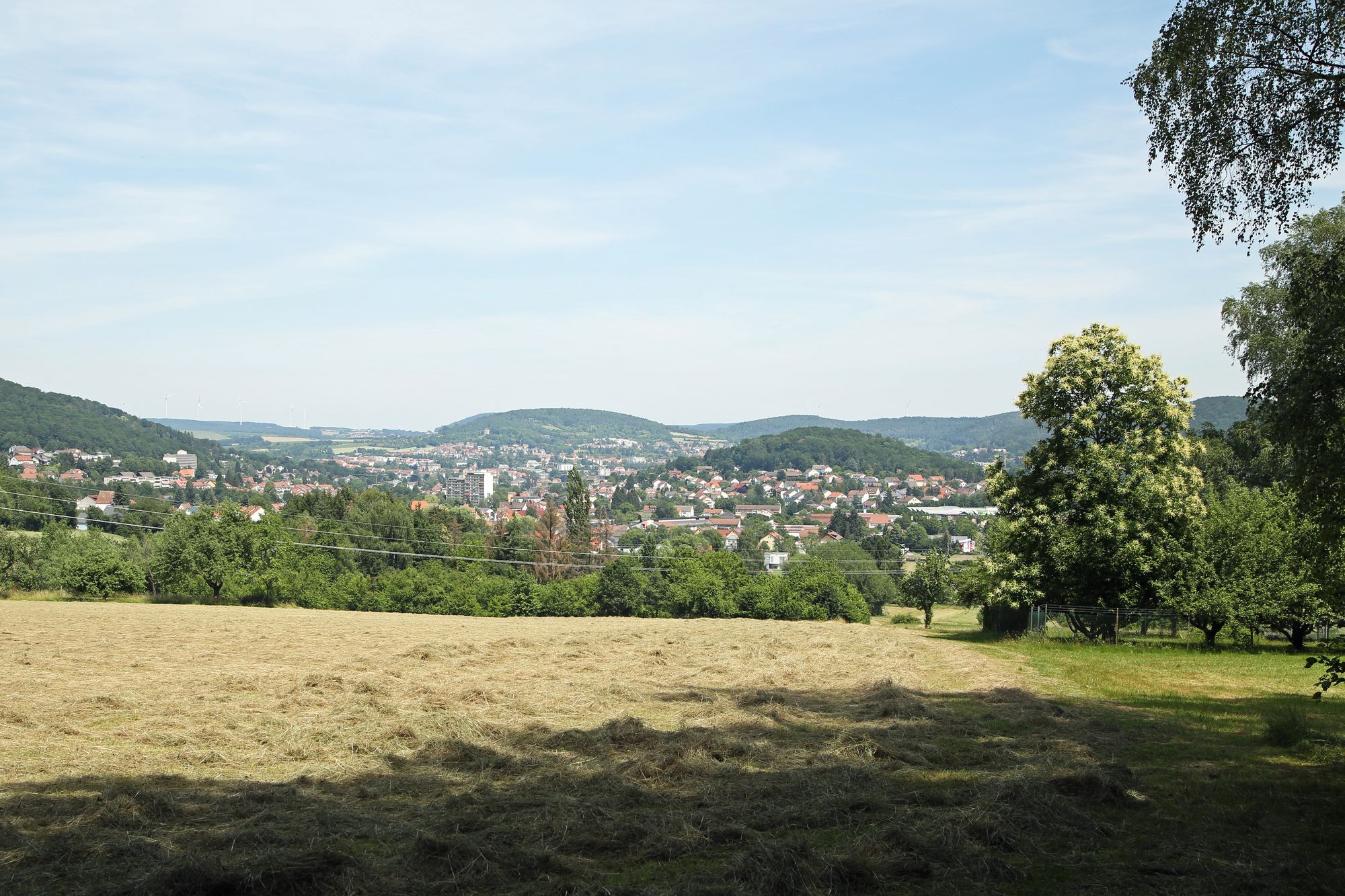 Bad Kissingen (POW) Durch eine Lücke in den Bäumen schweift der Blick über Felder und Wiesen. Es duftet nach Blumen und sonnengetrocknetem Heu. In der Ferne sieht man die Dächer von Bad Kissingen. „Es ist immer schön, einmal innezuhalten“, sagt Gemeindereferentin Ursula Summa, Kur- und Rehaseelsorgerin in Bad Kissingen. Entspannt lehnt sie in der Skulptur „Ausblick“. In eine rund drei Meter hohe Metallplatte hat der Künstler Helmut Droll aus Euerdorf den Umriss eines Menschen mit ausgebreiteten Armen geschnitten. Insgesamt zwölf Kunstwerke hat er für den „Weg der Besinnung“ geschaffen. Jeden Monat führt Summa Gruppen auf dem rund zwei Kilometer langen Weg, der von der Bildungsstätte Heiligenhof, am Ende der Alten Euerdorfer Straße in Bad Kissingen gelegen, bis zum Parkplatz am Rand des Stadtteils Garitz führt. Auch für sie selbst ist der Weg immer wieder spannend. „Es sind immer neue Leute und neue Reaktionen.“