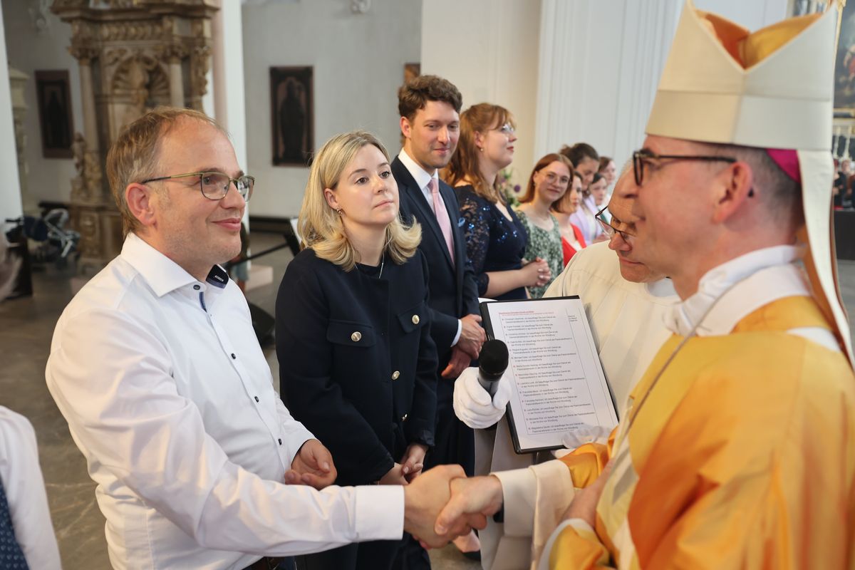 Im Namen aller Beauftragten dankten Lömmer und Sauter Bischof Jung für das durch die Beauftragung entgegengebrachte Vertrauen. Der Dank der Frauen und Männer galt zudem allen, die sie während der Ausbildung begleitet haben, ihren Familien und Freunden sowie allen, die zum Gelingen des Gottesdienstes beigetragen haben. Für die musikalische Gestaltung sorgten Domorganist Professor Stefan Schmidt, Kantorin Alexandra Eck und die Band „Projekt Heaven“. Eine Begegnung bei sommerlichen Temperaturen auf dem Platz vor dem Burkardushaus schloss sich an. Die Kollekte geht an die Stiftung „Weg der Hoffnung – Camino de la Esperanza“ (www.wegderhoffnung.de).
