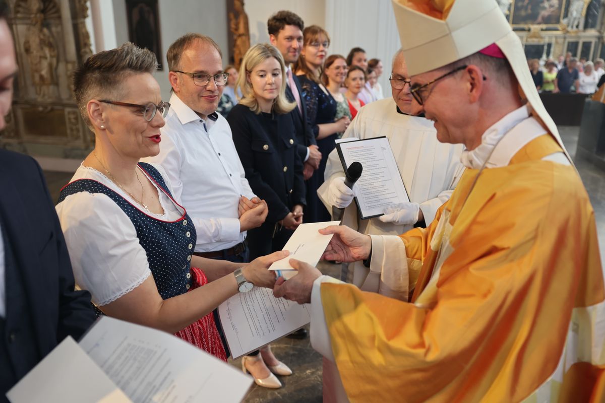 Neun Frauen und fünf Männer hat Bischof Dr. Franz Jung bei einem Pontifikalgottesdienst am Freitag, 19. Juli, als Pastoral- beziehungsweise Gemeindereferenten beauftragt.