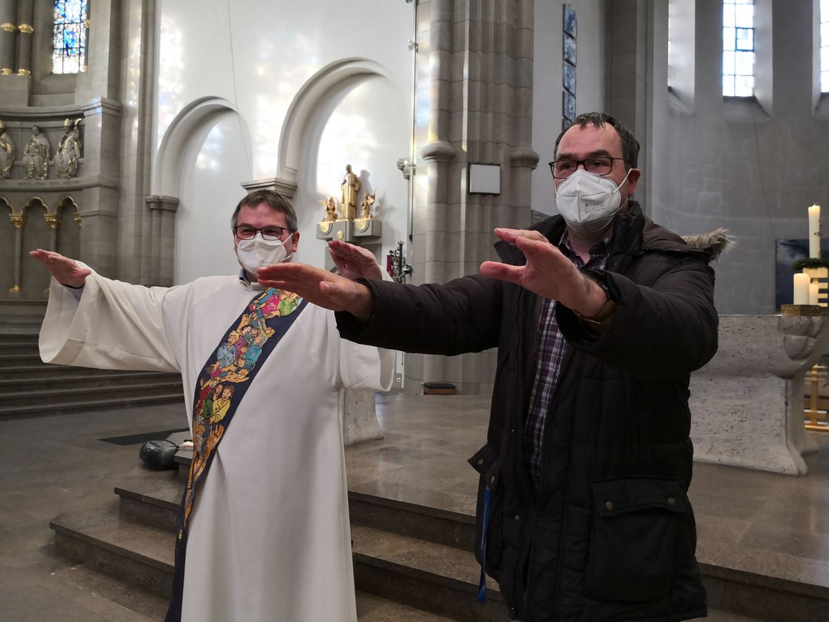 Die Segensfeier wurde musikalisch von Pastoralreferent Ulli Göbel begleitet. Da aufgrund der aktuellen Corona-Bestimmungen das gemeinsame Singen nicht möglich war, spielte er auf der Gitarre und betätigte sich als Solosänger.