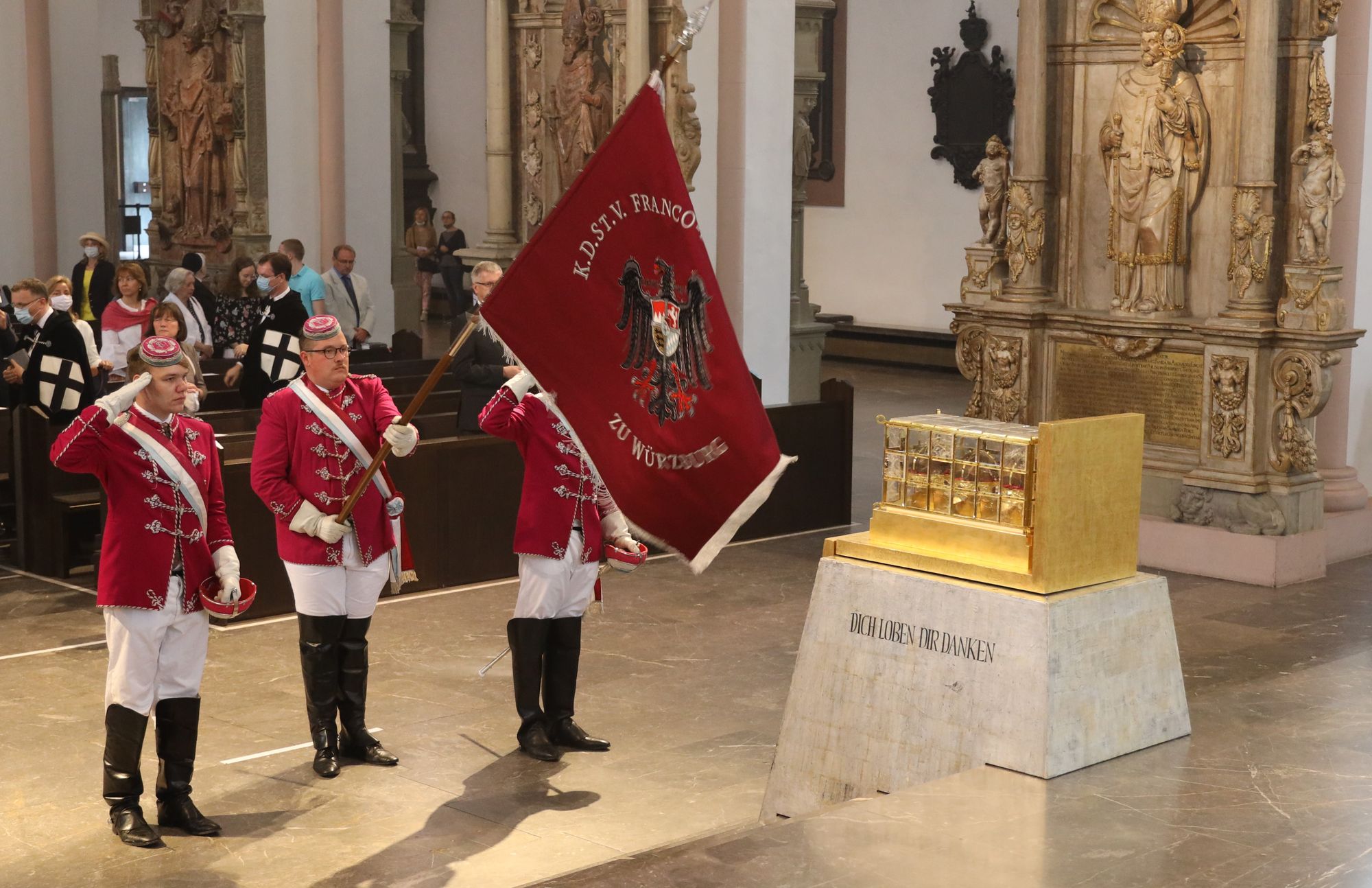 Coronabedingt gab es diesmal keine Reliquienprozession von Sankt Burkard in den Dom. Stattdessen wurde der Schrein mit den Häuptern der Frankenapostel Kilian, Kolonat und Totnan zu Beginn des Gottesdiensts aus dem Altar geholt und auf der Treppe zum Altarbereich zur Verehrung aufgestellt. Neben dem Vorstand des Diözesanrats der Katholiken im Bistum Würzburg nahmen auch Unterfrankens Regierungspräsident Eugen Ehmann, Würzburgs Bürgermeister Martin Heilig sowie Familiaren des Deutschordens, Ritter vom Heiligen Grab sowie Studentenverbindungen an dem Gottesdienst teil. Aufgrund der Abstandsregelungen waren die Sitzplätze im Dom limitiert. Die Feier wurde im Fernsehprogramm von Bibel TV und TV Mainfranken sowie auf dem YouTube-Kanal des Bistums live übertragen.