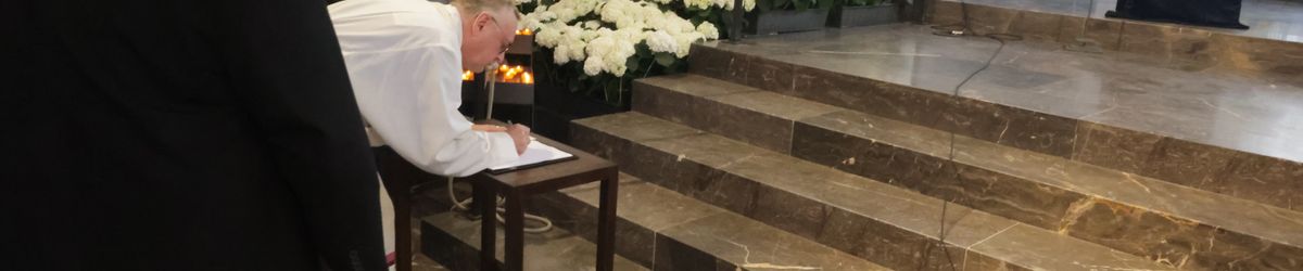 Bischof Dr. Franz Jung entzündete vor der 12-Uhr-Messe im Kiliansdom eine Kerze für den Verstorbenen, betete für ihn und trug sich als erster in das Kondolenzbuch ein. „Möge Papst Franziskus als Pilger der Hoffnung nun heimkehren zum himmlischen Vater und dort die Barmherzigkeit erfahren, die er Zeit seines Lebens verkündet hat. Danke, Papst Franziskus“, schrieb der Bischof.