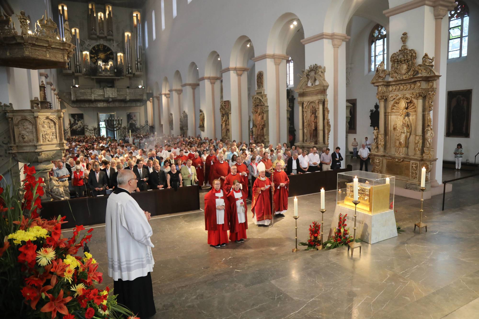Die Gegenwart sei geprägt von wissenschaftlichen Erfolgen, kriegerischen Auseinandersetzungen mit Vertreibung und Flucht, weltweiten Gerechtigkeitsfragen, Hungerproblemen und einer ausgehöhlten Gläubigkeit in Deutschland, sagte der Bischof in seiner Predigt. „Für viele sind Glaube und Wissenschaft zwei gegensätzliche Bereiche. Sie sind keine Gegensätze, sondern die zwei Seiten einer Medaille.“ Papst Franziskus betone, das Licht des Glaubens besitze eine ganz besondere Eigenart, da es fähig sei, das gesamte Sein des Menschen zu erleuchten. Bischof Hofmann sagte, er habe die diesjährige Kiliani-Wallfahrtswoche bewusst unter das Psalmwort „Nahe ist der Herr allen, die ihn rufen“ gestellt. Seine Hoffnung sei, dass dieses helfe, die große Freude im Glauben zu spüren und die Weite der Horizonte wieder kraftvoll wahrzunehmen, die der Glaube erschließe.