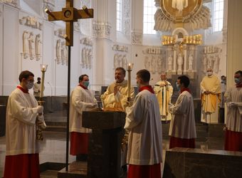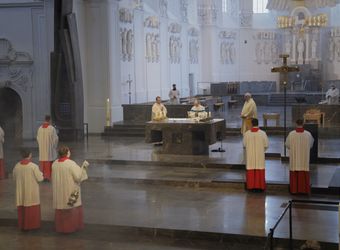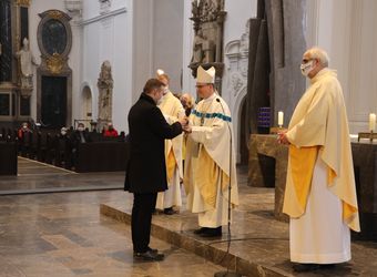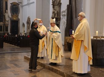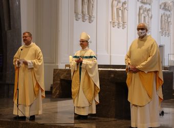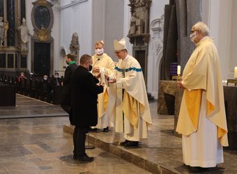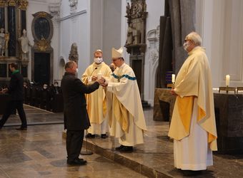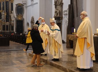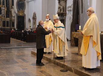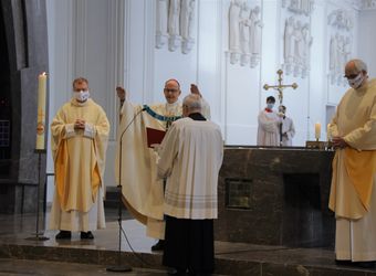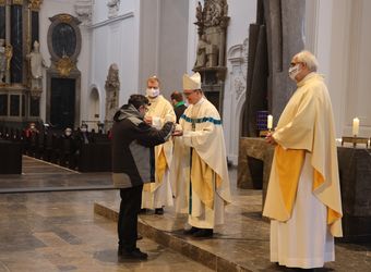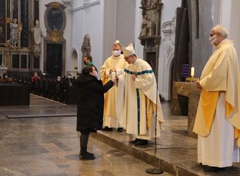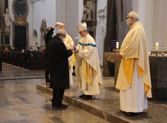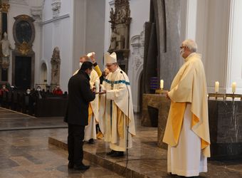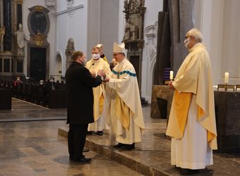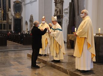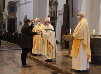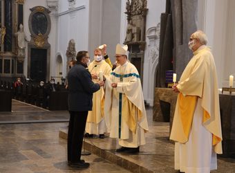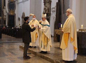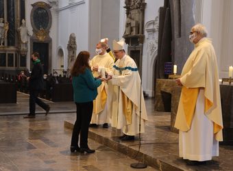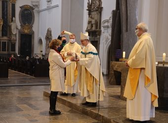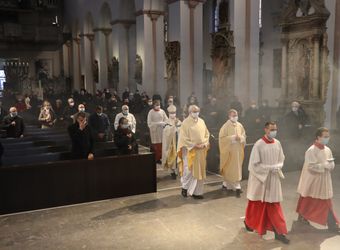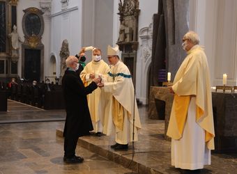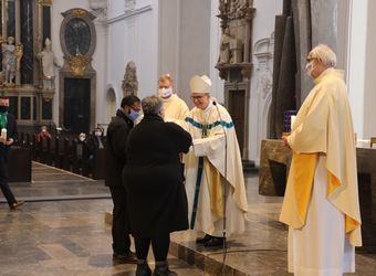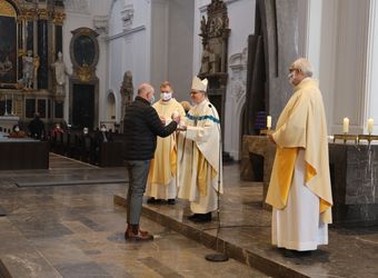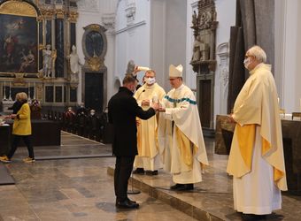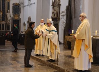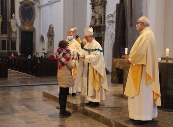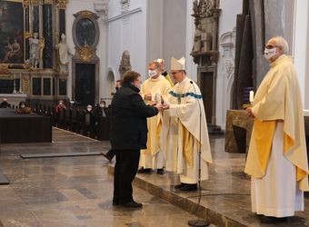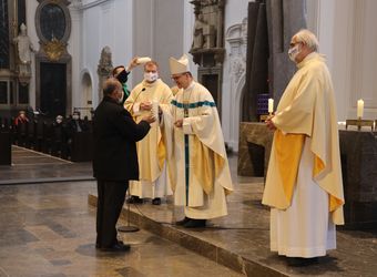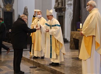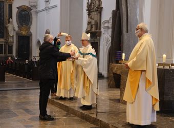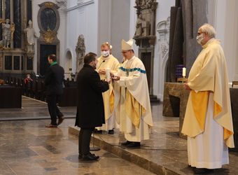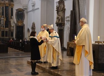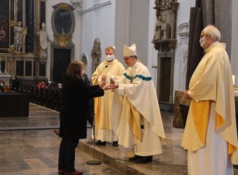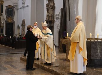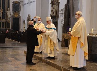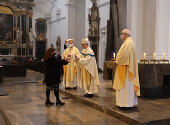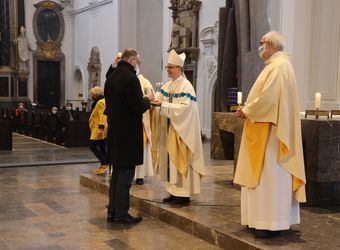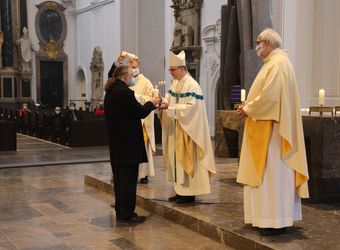 Bischof Dr. Franz Jung hat bei einem Pontifikalgottesdienst am 8. Dezember 2020 im Kiliansdom die Steuerungsgruppen in die 40 Pastoralen Räume des Bistums Würzburg ausgesandt. Als Symbol gab es jeweils eine brennende Kerze mit auf den Weg.