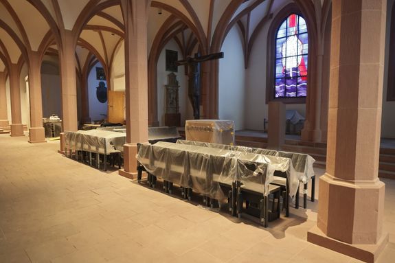 Diese ist seit dem Beginn der Bauarbeiten am 31. März 2025 für die Öffentlichkeit geschlossen. Bis zur Frühjahrsvollversammlung der Deutschen Bischofskonferenz, die vom 23. bis 26. Februar in Würzburg stattfindet, sollen die Arbeiten abgeschlossen sein, erklärte Burkhard Falkenberg, Architekt in der Abteilung Bau der Diözese Würzburg, bei einem Pressegespräch am Donnerstag, 22. Januar. Seit der Beisetzung von Weihbischof Helmut Bauer im Jahr 2024 waren die Grüfte in der Sepultur vollständig belegt. Drei neue Ruhestätten entstehen in der mittleren Kapelle links vom Altar, eine weitere in der äußeren Gruft rechts vom Altar. Bei letzterer handelt es sich laut Falkenberg um ein historisches Grab, das wohl aus der Barockzeit stammt. Für die Bauarbeiten wurde die historische Orgel eingehaust, die Kapellen mit Staubwänden geschützt sowie Altar, Bänke und die sonstige Ausstattung mit Plastikplanen und -folien abgedeckt. Die Baumaßnahmen werden von der Abteilung Bau und dem Kunstreferat der Diözese Würzburg begleitet. Zuletzt wurden im Jahr 2000 im Westflügel des Kreuzgangs 24 neue Grüfte angelegt, in denen die verstorbenen Mitglieder des Domkapitels beigesetzt werden.