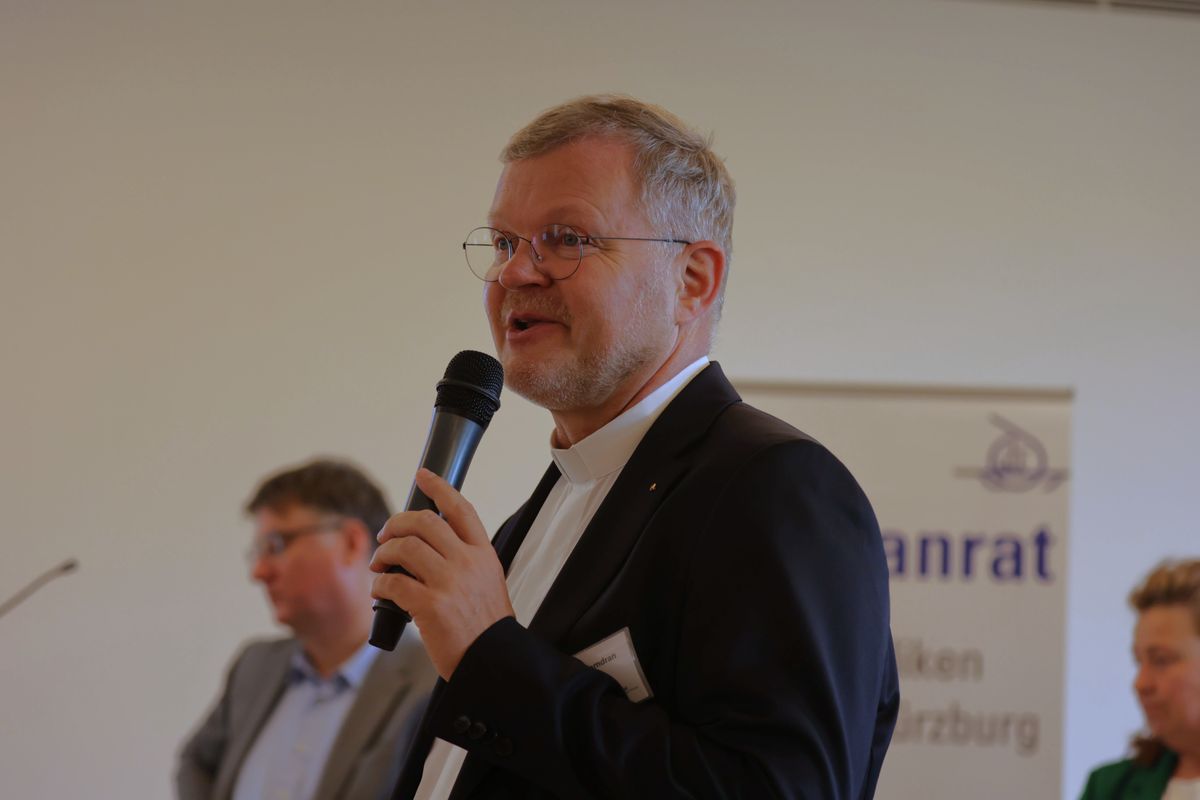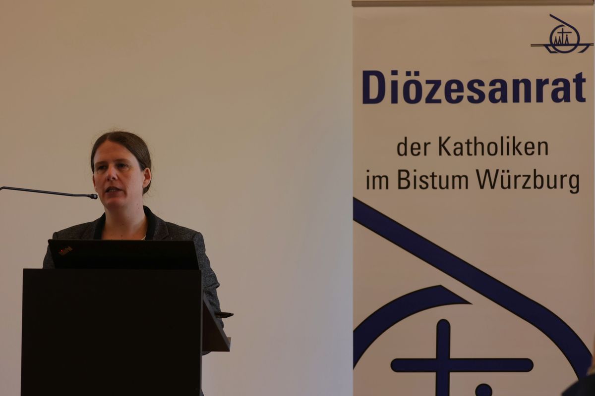Einen weiteren Zwischenbericht zu ihrer Tätigkeit gab Kerstin Schüller, Leiterin der Stabsstelle Aufarbeitung, Prävention und Intervention, den Delegierten des Diözesanrats. „Die Unabhängige Kommission zur Aufarbeitung des sexuellen Missbrauchs im Bistum Würzburg (UKAM) hat uns in diesem Jahr in ihrem Gutachten ein gutes Zeugnis für die Prävention erteilt.“ Es sei aber wichtig, nicht nachzulassen in der Anstrengung, sexualisierte Gewalt zu verhindern. Deswegen müssten im Bistum nicht nur Haupt-, sondern auch Ehrenamtliche alle fünf Jahre ein erweitertes Führungszeugnis vorlegen. Sie wisse, dass die Anforderungen seitens des Bistums bei manchen Ehrenamtlichen als Verdächtigung, übermäßige Bürokratie und gewaltiger Aufwand ankommen. „Ich kann aber immer wieder nur dafür werben. Persönlich könnte ich es mir nicht verzeihen, wenn jemand mit einem Eintrag im erweiterten Führungszeugnis bei uns arbeiten würde.“ Generalvikar Dr. Jürgen Vorndran unterstrich, dass die Präventionsschulungen aller Haupt- und Ehrenamtlichen in ganz Unterfranken die Auseinandersetzung mit dem Thema „sexuelle Gewalt“ auf allen Ebenen zum Ziel haben. „Dadurch sensibilisieren wir in großem Umfang. Und das ist der beste Schutz.“