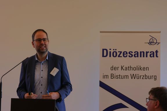 Würzburg (POW) Auf einem guten Weg ist nach den Worten von Ordinariatsrat Bernhard Lutz, Leiter der Stabsstelle Strategie, der Strategieprozess im Bistum Würzburg. Nach der ersten Runde in den vergangenen Jahren seien erste konkrete Ergebnisse in der Umsetzung. Übergreifende Themen seien identifiziert und die Bearbeitung geplant. „Vor allem aber haben wir neue Perspektiven durch die breite Beteiligung gewonnen“, erklärte Lutz am Samstag, 11. Oktober, bei der Herbstvollversammlung des Diözesanrats der Katholiken im Würzburger Exerzitienhaus Himmelspforten. Der Strategieprozess gehe weiter. Derzeit erarbeiteten 52 Personen in zehn Arbeitsgruppen 67 Vorschläge für unterschiedliche Handlungsfelder. Eine konkrete Frucht sei eine neue zentrale Anlaufstelle für Lob und Kritik, die demnächst an den Start gehe.