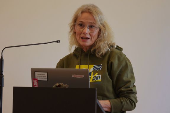 Christine Kaupp und Luisa Geisler von der Geschäftsstelle des Katholikentags warben um Privatquartiere und suchten Helfende, die bei der Organisation der Großveranstaltung mit anpacken. Gesucht werden private Gastgeber im Radius von einer Stunde um Würzburg, die Übernachtungsmöglichkeiten für Katholikentagsbesucher bieten. Das könne ein Platz für Schlafsack und Isomatte, ein Zeltplatz im Garten, ein Stellplatz für ein Wohnmobil oder eben ein oder mehrere Betten sein. Oft entstünden auf diese Weise spannende Begegnungen. „Als kleine Anerkennung erhalten Sie als Gastgeber zwei Tagestickets für den Katholikentag“, erklärte Kaupp. Die Anmeldung als Gastgeber ist unter katholikentag.de/gastgeben online möglich. Wer sich als helfende Hand engagieren möchte, beispielsweise bei Großveranstaltungen wie den Gottesdiensten, an Infoständen, als Fahrbereitschaft oder beim Lenken der Besucherströme, kann sich unter https://www.katholikentag.de/helfen registrieren.