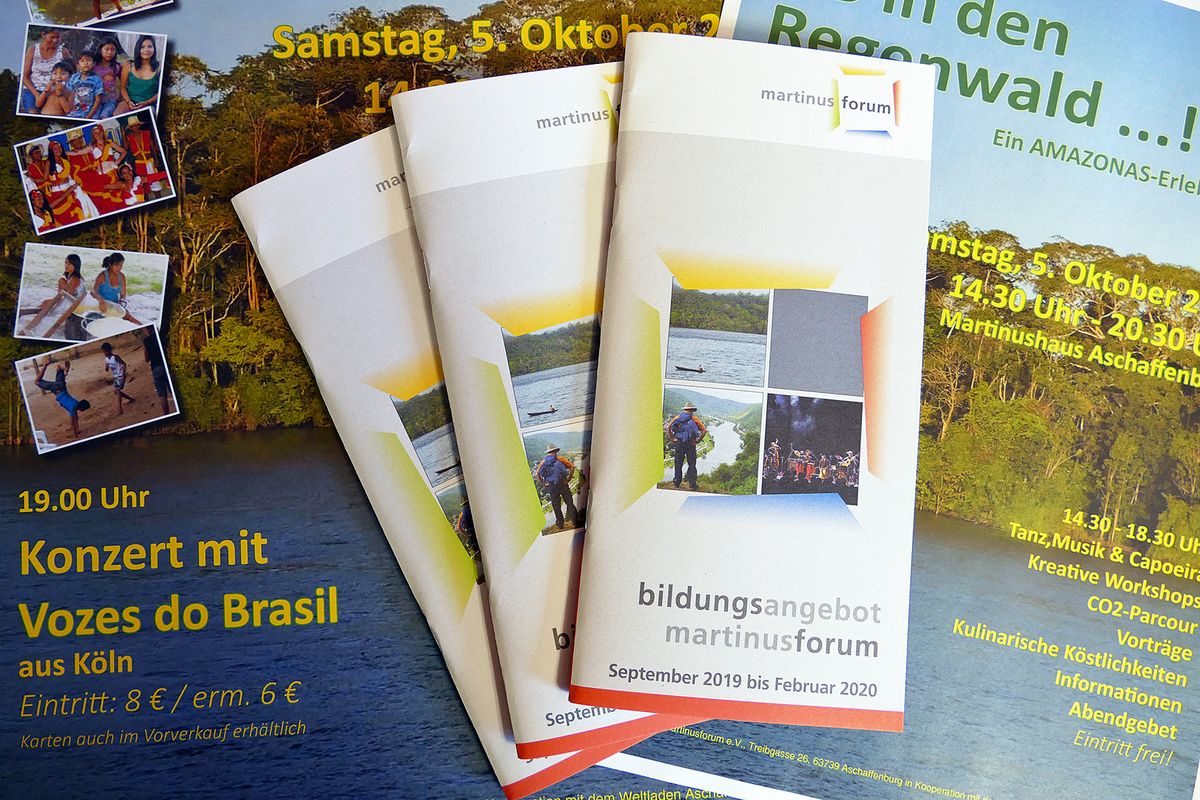 Aschaffenburg (POW) Ab sofort ist das neue Erwachsenenbildungsprogramm des Martinusforums für die Region Untermain erhältlich. Es bietet eine Vielzahl von Veranstaltungen, die von Lebens- und Glaubensthemen über Angebote für die Gesundheit bis hin zu Erziehung und Reisen reichen. Besondere Schwerpunkte sind ein Blick auf die Amazonassynode in Rom, die Auseinandersetzung mit dem Missbrauchsskandal in der katholischen Kirche und das Thema Euthanasie.
