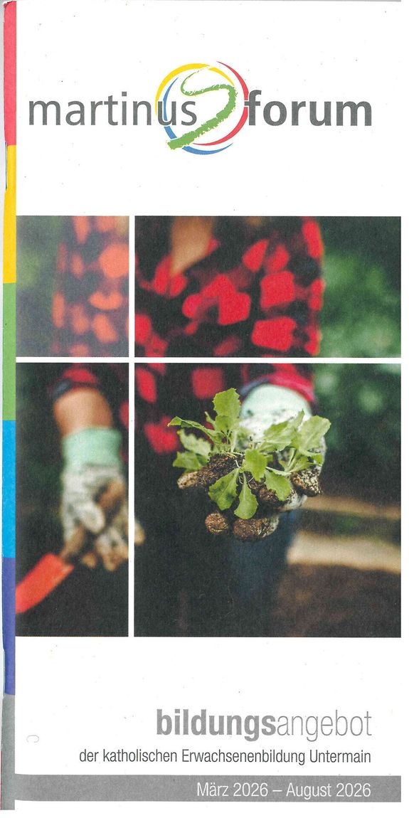 „Wir freuen uns darauf, mit Ihnen neue Perspektiven zu entdecken, über den Tellerrand zu blicken und die Vielfalt des Lebens bewusst zu erleben“, heißt es im Vorwort. Die „Garten-Reihe – nachhaltig gut leben“ verbinde praktische Tipps mit inspirierenden Impulsen, die dazu einladen, den eigenen Alltag achtsamer und im Einklang mit der Umwelt zu gestalten. Dazu werden in der Rubrik „Glaube und Gesellschaft“ die Veranstaltungen „Biologische Vielfalt in der Landwirtschaft. Chance und/oder Herausforderung für die Zukunft?“ (28. April) und „Köhlerei im Spessart. Vom Wirtschaftsfaktor zum Kulturgut“ (19. Mai) angeboten. Am 11. September wird zudem die Fotoausstellung „Tatort Garten. Ödnis oder Oase“ eröffnet. Sie wolle den Blick dafür schärfen, was „in neuerer Zeit in unserer Umgebung zum Schaden für die Natur und der ihr innewohnenden Ästhetik geschieht“. Unter dem Titel „Hoffnung, die mich trägt“ teilen Menschen aus Politik, Kirche und Gesellschaft ihre Hoffnungsgeschichten (ab 26. Februar). Von den Bäumen lernen heißt es beim Persönlichkeitsworkshop „Wie ein Baum, so sei vor dir mein Leben“ (22. März). Angeboten werden zudem Tagesfahrten zu Themen wie „Jüdisches Fürth und Nürnberger Prozesse“ (14. Juni) oder zum Rosendorf Steinfurth (24. Juni). Das komplette Programm ist am Empfang des Martinushauses, Treibgasse 26, 63739 Aschaffenburg, Telefon 06021/392100, erhältlich. Informationen gibt es auch im Internet unter www.martinusforum.de.