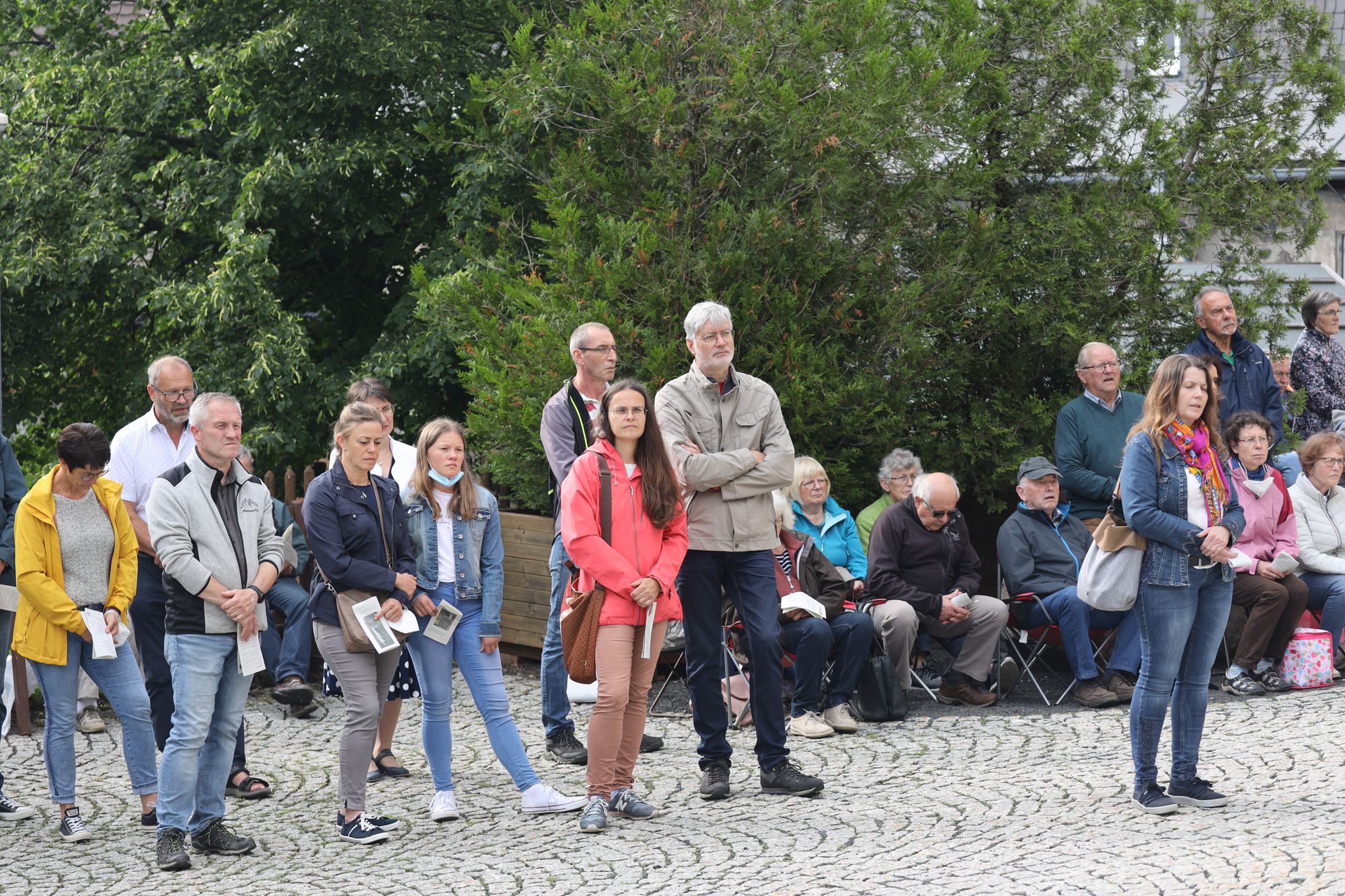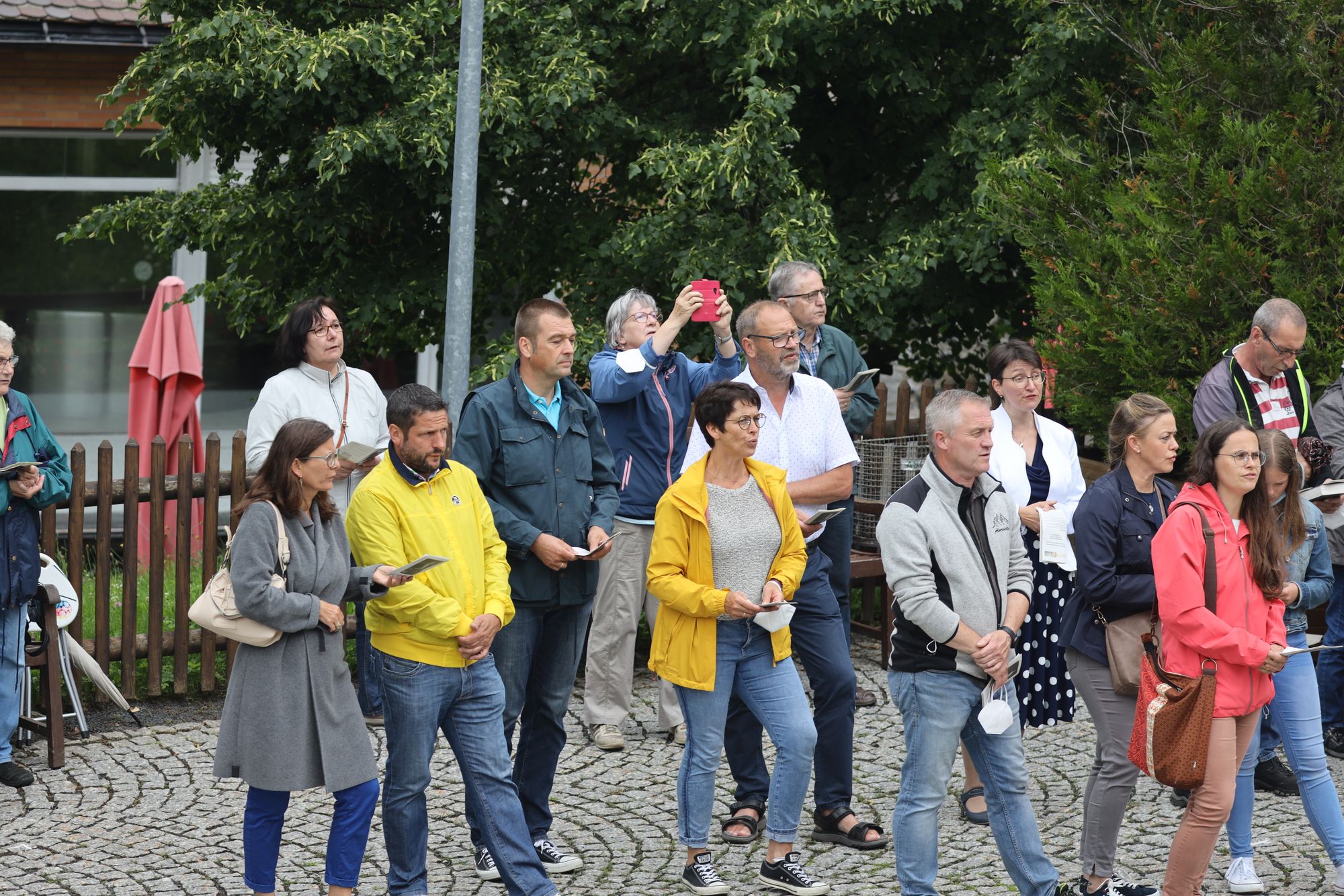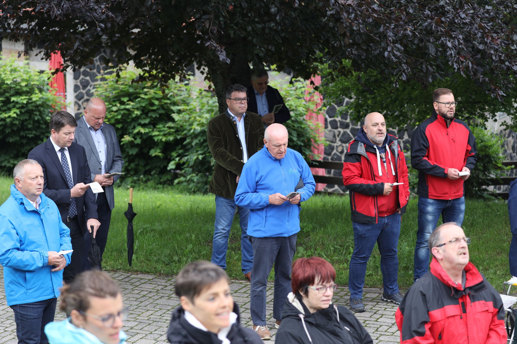 Thomas Habermann, Landrat von Rhön-Grabfeld, wertete den Gottesdienst auf dem Kreuzberg als „sehr schönes Zeichen“ in der Kiliani-Wallfahrtswoche. Die Stimmung sei sehr andächtig gewesen, auch wenn vergleichsweise wenige Leute mitgefeiert hätten. Auch sein Amtskollege Thomas Bold wertete es als wichtiges Signal, dass die Kirche die Nähe zu den Menschen suche. Das sei gerade angesichts der momentan für die Kirche schwierigen Zeit von großer Bedeutung. Landtagsabgeordneter Sandro Kirchner freute sich, dass nach den vielfältigen Einschränkungen in der Coronapandemie jetzt Kirche wieder sichtbar sei. „Da finde ich den Ansatz mit Kiliani-Gottesdiensten in der Fläche besonders schön.“ Martin Schmitt, Bürgermeister der Gemeinde Salz (Landkreis Rhön-Grabfeld) lobte den „schönen Gottesdienst“. Er bedauerte, dass aufgrund der Pandemieschutzmaßnahmen nicht wie sonst nach den Kiliani-Gottesdiensten Gelegenheit zur Begegnung angeboten werde. „Durch Corona haben sich viele von der Kirche entfernt. Und, wie ich befürchte, die meisten davon dauerhaft.“