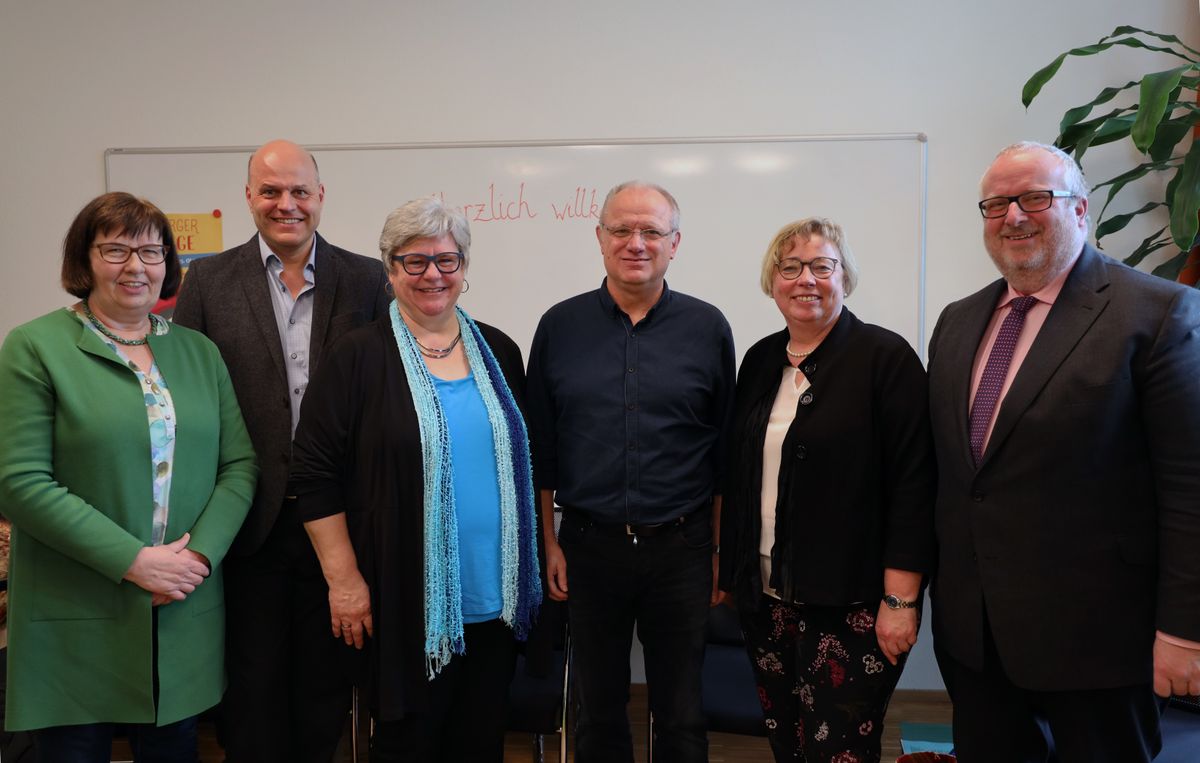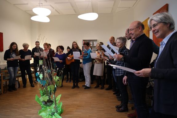 Als „äußerst vielseitig einsetzbar“ würdigte Albert Knött, EFL-Fachreferent der Diözese Würzburg und Leiter der Würzburger Beratungsstelle, Fleckenstein. Dieser habe als Vorbild maßgeblich dazu beigetragen, dass er selbst auch die Ausbildung in EFL absolviert habe. „Am Ende Deiner Arbeit in Festanstellung möchte ich Dir ganz ausdrücklich auch im Namen des Teams aufs Herzlichste Danke sagen für alles, was Du für die EFL und ihre Klientinnen und Klienten geleistet hast“, sagte Knött. Für das Personalreferat würdigte Johannes Reuter, Diözesanreferent für die Berufsgruppe der Pastoralreferenten, das Wirken Fleckensteins. Er gehöre mit fast 37 Dienstjahren zur ersten Generation seiner Berufsgruppe und sei deutlich vom Geist des Zweiten Vatikanischen Konzils geprägt. „Du hast Dich nie vor neuen Aufgaben gescheut“, betonte Reuter. Stets habe Fleckenstein sich dabei für eine geschwisterliche Kirche eingesetzt, die nahe bei den Menschen ist. Als Beispiel nannte Pastoralreferentin Doris Schäfer, Leiterin der Gefängnisseelsorge in den Justizvollzugsanstalten Würzburg und Schweinfurt, Fleckensteins Einsatz bei den Paarseminaren in der JVA Würzburg. Dort habe er mit seiner einfühlsamen Art einen „unschätzbaren Dienst“ geleistet. Schäfer ermunterte ihn dazu, sich ehrenamtlich auch weiterhin für die Gefangenen und ihre Angehörigen einzusetzen. Für die Mitarbeitervertretung (MAV) des Bischöflichen Ordinariats überbrachte die Vorsitzende Dorothea Weitz Glück- und Segenswünsche, verbunden mit einem Auszug aus Hermann Hesses Gedicht „Stufen“. Mit kurzen Zitaten aus Texten, die seine Arbeit „in diesem Laden Kirche“ maßgeblich beeinflusst haben, schaute Fleckenstein zurück. Von Karl Rahner habe er gelernt, dass Gott in Jesus Christus seine Liebe zur Welt und jedem einzelnen Menschen deutlich gemacht hat und seine Beziehung anbietet. Von Meister Eckart habe er mitgenommen, dass jede Zeit Gottes Zeit ist und nur bei Wertschätzung des Gegenübers Beziehung gelingen kann. Und aus dem Konzilsdokument „Gaudium et spes“ sei für ihn zentral, dass die Kirche bei den Menschen ist und den Blick über den eigenen Tellerrand hinaus wagt. Er dankte allen, mit denen er zusammenarbeiten durfte, und besonders seiner Frau für die Unterstützung.