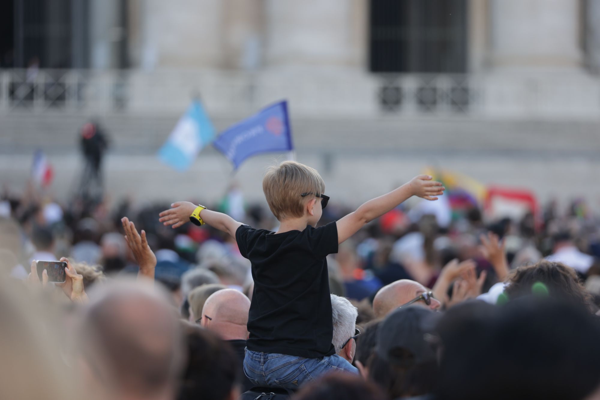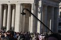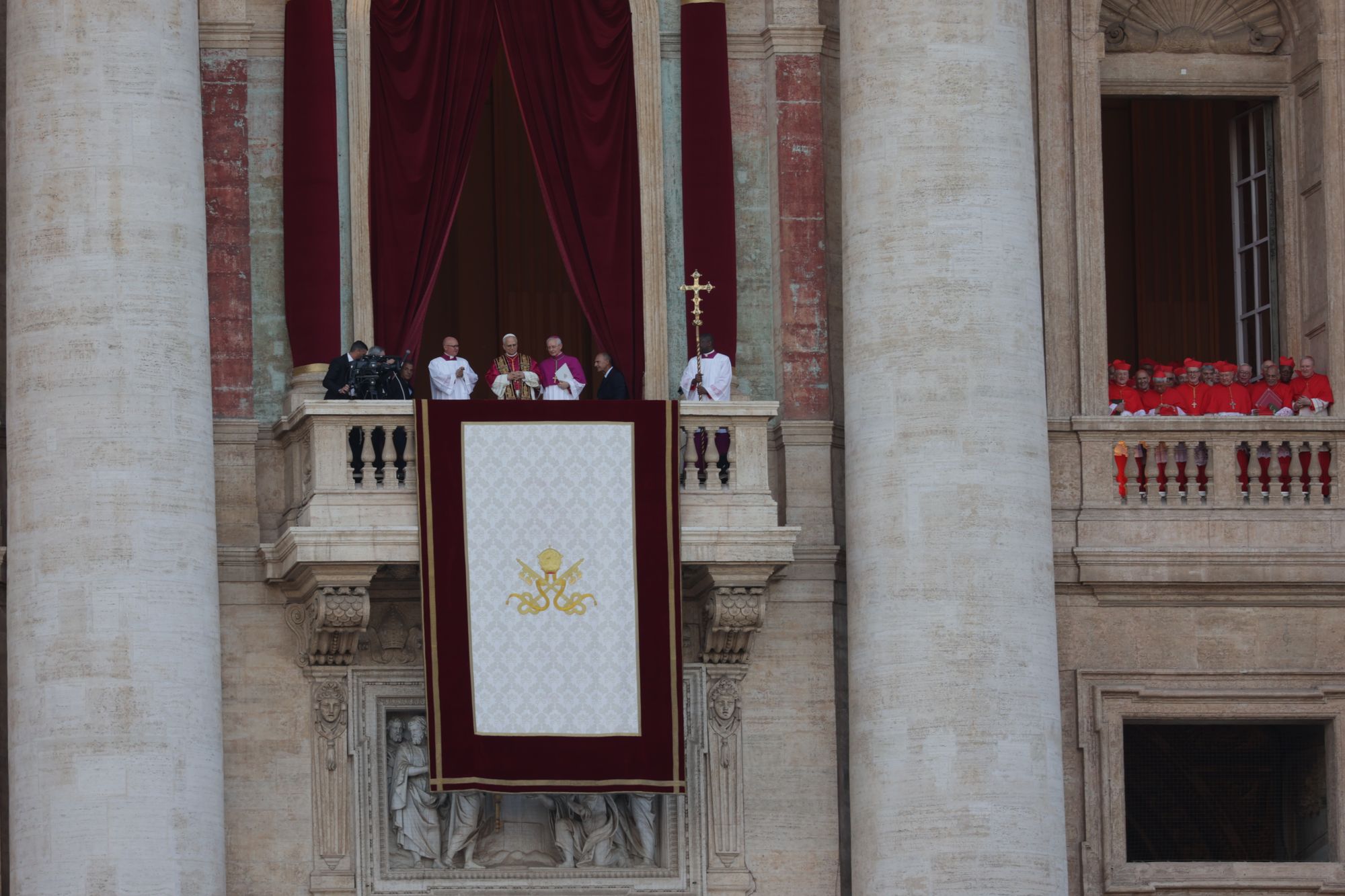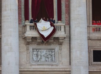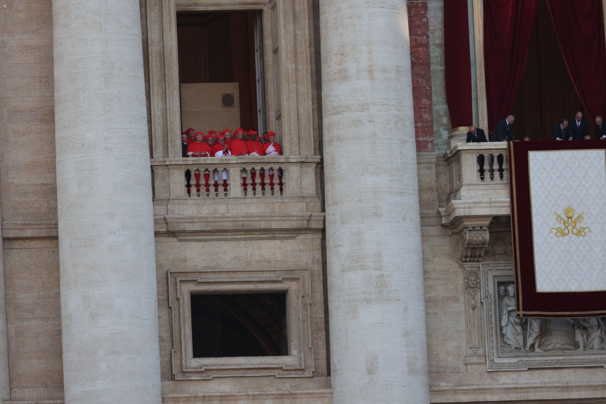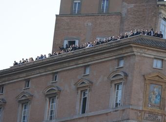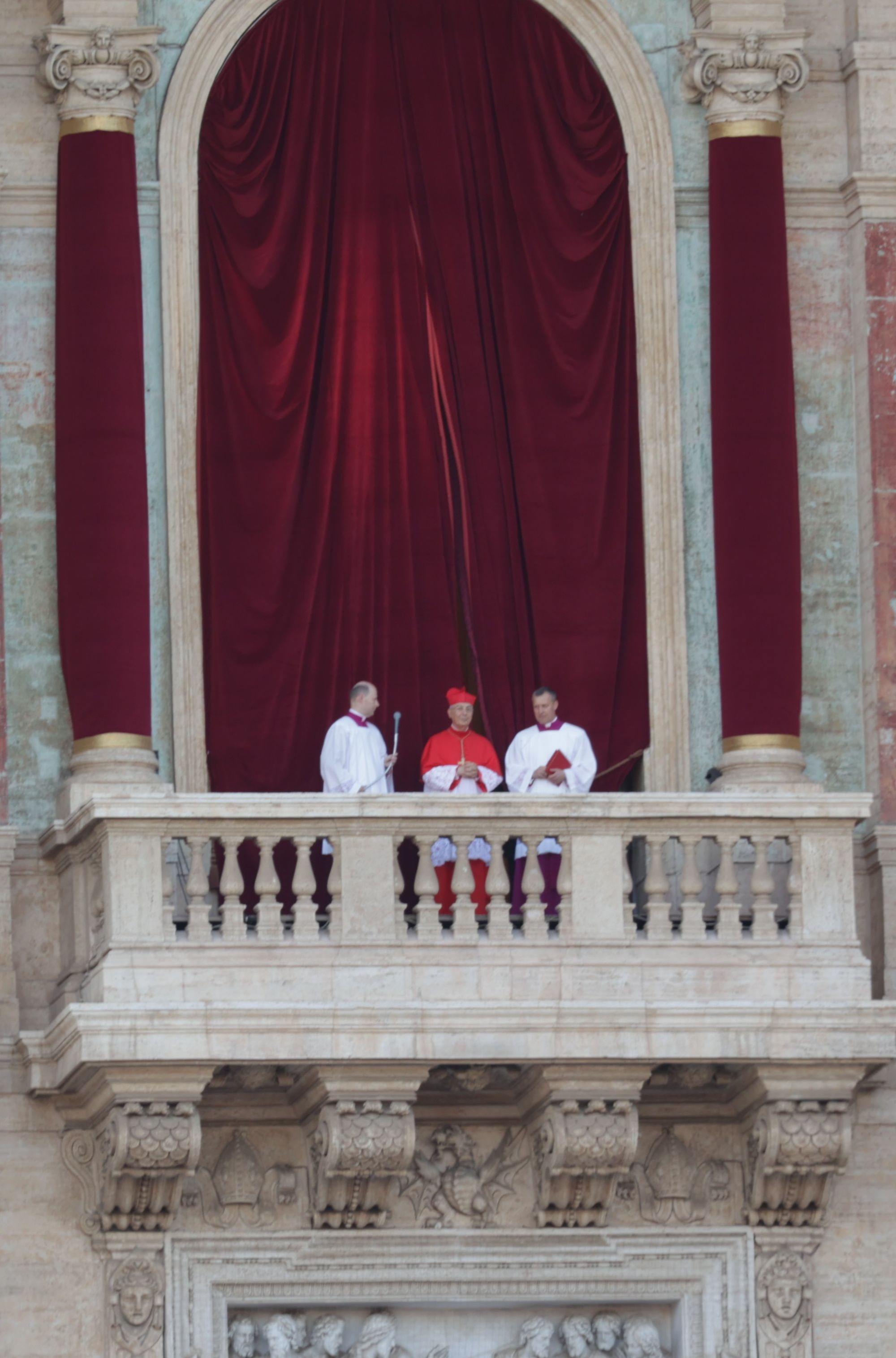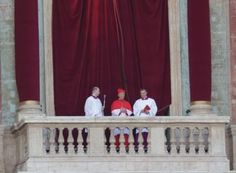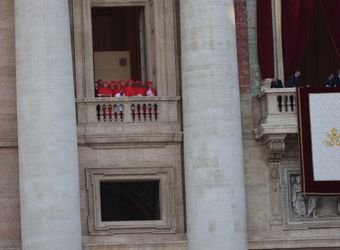 Fast eine Stunde ist seit den verheißungsvollen Rauchzeichen vergangen. Die Menschen auf dem Platz haben sich die Zeit mit dem Drehen von Videos und dem Winken in Richtung der Fernsehkameras vertrieben. Da öffnen sich die Türen der Mittelloggia und Kardinal Dominique Mamberti, der dienstälteste Kardinaldiakon unter 80 Jahren, tritt heraus. „Annuntio vobis gaudium magnum: Habemus Papam!“
