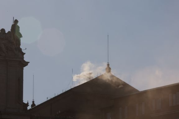 Rom/Würzburg (POW) Ein Raunen geht durch die Menge. Dann blicken alle auf dem Petersplatz in Richtung des Schornsteins an der Sixtinischen Kapelle. Es ist kurz nach 18 Uhr am Donnerstag, 8. Mai. Weißer Rauch quillt empor. Die Glocken des Petersdoms beginnen zu läuten. „Hab‘ ich nicht gesagt, wir kommen pünktlich dazu?“, ruft Generalvikar Dr. Jürgen Vorndran der kleinen Gruppe von Frauen und Männern aus dem Bistum Würzburg zu.