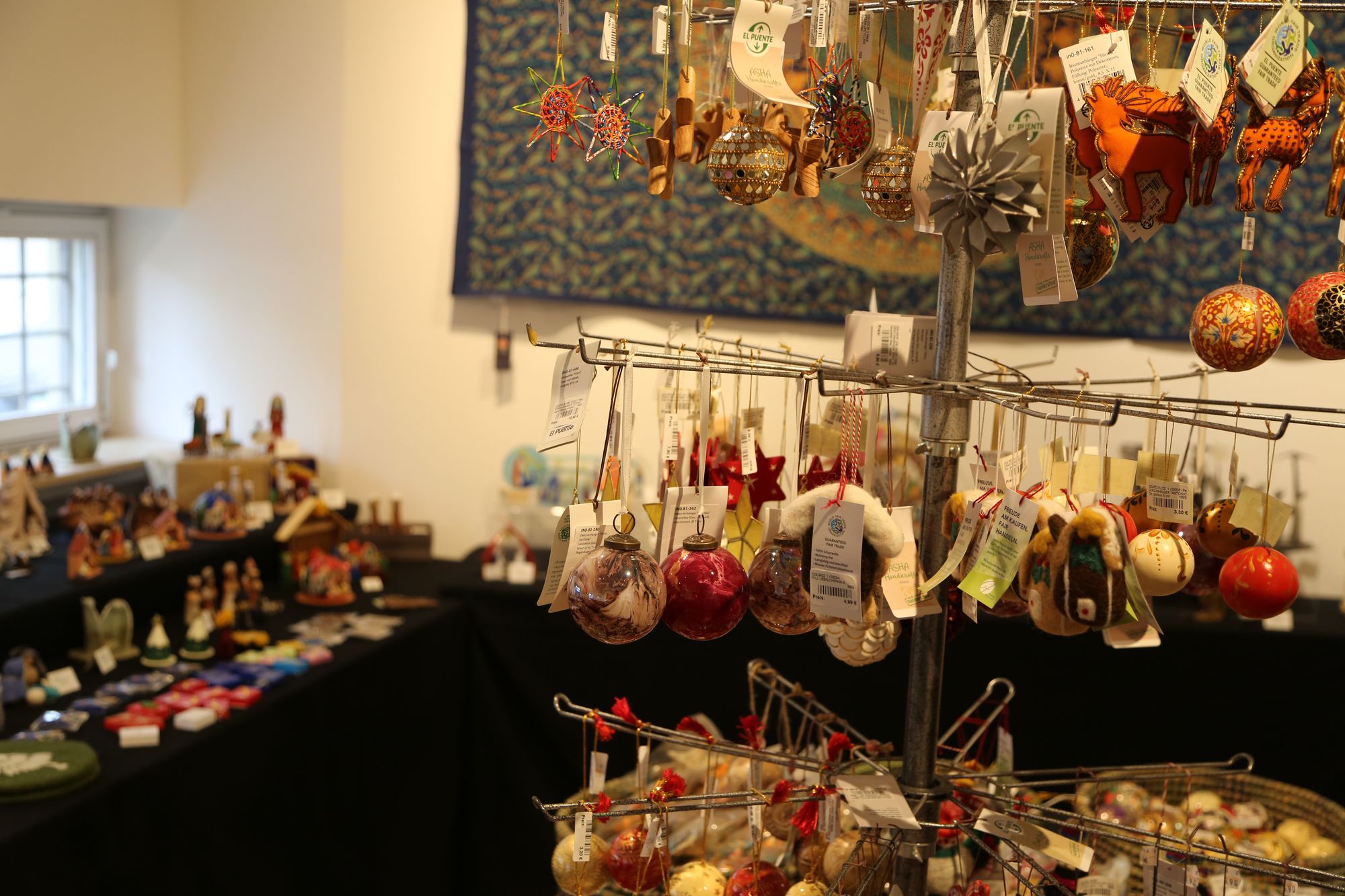 Bereits jetzt herrsche laut Sauter großes Interesse an den Weihnachtsprodukten. „Schon beim Aufbauen wollten die Leute immer wieder hochkommen.“ Laut Sauter sind die fairen Weihnachtsprodukte auch deshalb so gefragt, weil es die Möglichkeit gibt, mehr über die Produkte zu erfahren. „Wir können zu jedem Produkt etwas sagen. Wo sie herkommen oder welches Material es ist, vielleicht auch Informationen zu den Kunsthandwerkern“, sagt Sauter. „Es stehen einfach Menschen hinter den Produkten. Nicht nur die Kunsthandwerker, sondern auch diejenigen, die etwas vom Profit haben. Sie verdienen damit ihren Lebensunterhalt“, erklärt die Geschäftsleiterin.