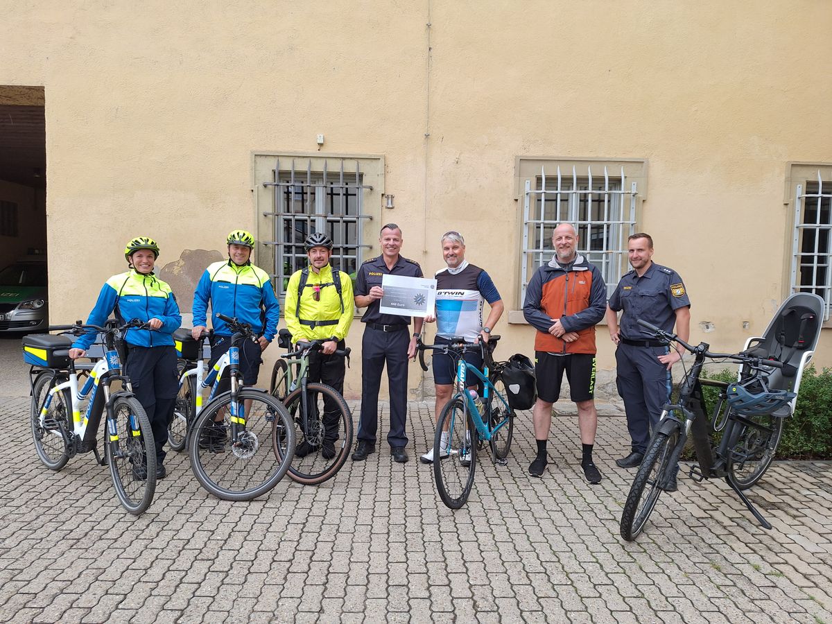 Würzburg (POW) 700 Kilometer, über 4000 Höhenmeter und viele herzliche Begegnungen: Ende Juli hat sich Polizeiseelsorger Pastoralreferent Matthias Zöller auf eine besondere Fahrradtour durch Unterfranken begeben. Sein Ziel war es, alle Polizeistationen zu besuchen, die im Zuständigkeitsbereich des Polizeipräsidiums Unterfranken angesiedelt sind, mit den Beamtinnen und Beamten ins Gespräch zu kommen und gleichzeitig Spenden für die Bayerische Polizeistiftung zu sammeln.