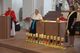 Vor den Fürbitten entzündeten teils in den Trachten ihrer Herkunftsregionen bekleidete Heimatvertriebene große Kerzen mit den Wappen und den Namen ihrer alten Heimatregionen und der neuen Heimat Franken vor dem Altar. Dabei betete Pfarrer Possmayer für alle Menschen, die sich in Deutschland und in den früheren Heimatregionen um Frieden und Aussöhnung bemühen.