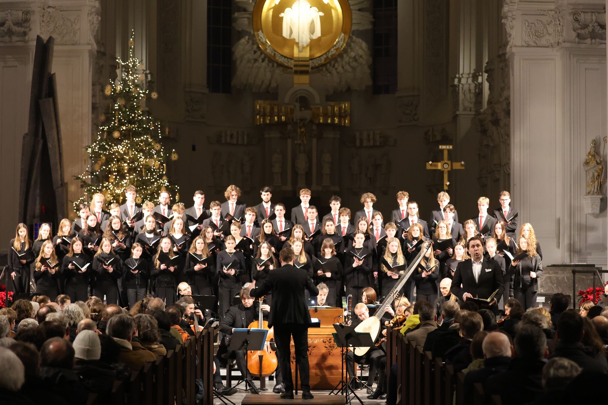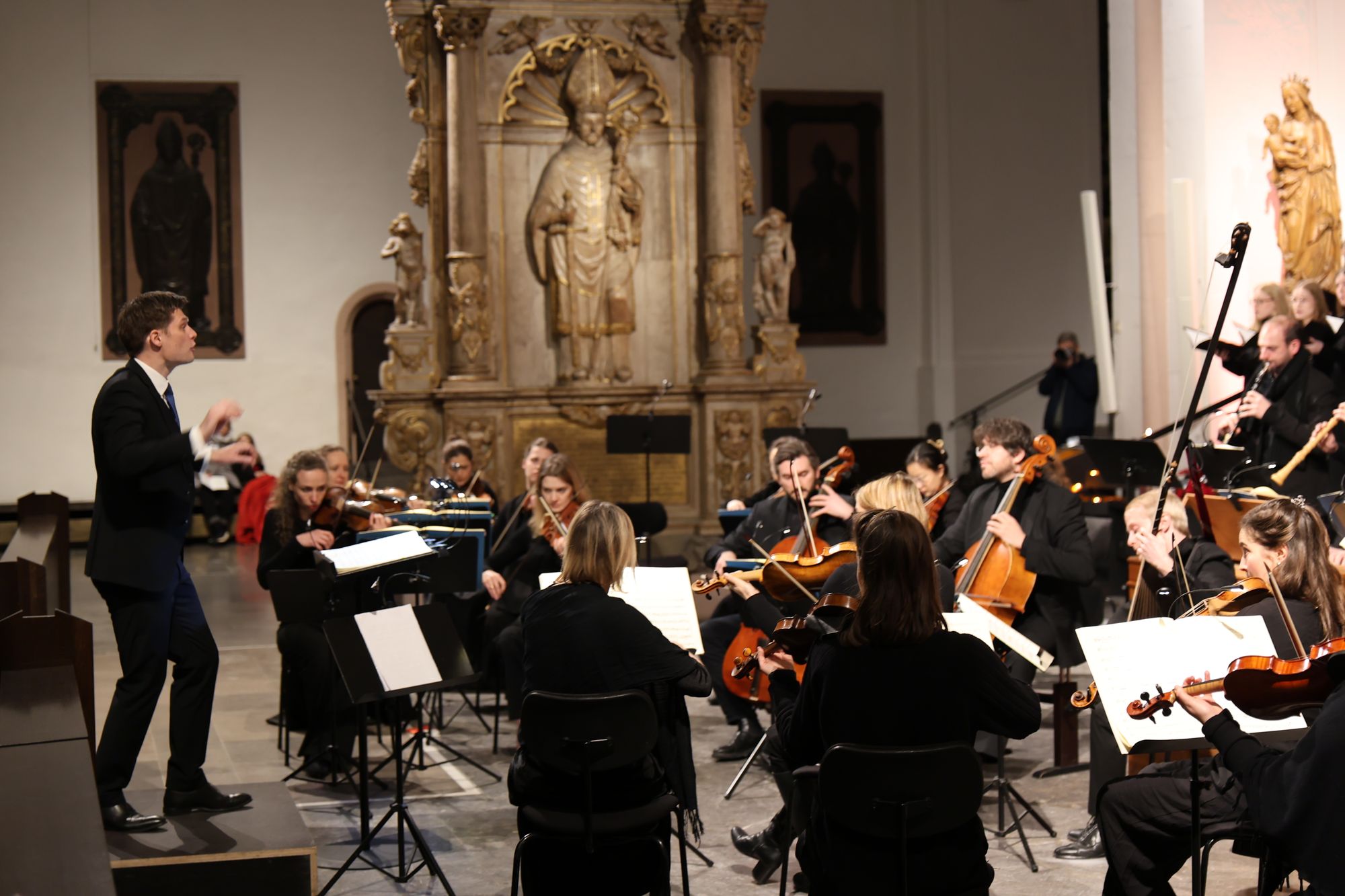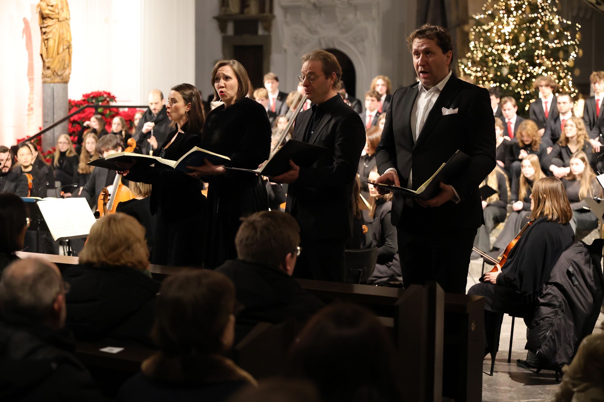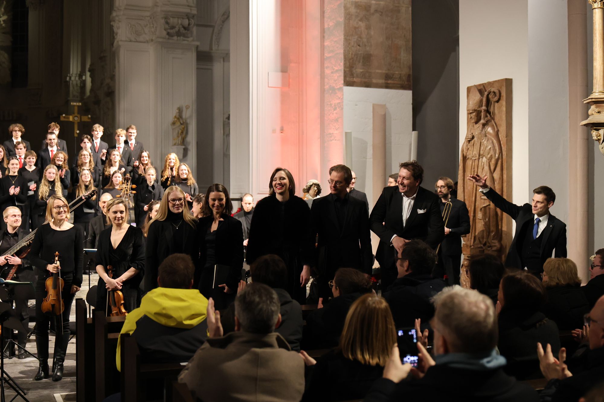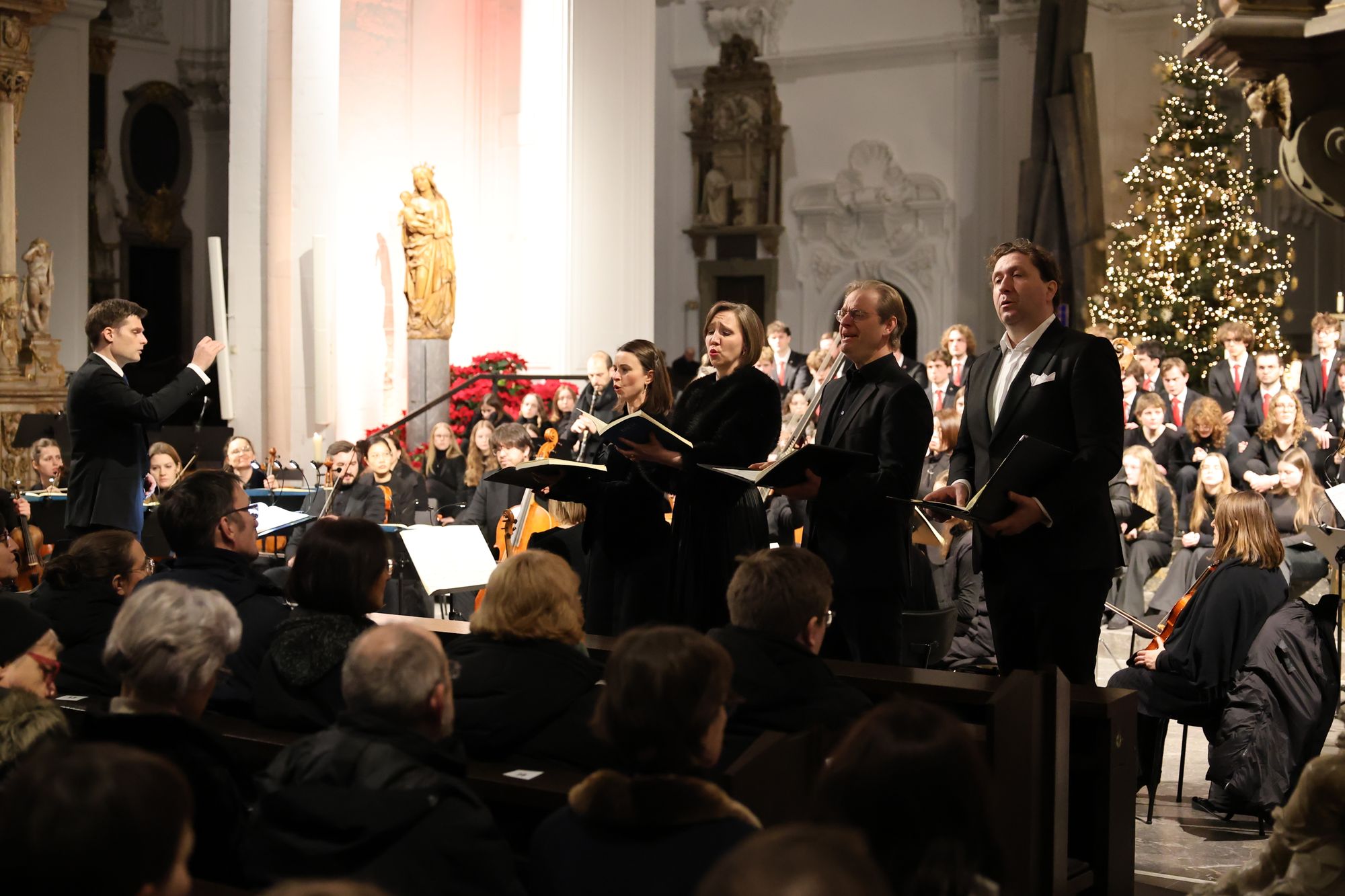 Unter der Leitung von Domkapellmeister Alexander Rüth musizierten die Junge Domkantorei Würzburg, das Barockensemble Concerto München sowie die Solisten Marie-Sophie Pollak (Sopran), Charlotte Wilhelm (Echo-Sopran), Ulrike Malotta (Alt), Tilman Lichdi (Tenor) und Krešimir Stražanac (Bass).
