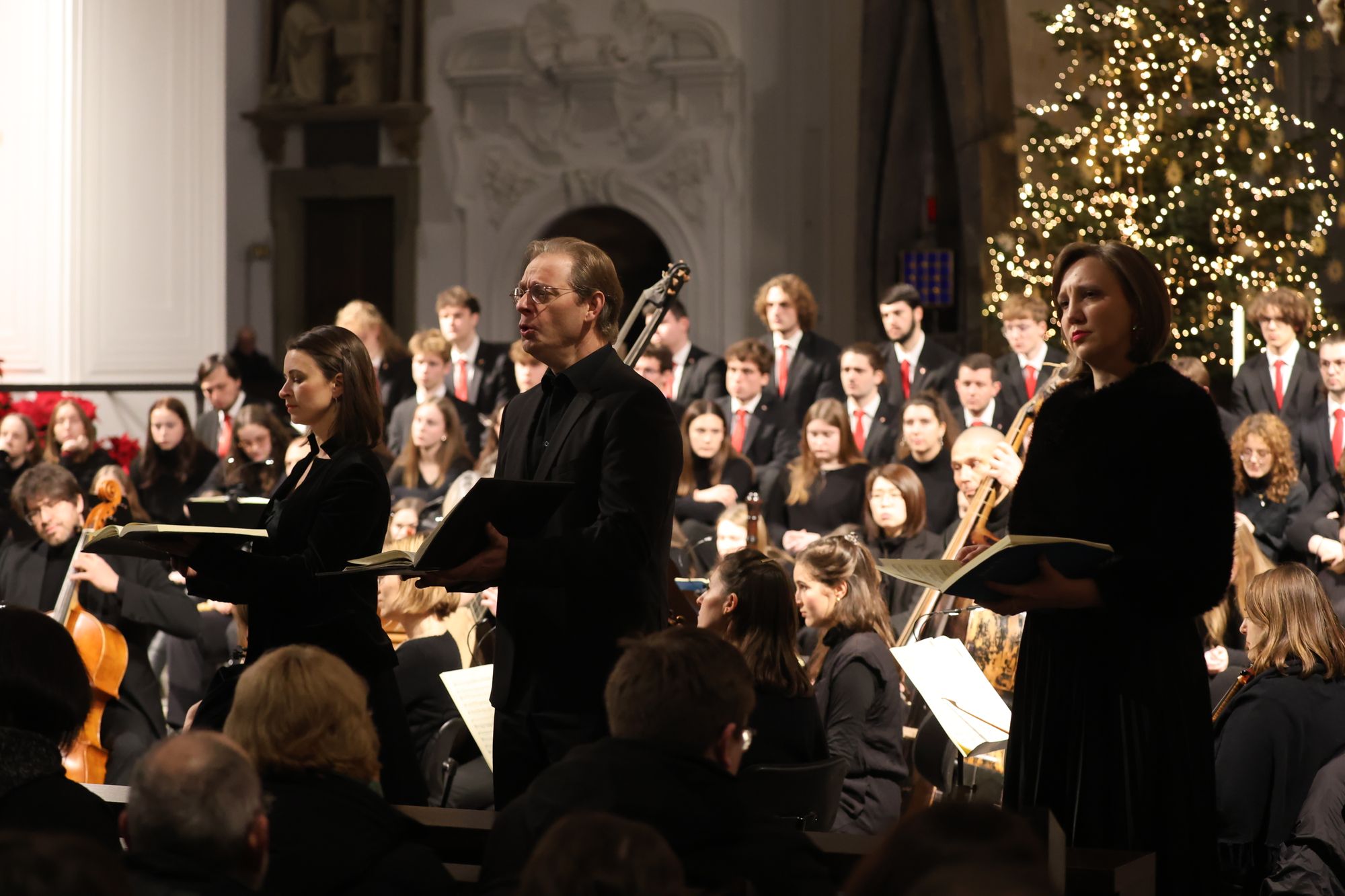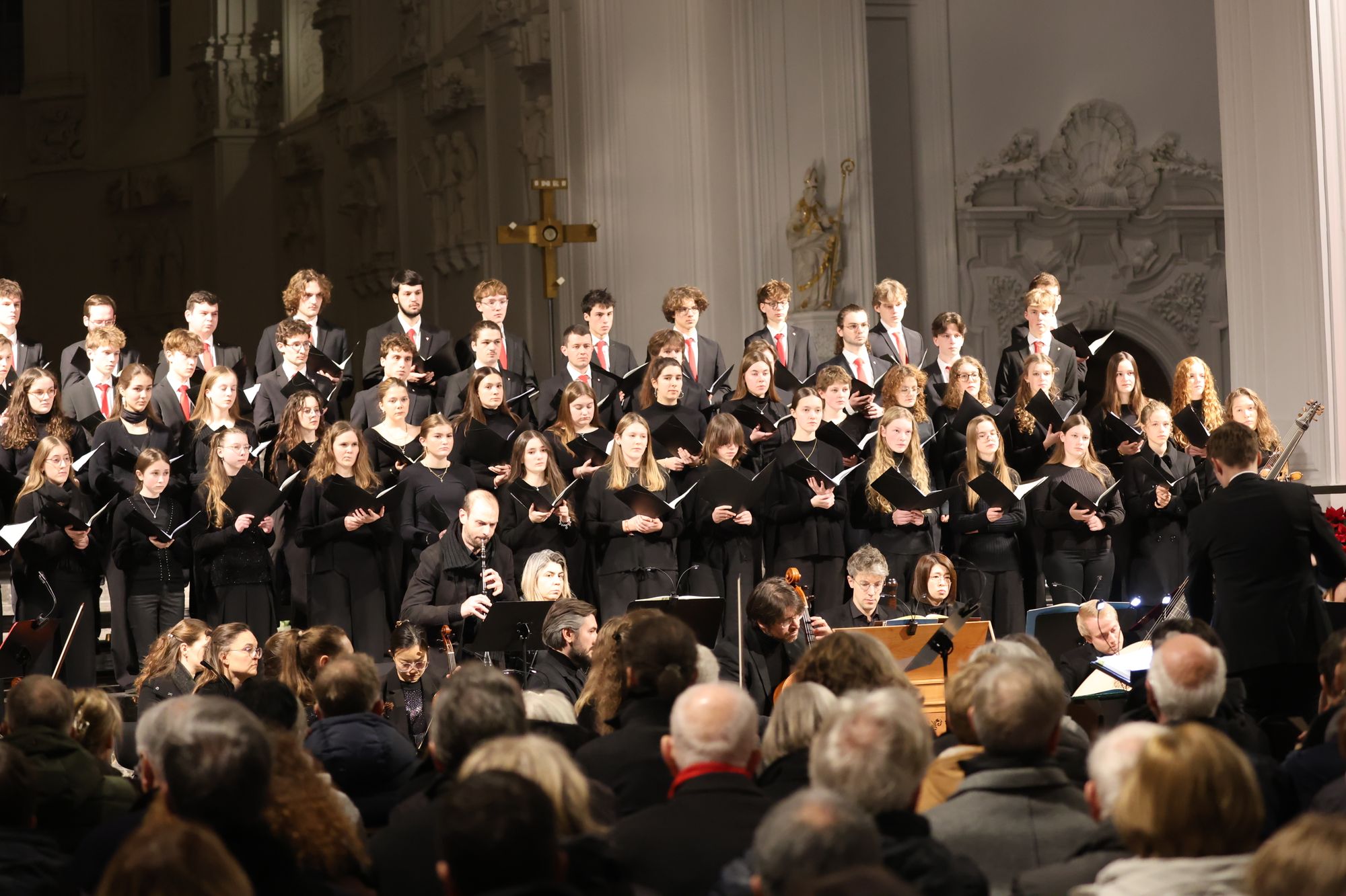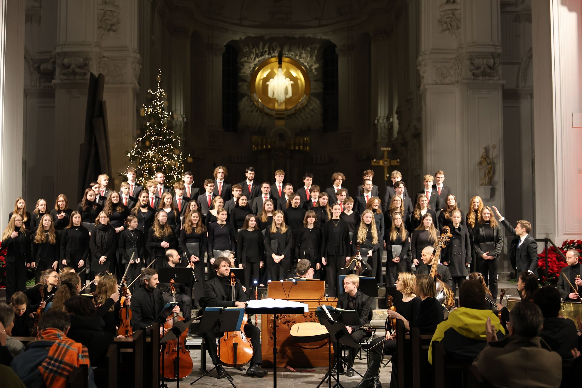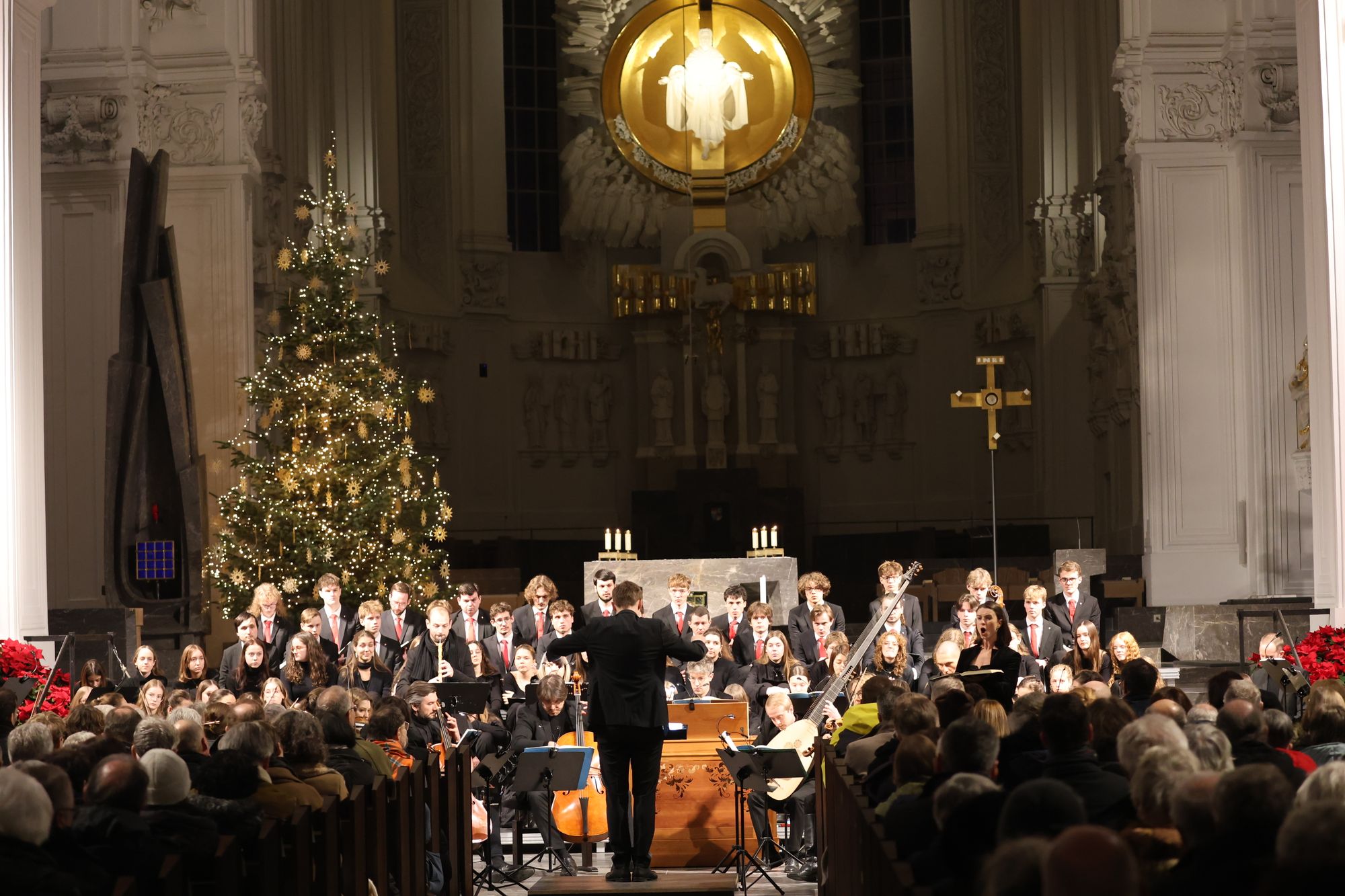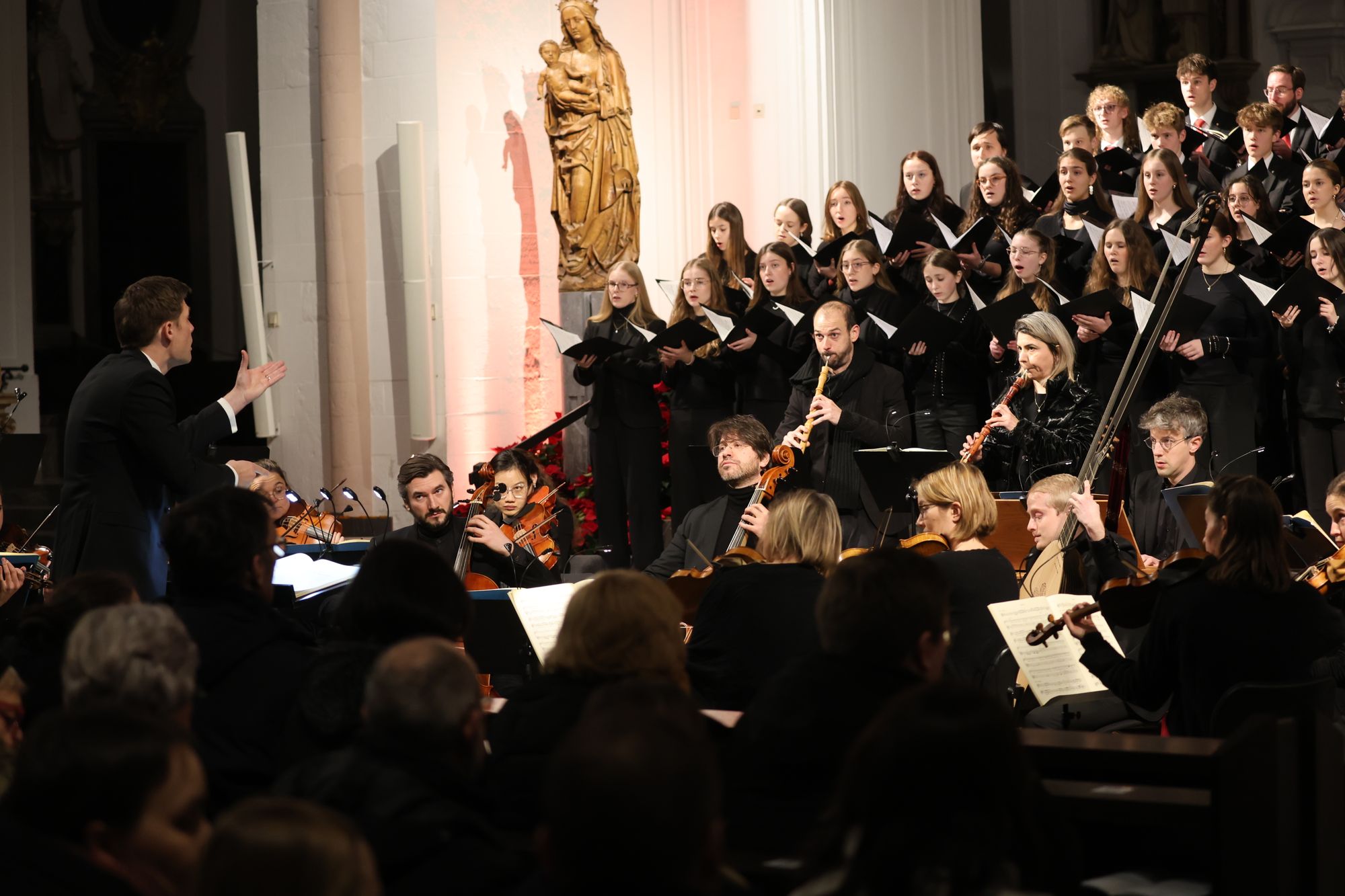 Unter der Leitung von Domkapellmeister Alexander Rüth musizierten die Junge Domkantorei Würzburg, das Barockensemble Concerto München sowie die Solisten Marie-Sophie Pollak (Sopran), Charlotte Wilhelm (Echo-Sopran), Ulrike Malotta (Alt), Tilman Lichdi (Tenor) und Krešimir Stražanac (Bass).