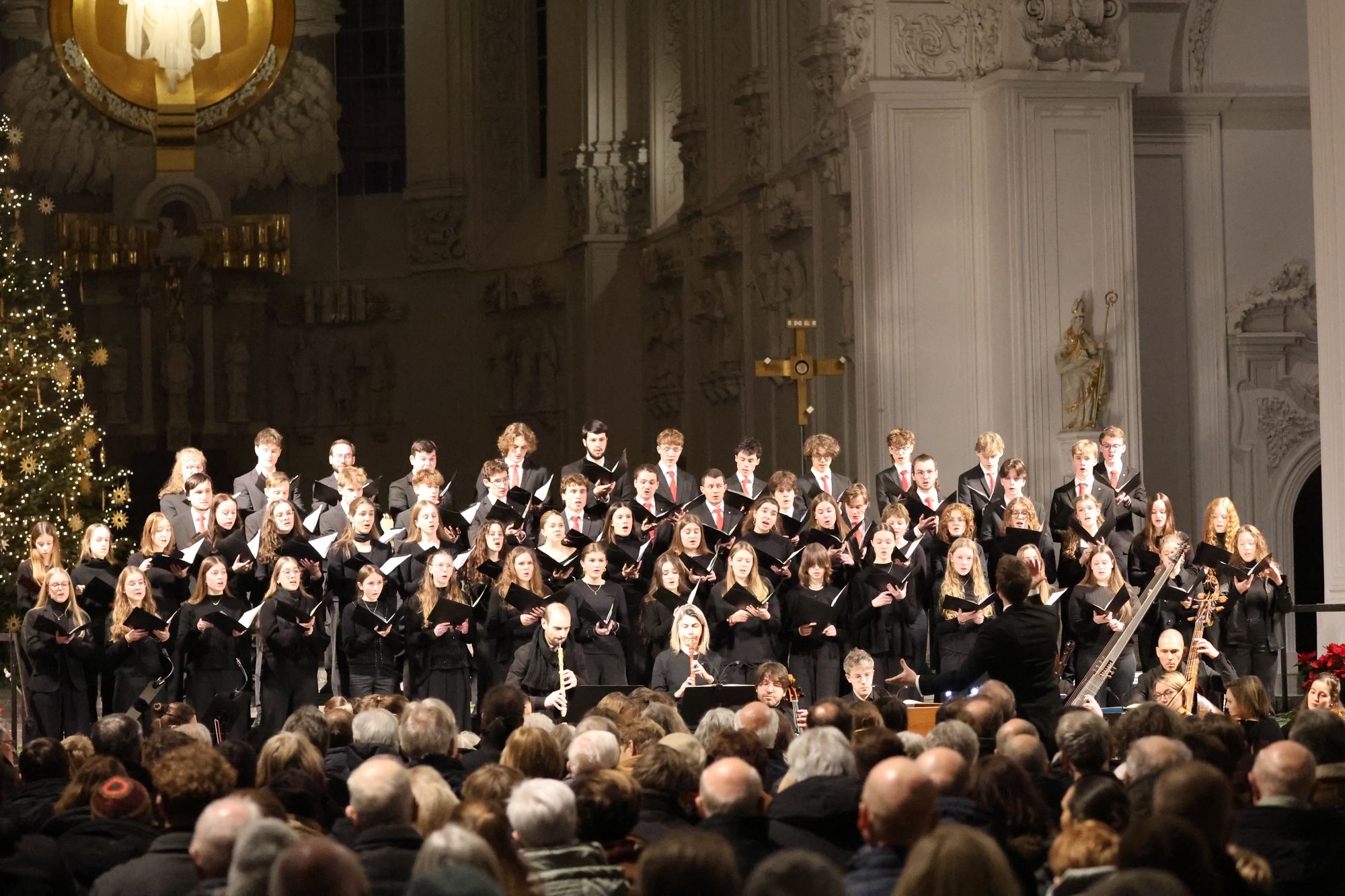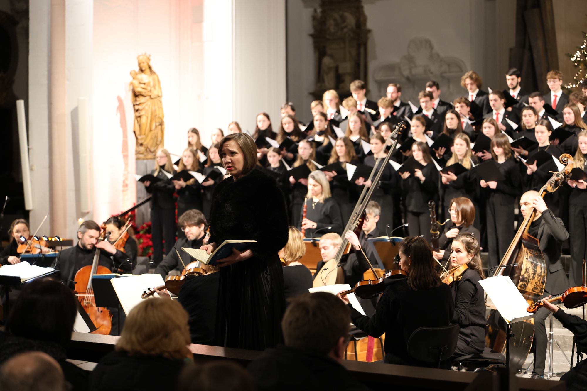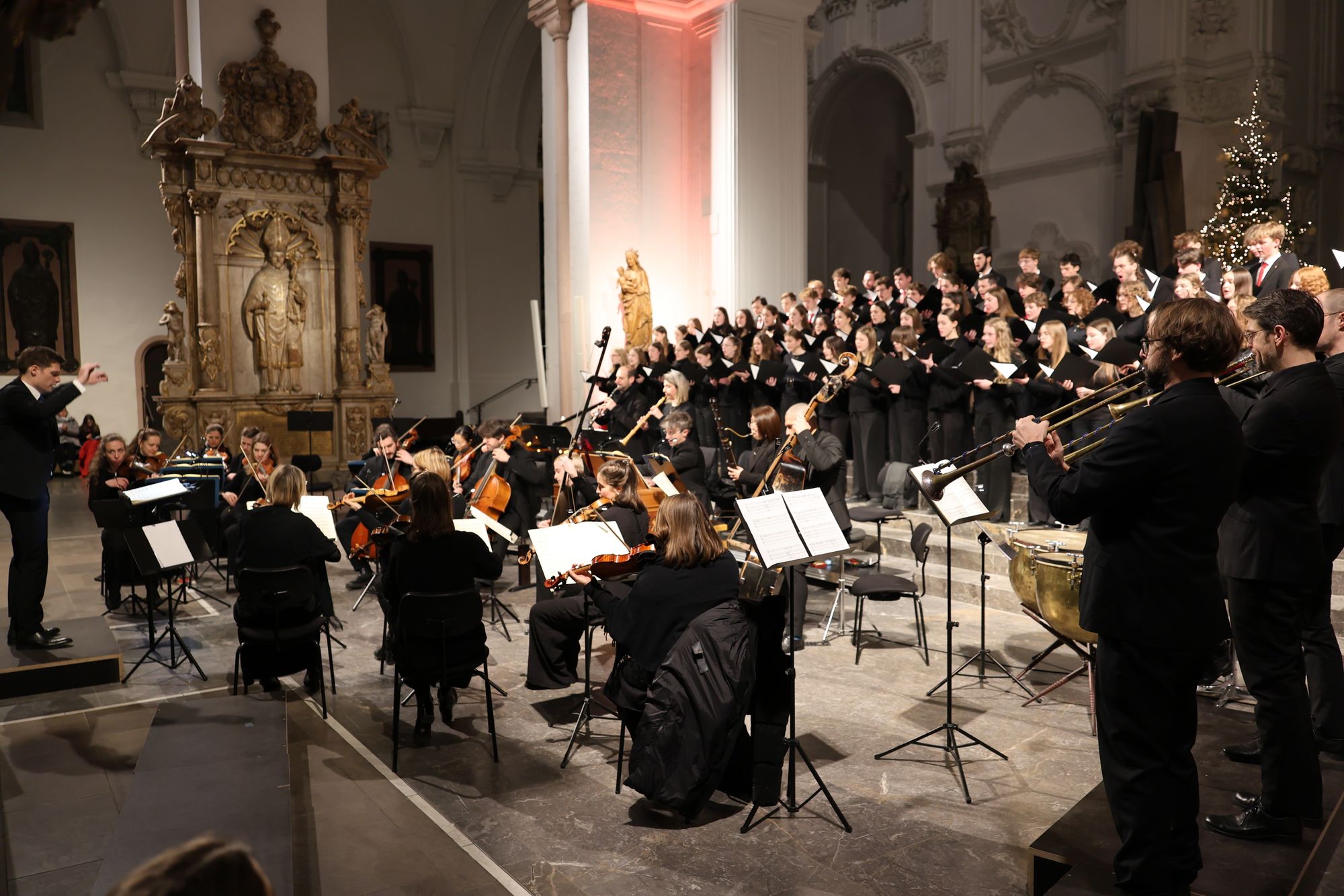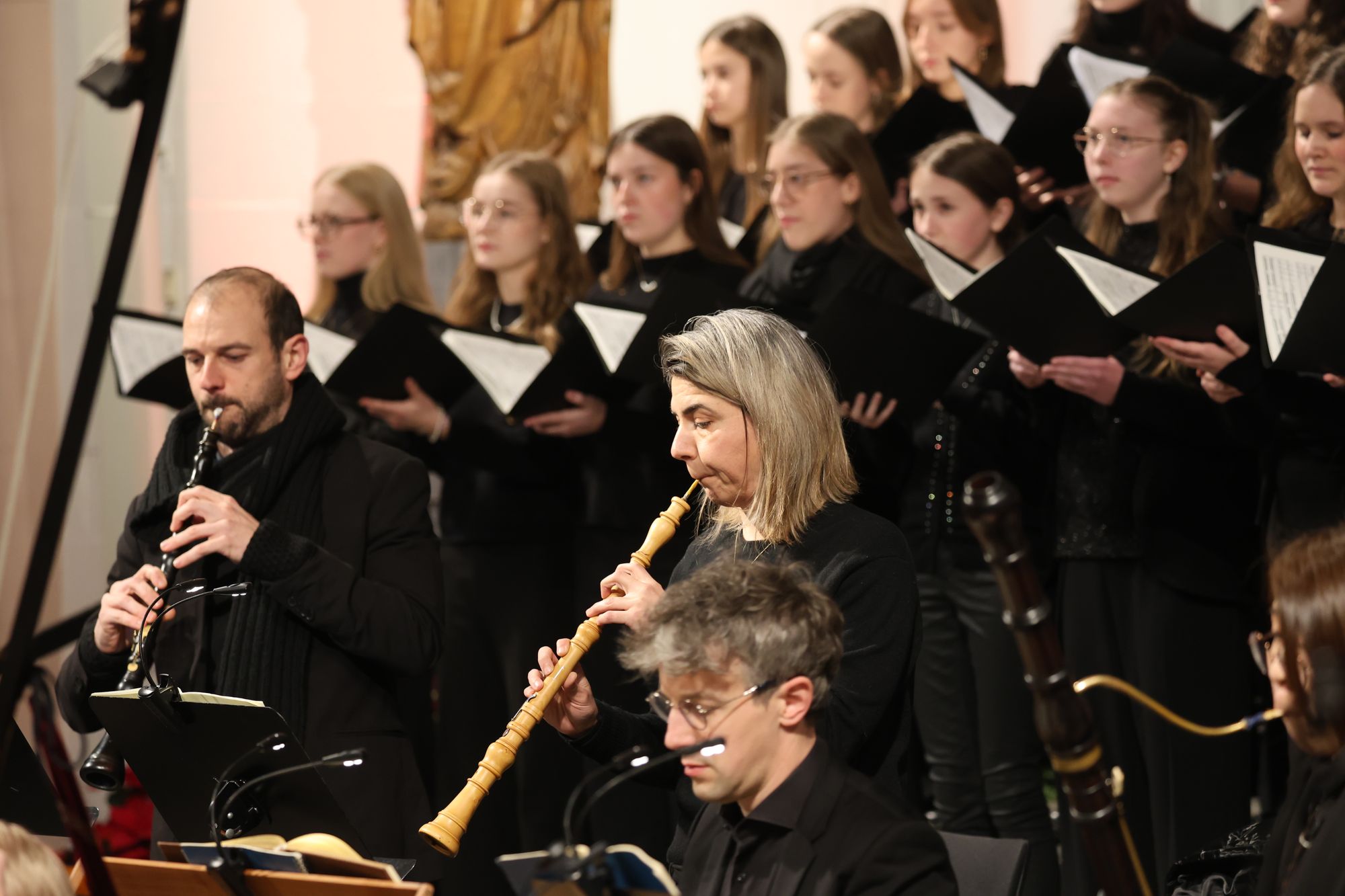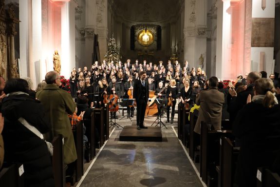 Unter der Leitung von Domkapellmeister Alexander Rüth musizierten die Junge Domkantorei Würzburg, das Barockensemble Concerto München sowie die Solisten Marie-Sophie Pollak (Sopran), Charlotte Wilhelm (Echo-Sopran), Ulrike Malotta (Alt), Tilman Lichdi (Tenor) und Krešimir Stražanac (Bass).