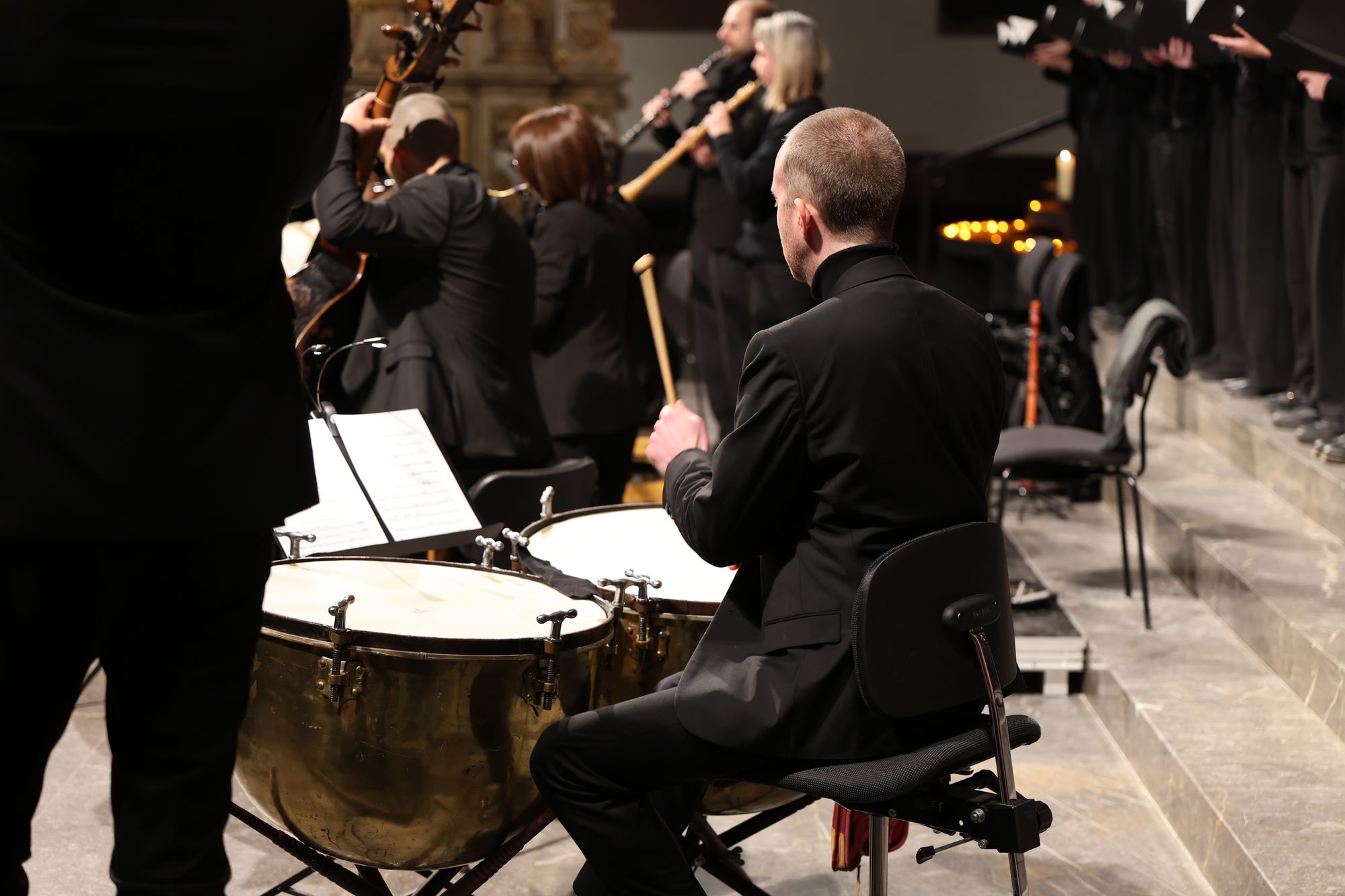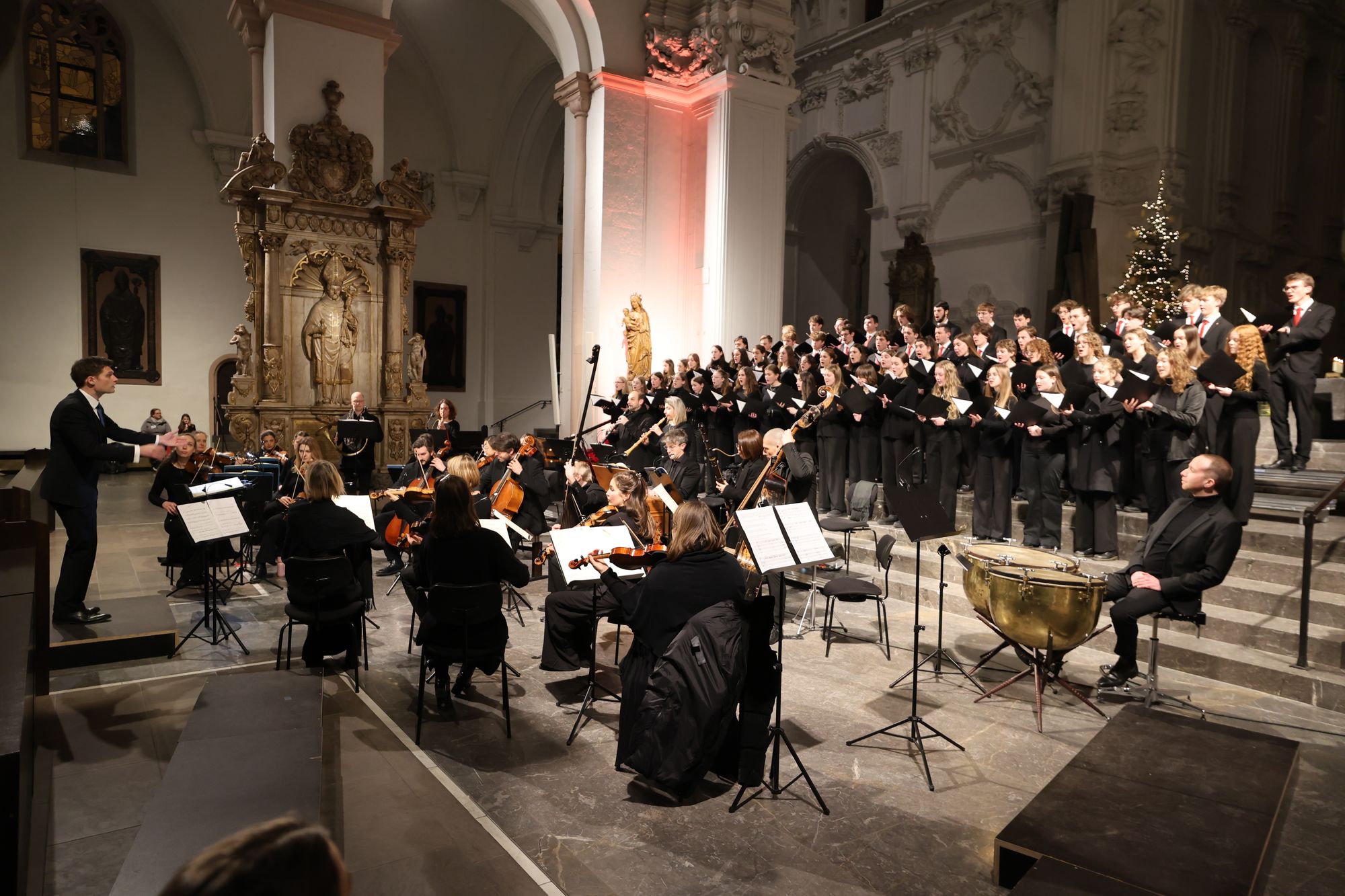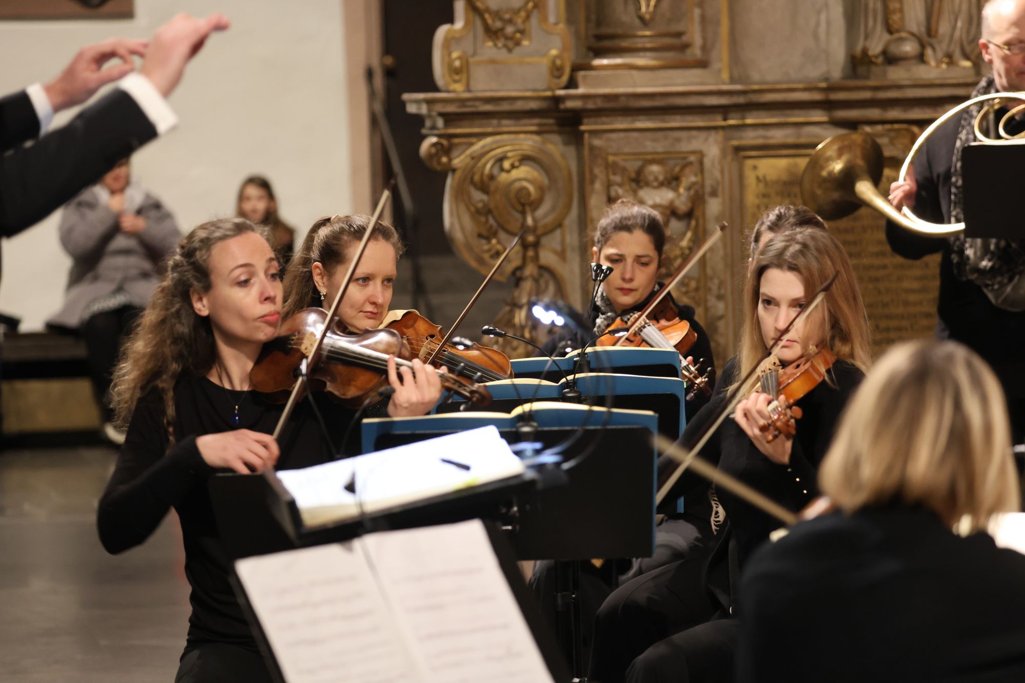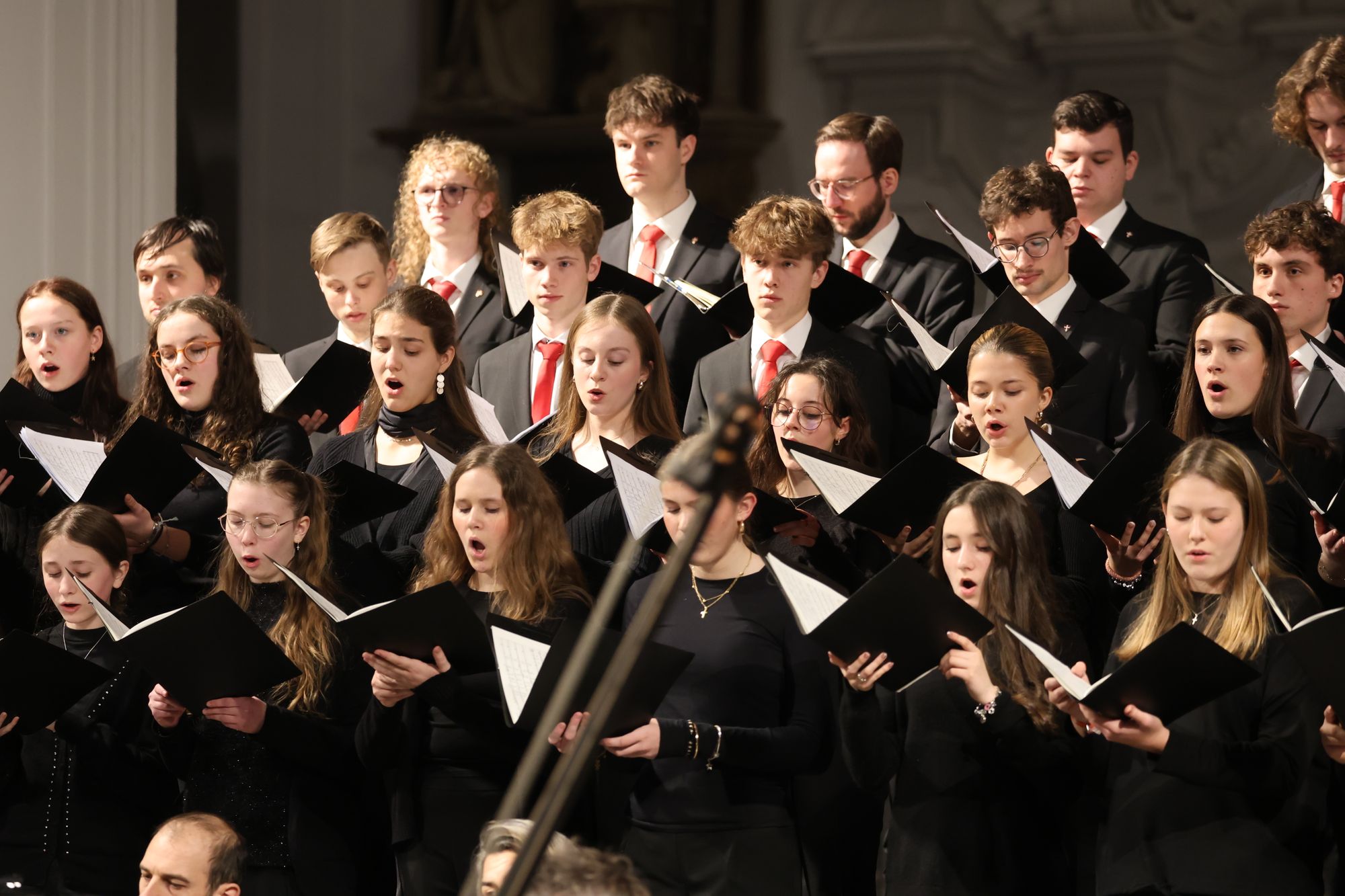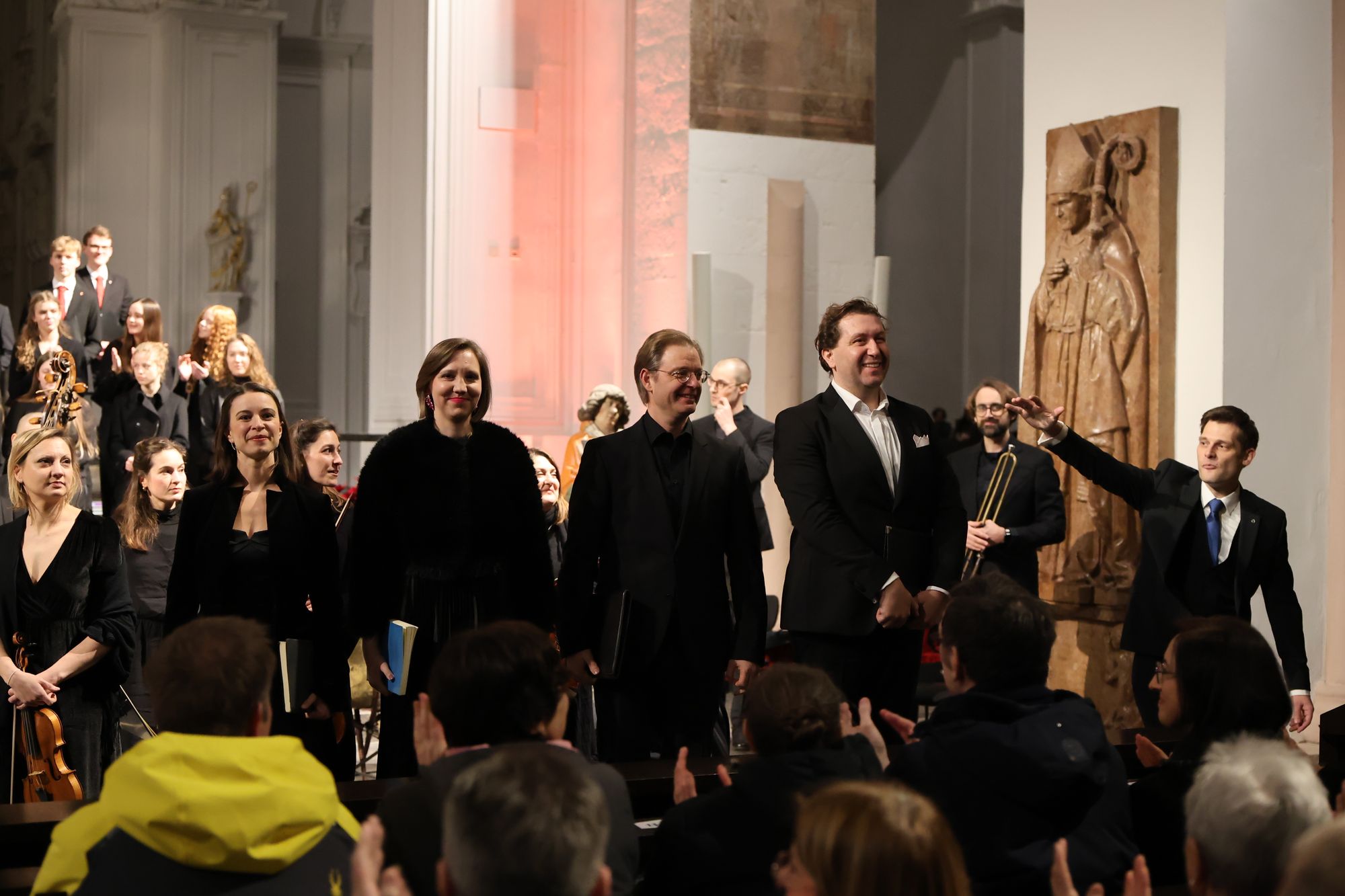 Unter der Leitung von Domkapellmeister Alexander Rüth musizierten die Junge Domkantorei Würzburg, das Barockensemble Concerto München sowie die Solisten Marie-Sophie Pollak (Sopran), Charlotte Wilhelm (Echo-Sopran), Ulrike Malotta (Alt), Tilman Lichdi (Tenor) und Krešimir Stražanac (Bass).