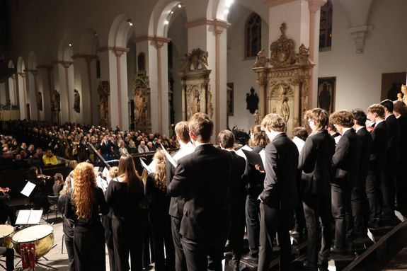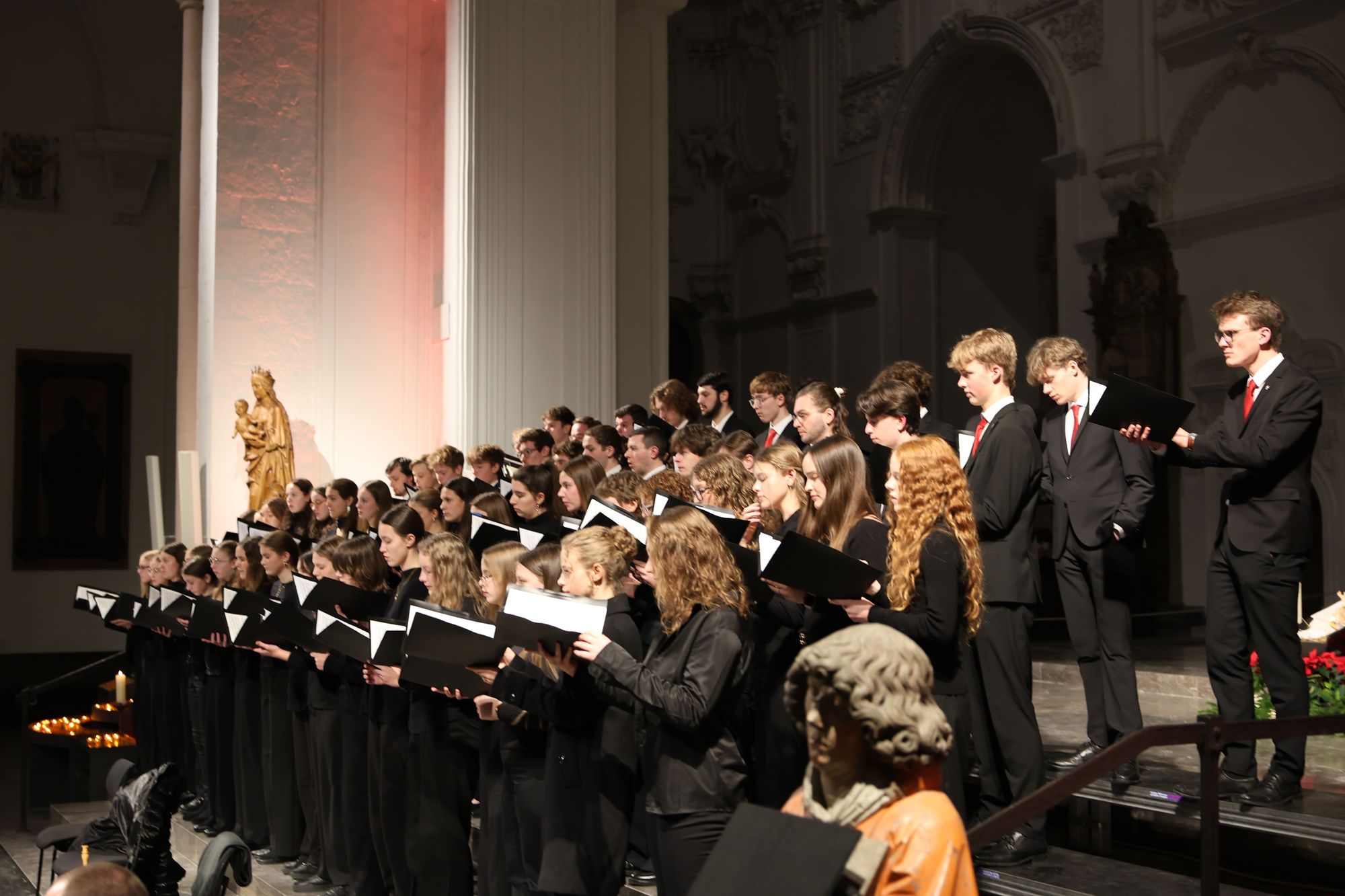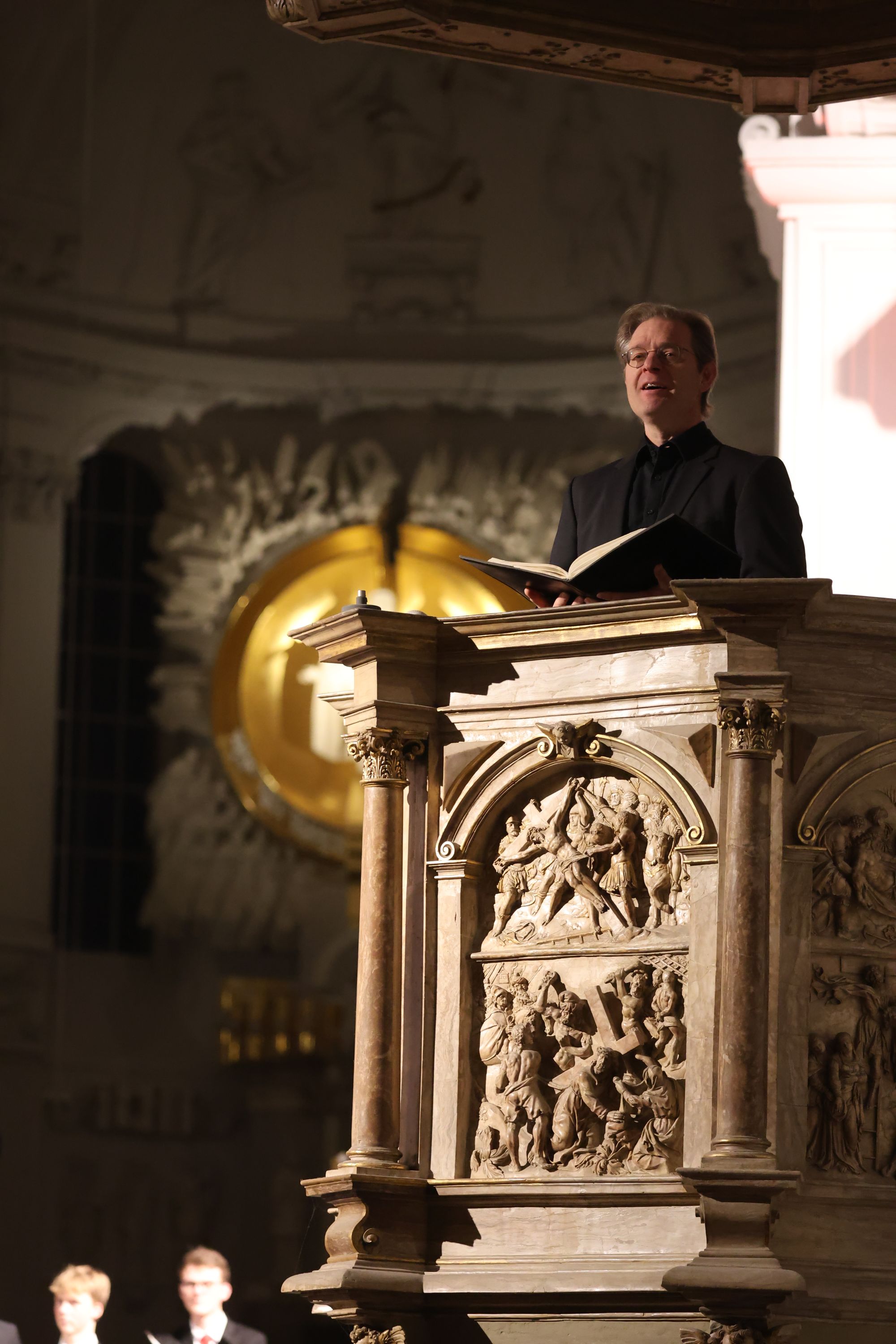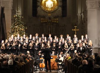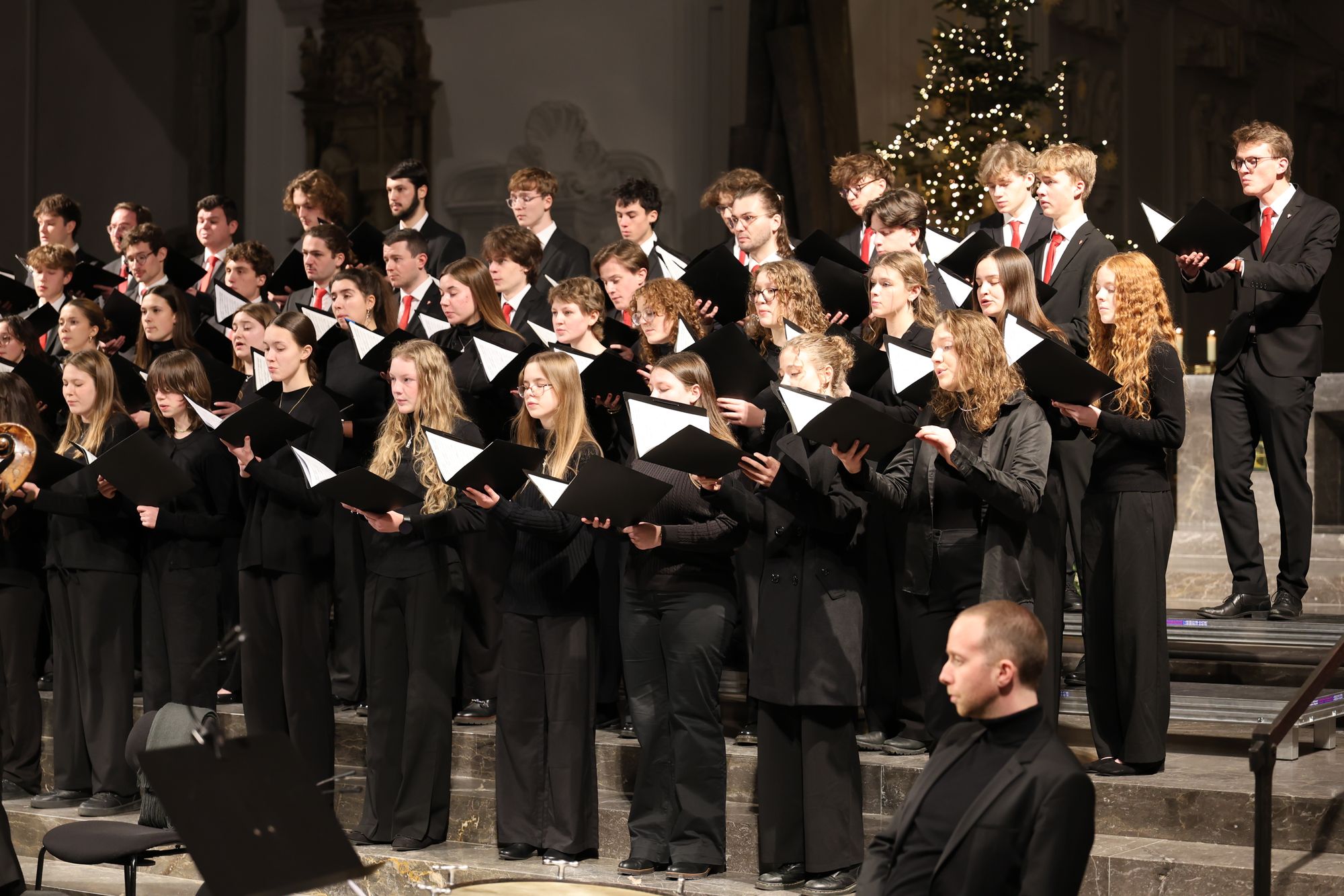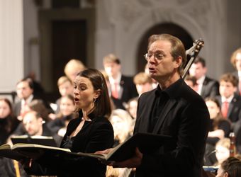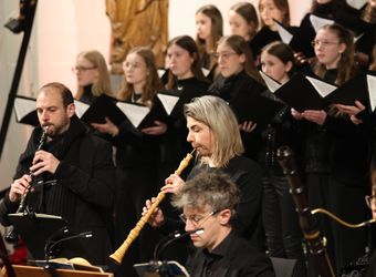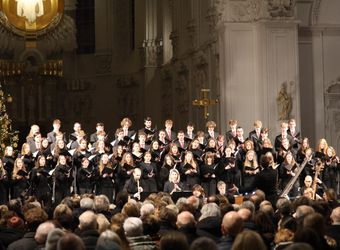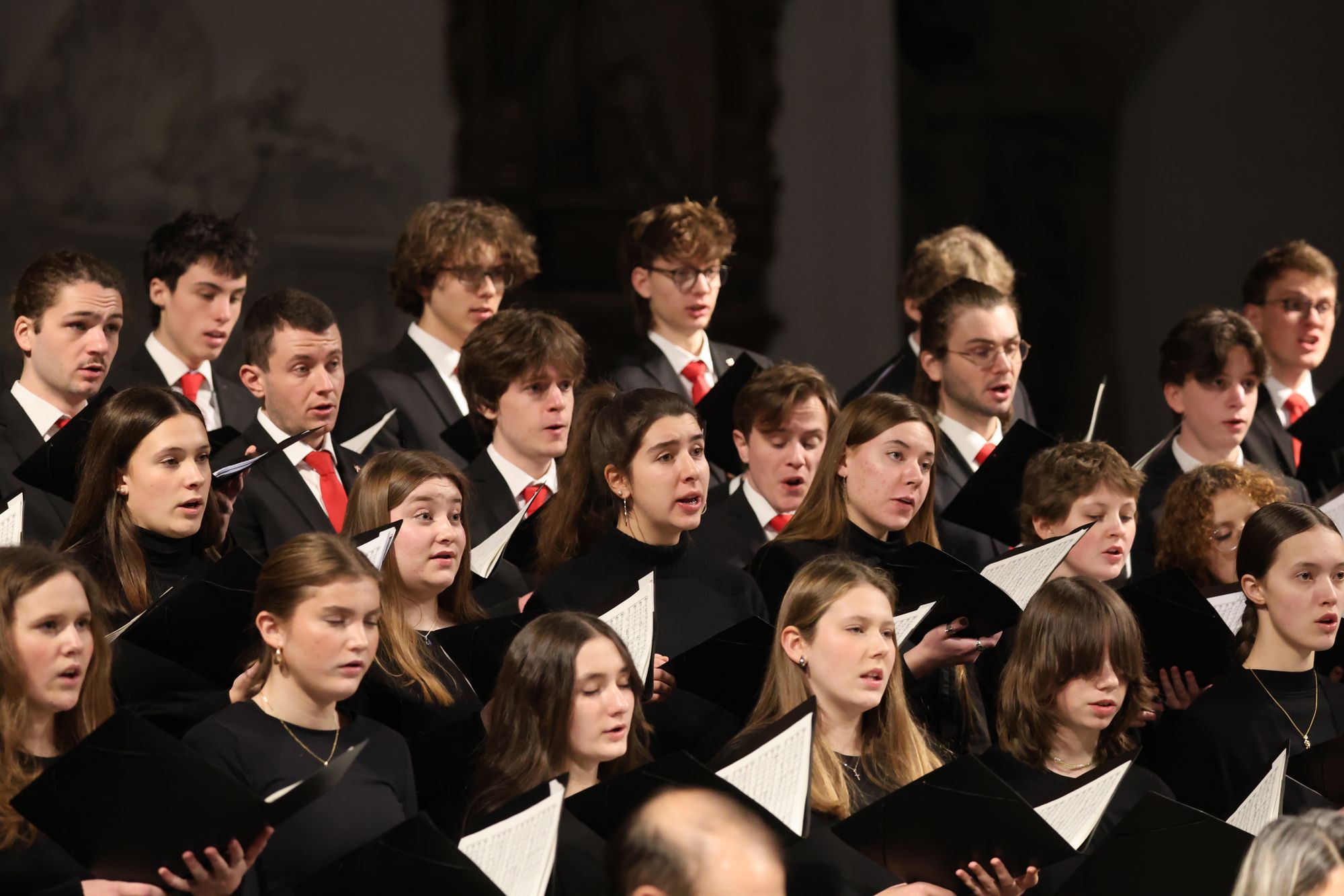 Unter der Leitung von Domkapellmeister Alexander Rüth musizierten die Junge Domkantorei Würzburg, das Barockensemble Concerto München sowie die Solisten Marie-Sophie Pollak (Sopran), Charlotte Wilhelm (Echo-Sopran), Ulrike Malotta (Alt), Tilman Lichdi (Tenor) und Krešimir Stražanac (Bass).
