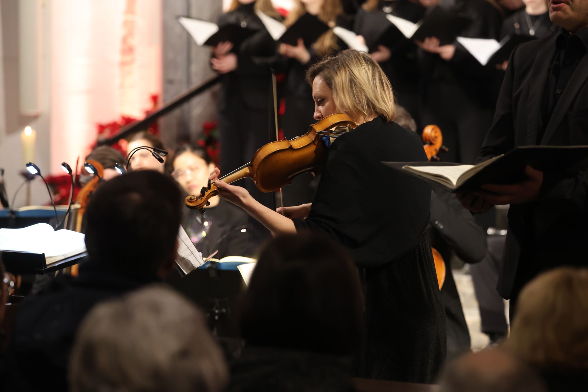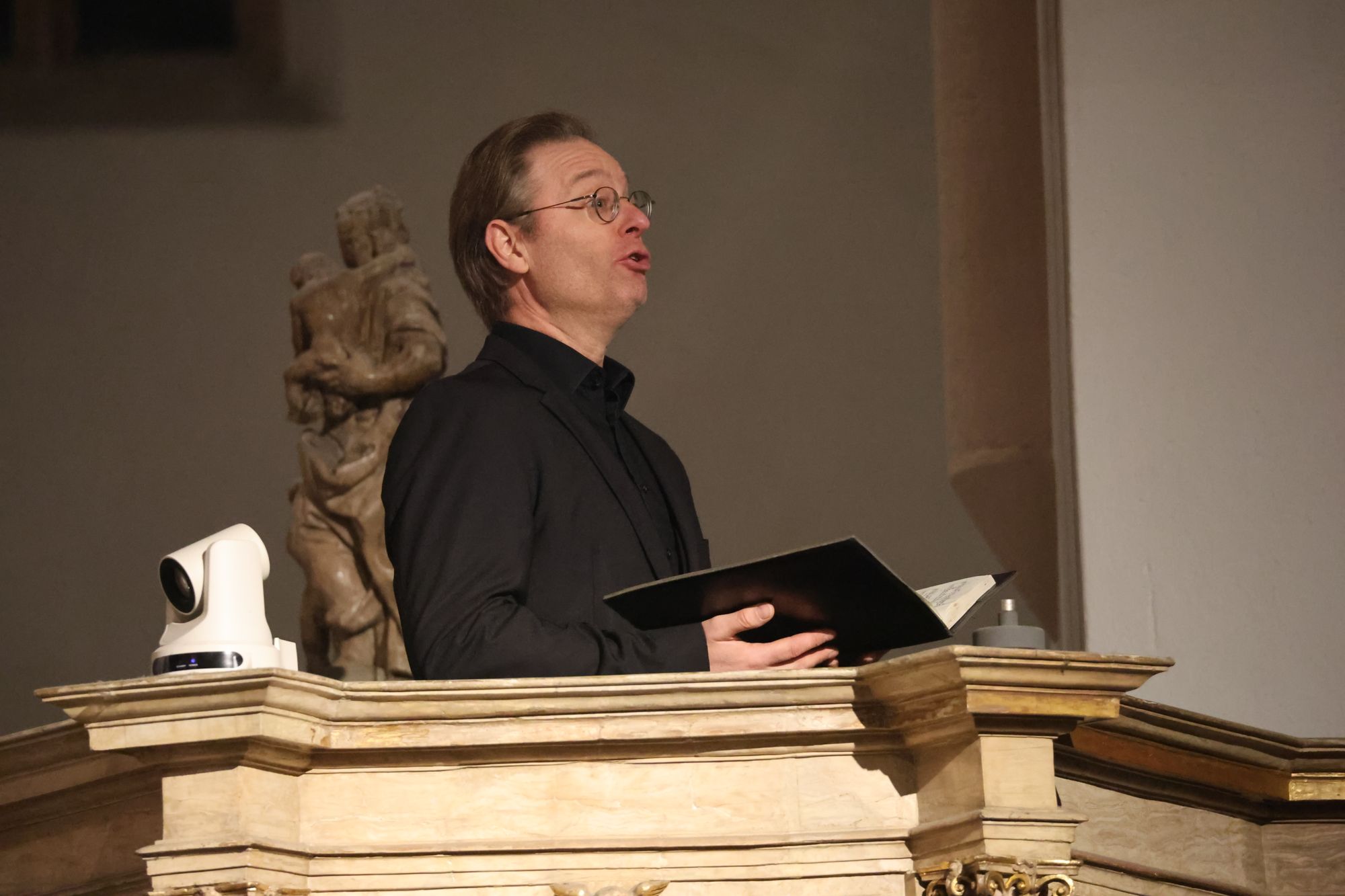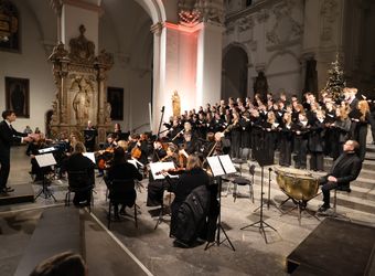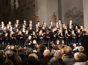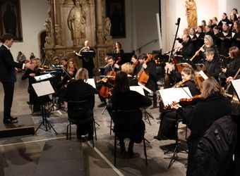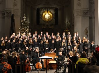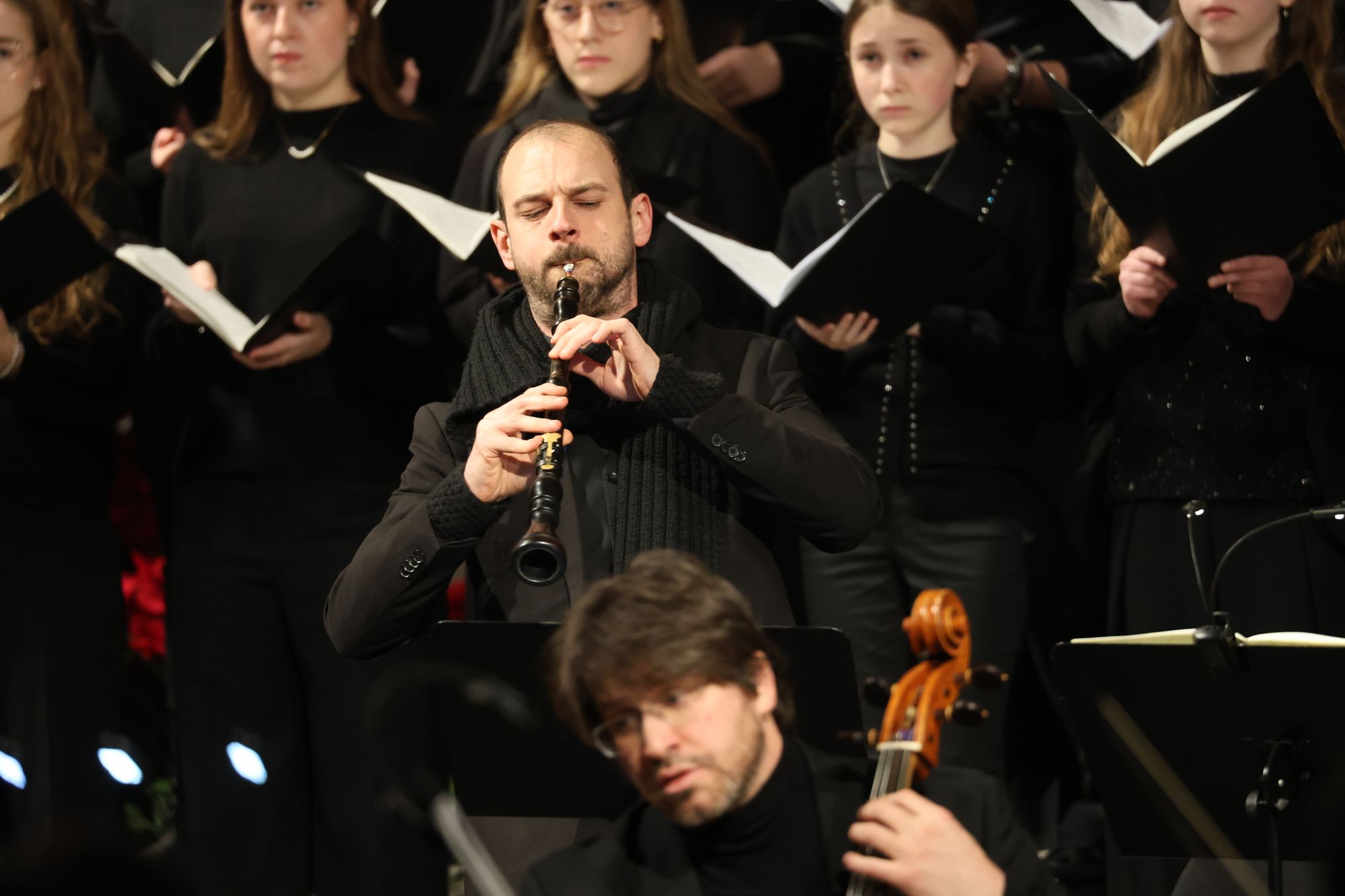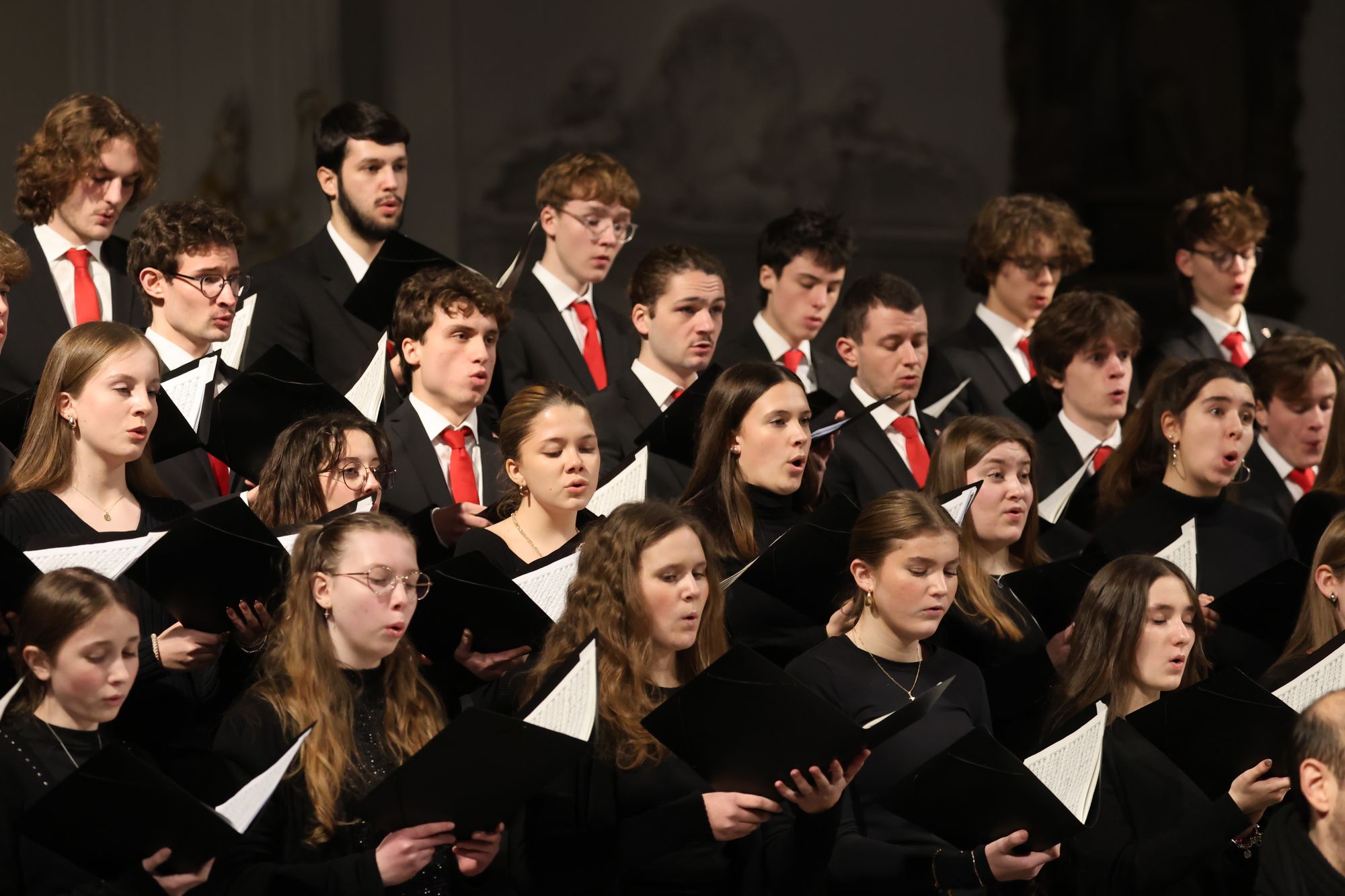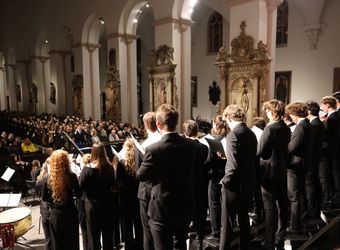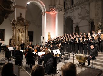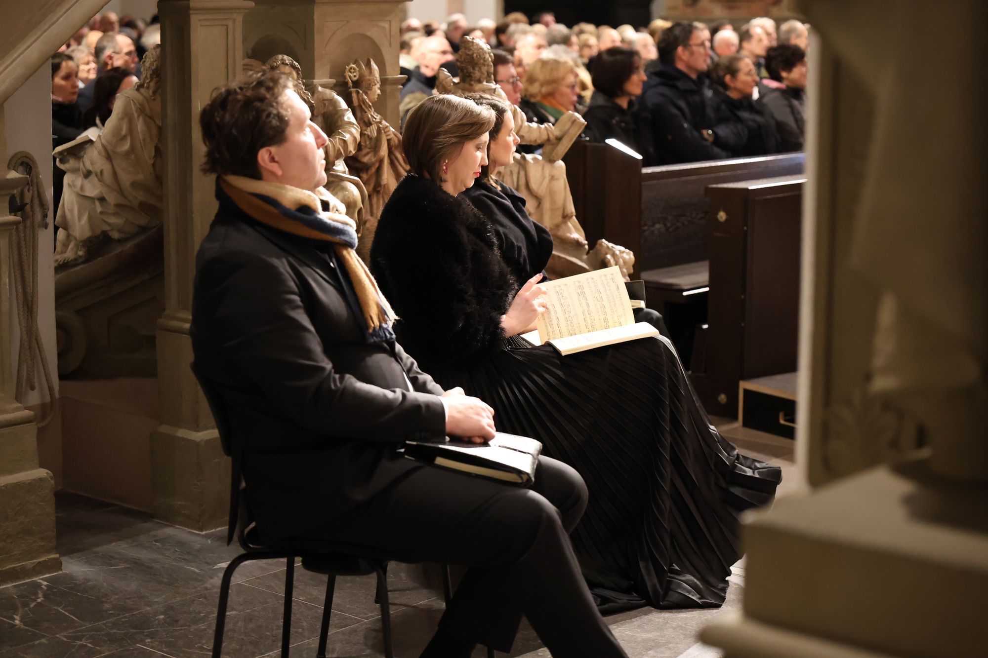 Unter der Leitung von Domkapellmeister Alexander Rüth musizierten die Junge Domkantorei Würzburg, das Barockensemble Concerto München sowie die Solisten Marie-Sophie Pollak (Sopran), Charlotte Wilhelm (Echo-Sopran), Ulrike Malotta (Alt), Tilman Lichdi (Tenor) und Krešimir Stražanac (Bass).