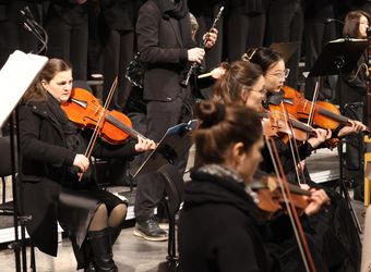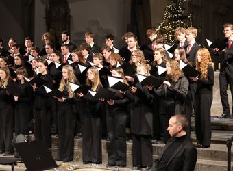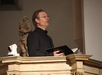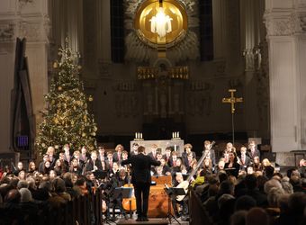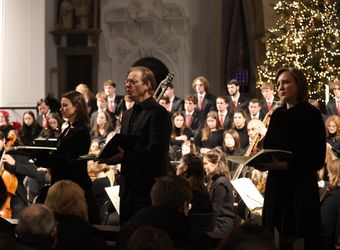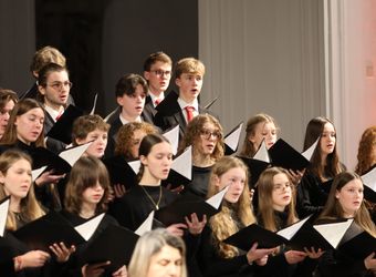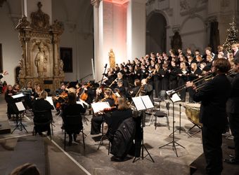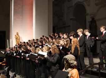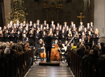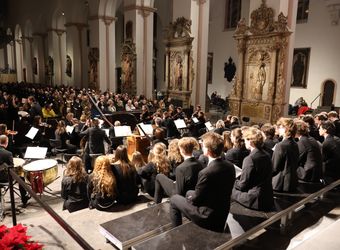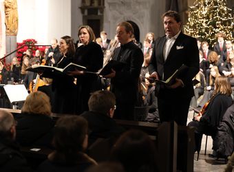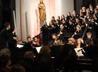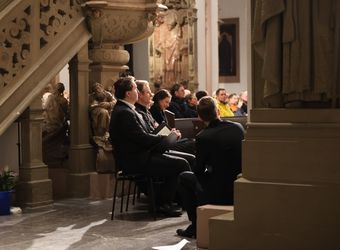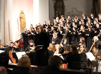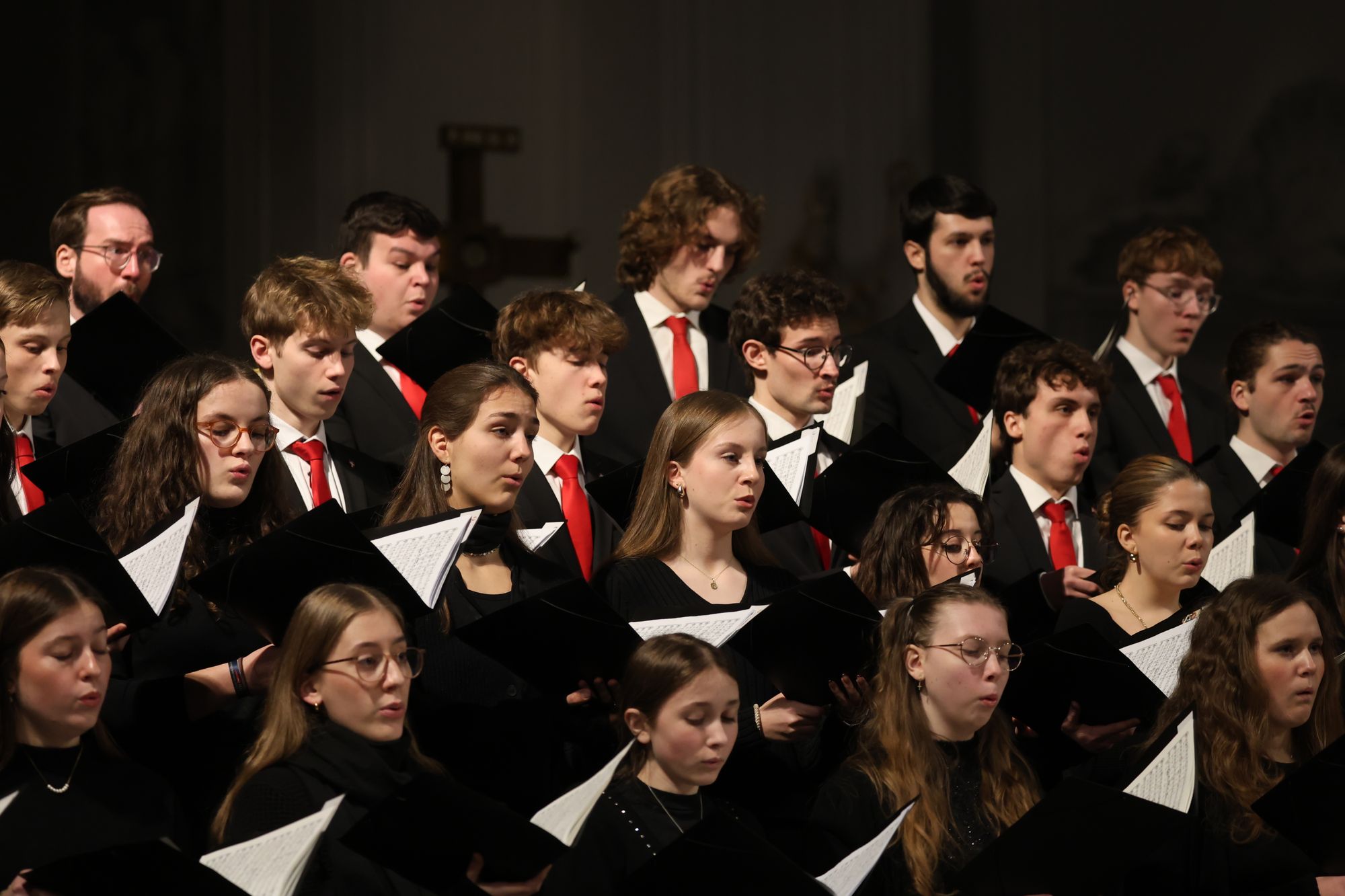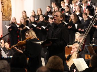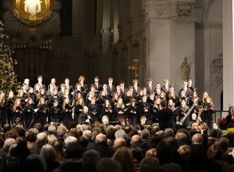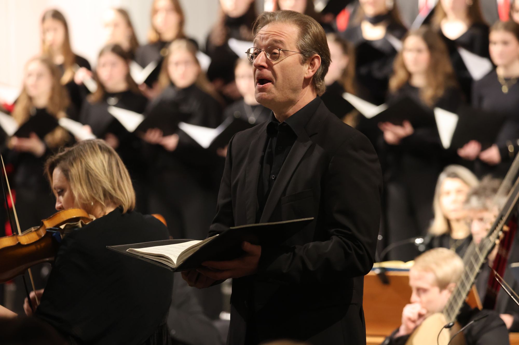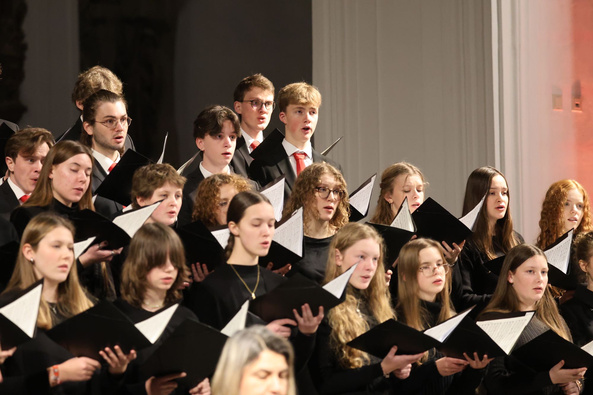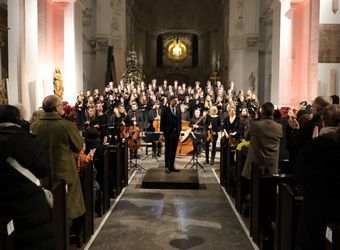 Unter der Leitung von Domkapellmeister Alexander Rüth musizierten die Junge Domkantorei Würzburg, das Barockensemble Concerto München sowie die Solisten Marie-Sophie Pollak (Sopran), Charlotte Wilhelm (Echo-Sopran), Ulrike Malotta (Alt), Tilman Lichdi (Tenor) und Krešimir Stražanac (Bass).